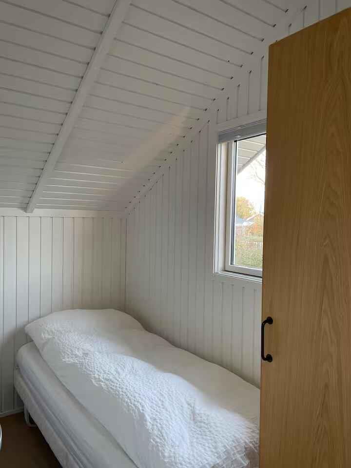 I vores sommerhus, har vi forsøgt at skabe nogle rolige rammer som ligger op til afslapning og samvær. Smuk havudsigt kan nydes fra vores overdækkede terrasse eller fra stuen inden døre. Specielt om sommeren kan man være vidne til de smukkeste solnedgange. Rolig sandstrand med badebro, i sommerhalvåret, ligger kun 2 minutter væk på gåben. Huset har 2 værelser med hver 2 enkeltmandssenge.