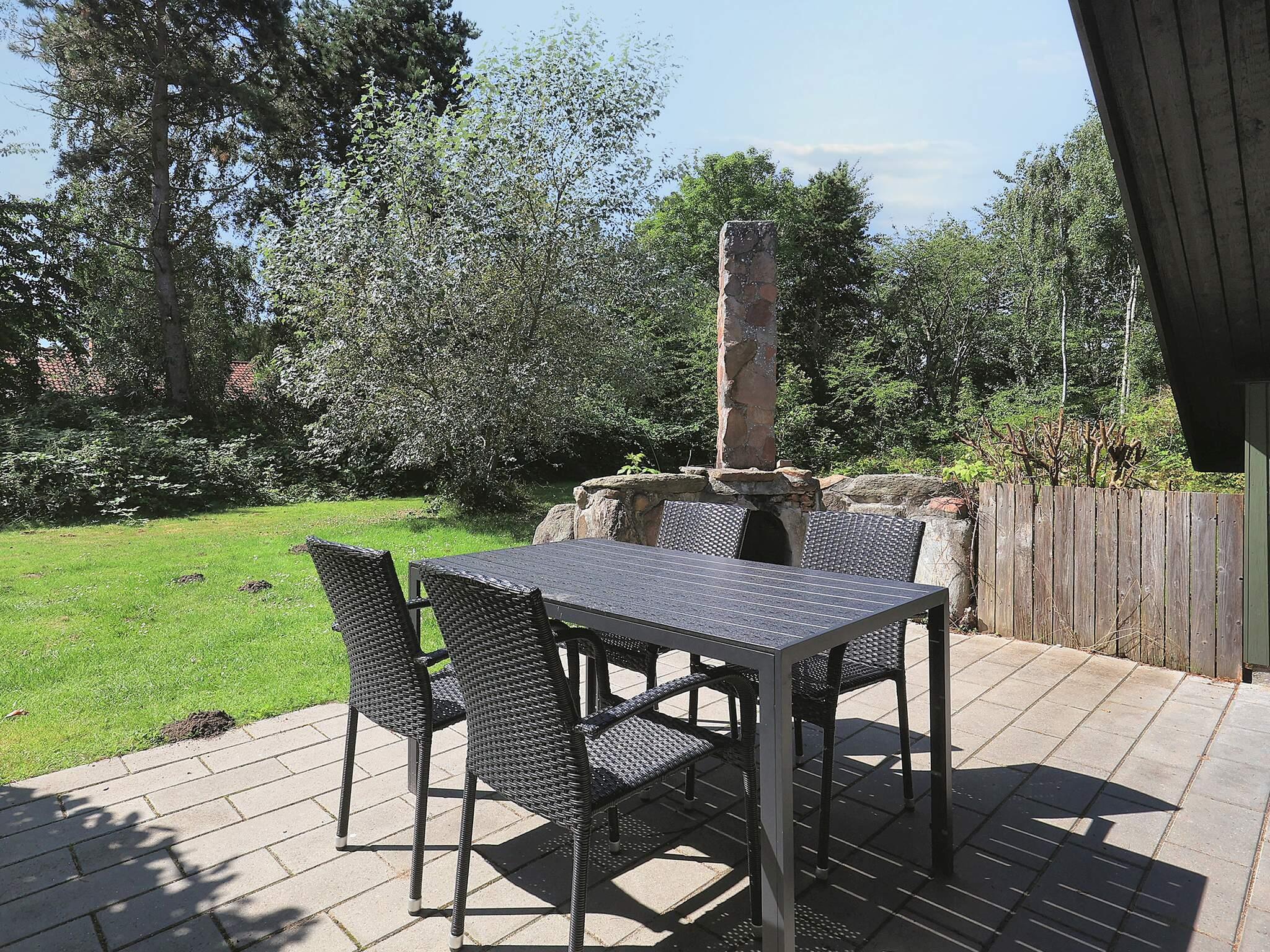 Ude er hus og carport istandsat og malet. Pæn terrasse, som er delvist overdækket mod syd med hyggelig muret pejs, nyere havemøbler, parasol og kuglegrill/grillstarter. I haven er der fældet store træer og anlagt ny græsplæne. Det giver luft og lys til hus og terrasse. Ferieboligen er velegnet til brug hele året.