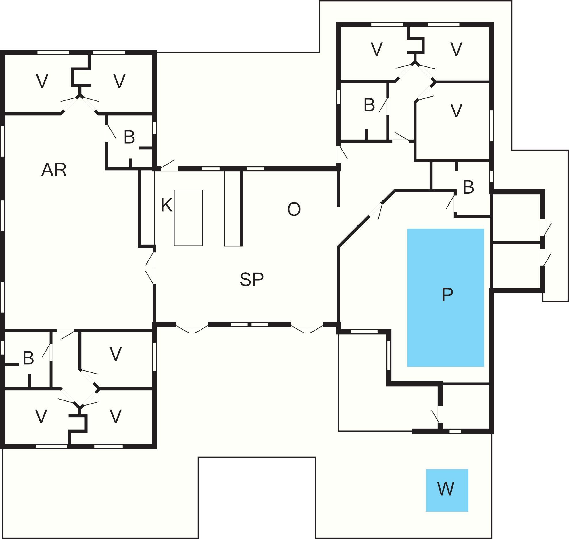 8 Soveværelser: (2S)+(2S)+(2S)+(2S)+(1DS)+(1DS)+(1DS)+(1DS)