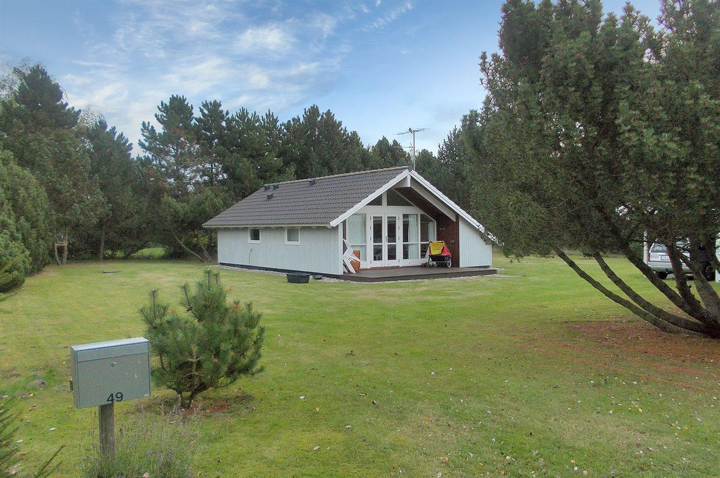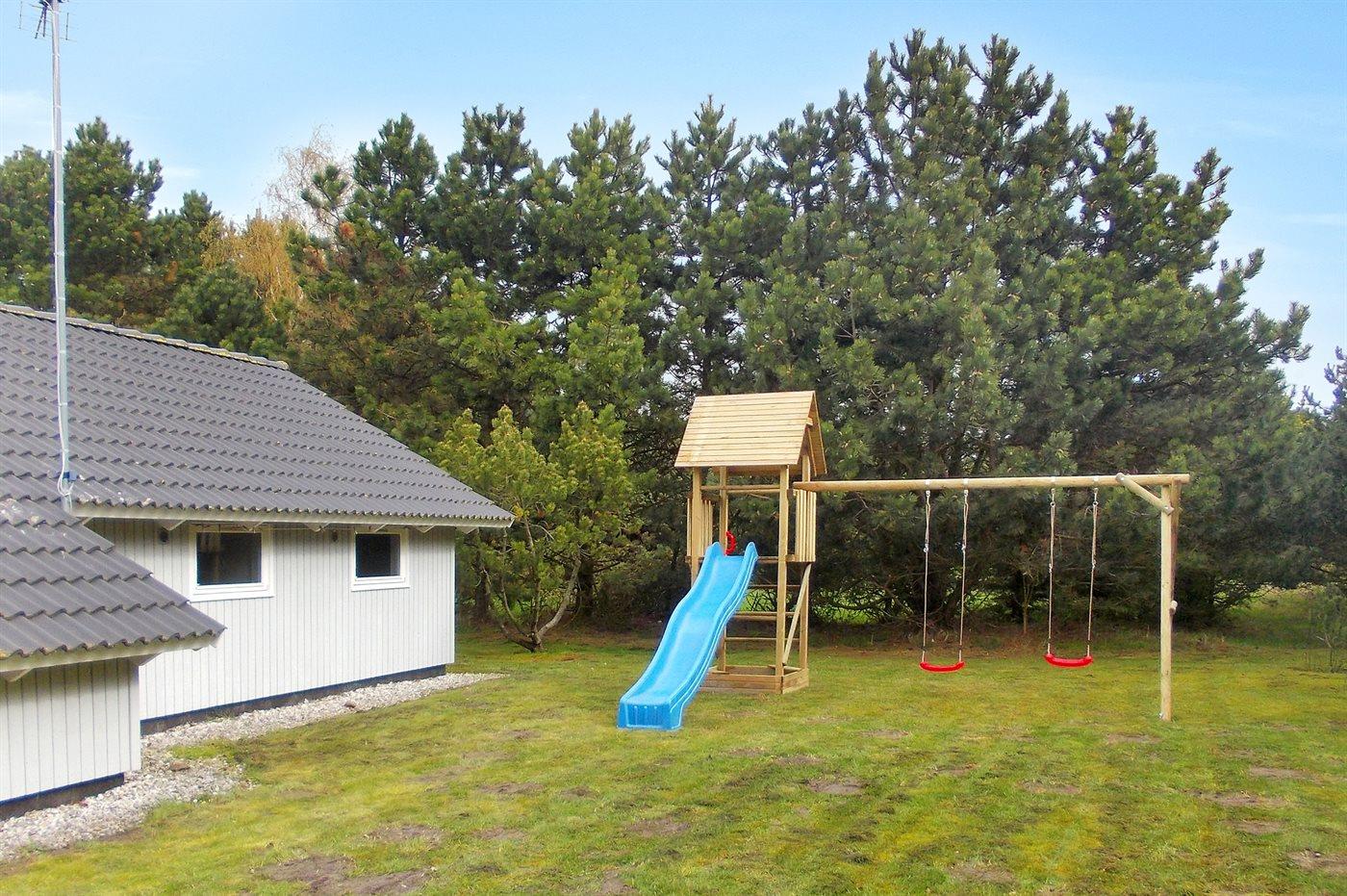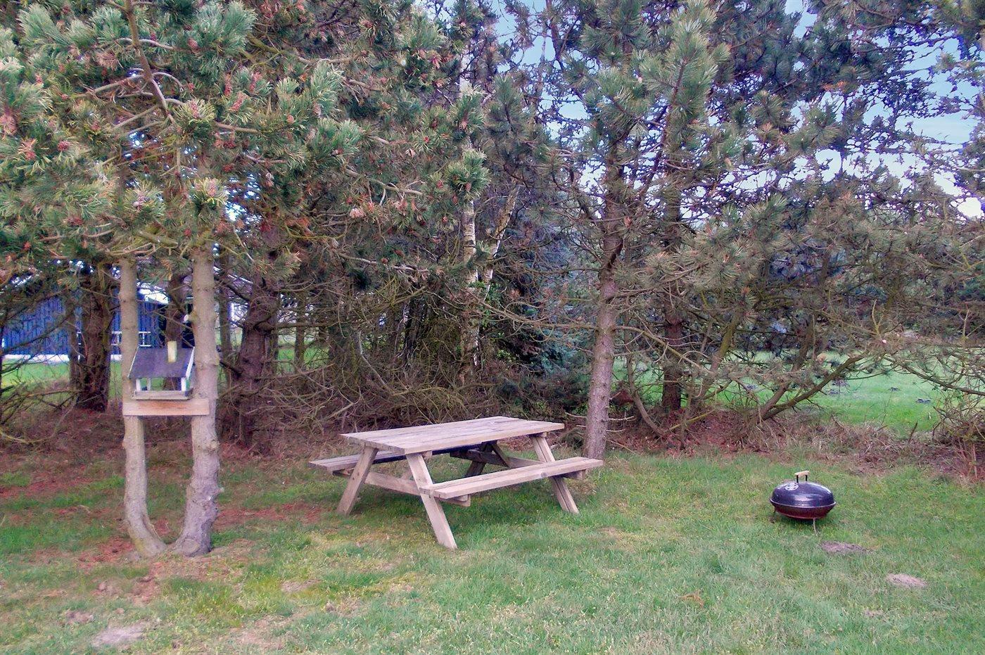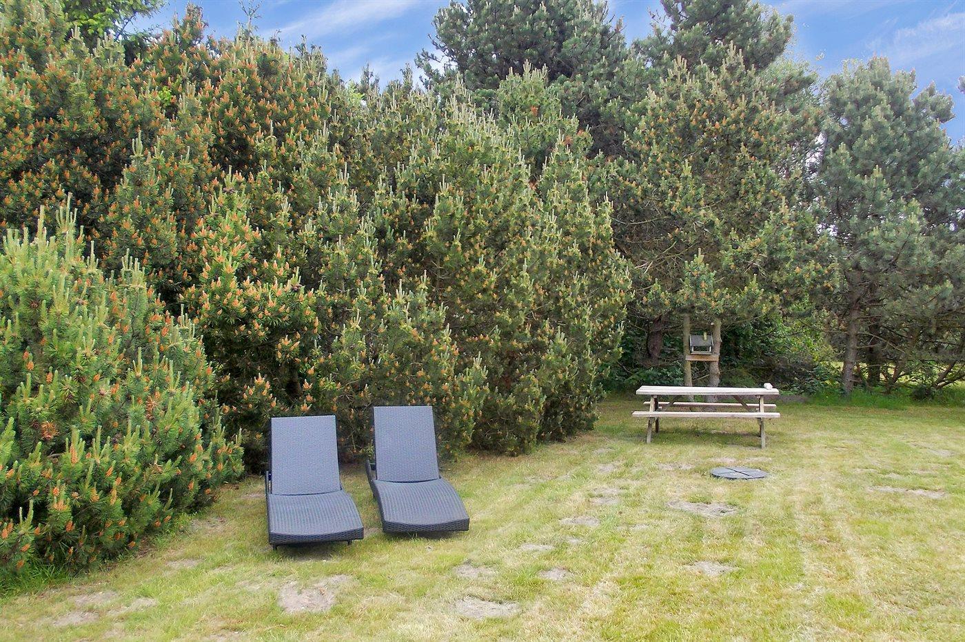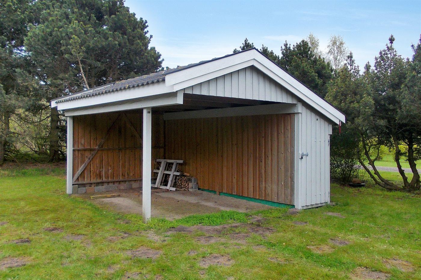 Ferieboligen er beliggende på en 900 m² stor naturgrund. Der er 350 m til havet. Nærmeste forretning er beliggende i en afstand af 300 m. Til ferieboligen hører 6 m² terrasseareal. Desuden er der 4 m² overdækket terrasse. Gynge. Sandkasse. Der er carport til rådighed. Parkering ved ferieboligen.