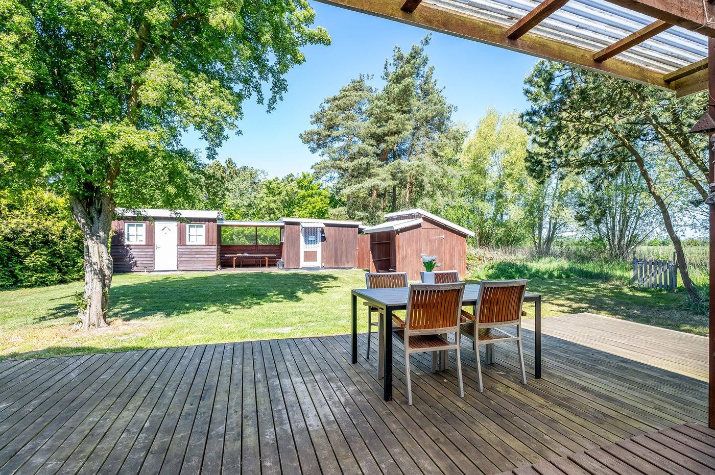 Rummeligt sommerhus i rolige omgivelser nær vandet med stor have og dejlige terrasser.