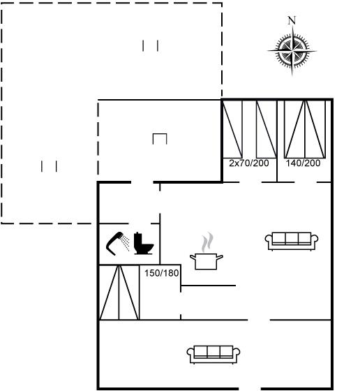 Der er i alt 3 soveværelser. Sovepladserne fordeler sig på: 4 sovepladser i dobbeltsenge. 2 sovepladser i enkeltsenge.