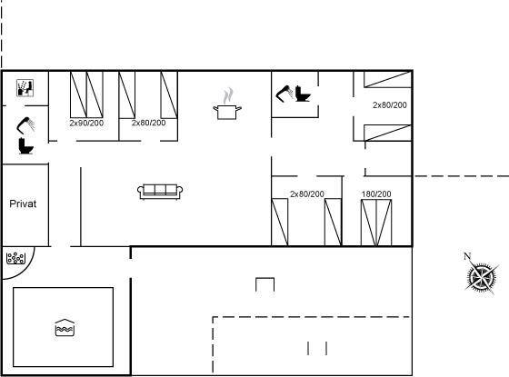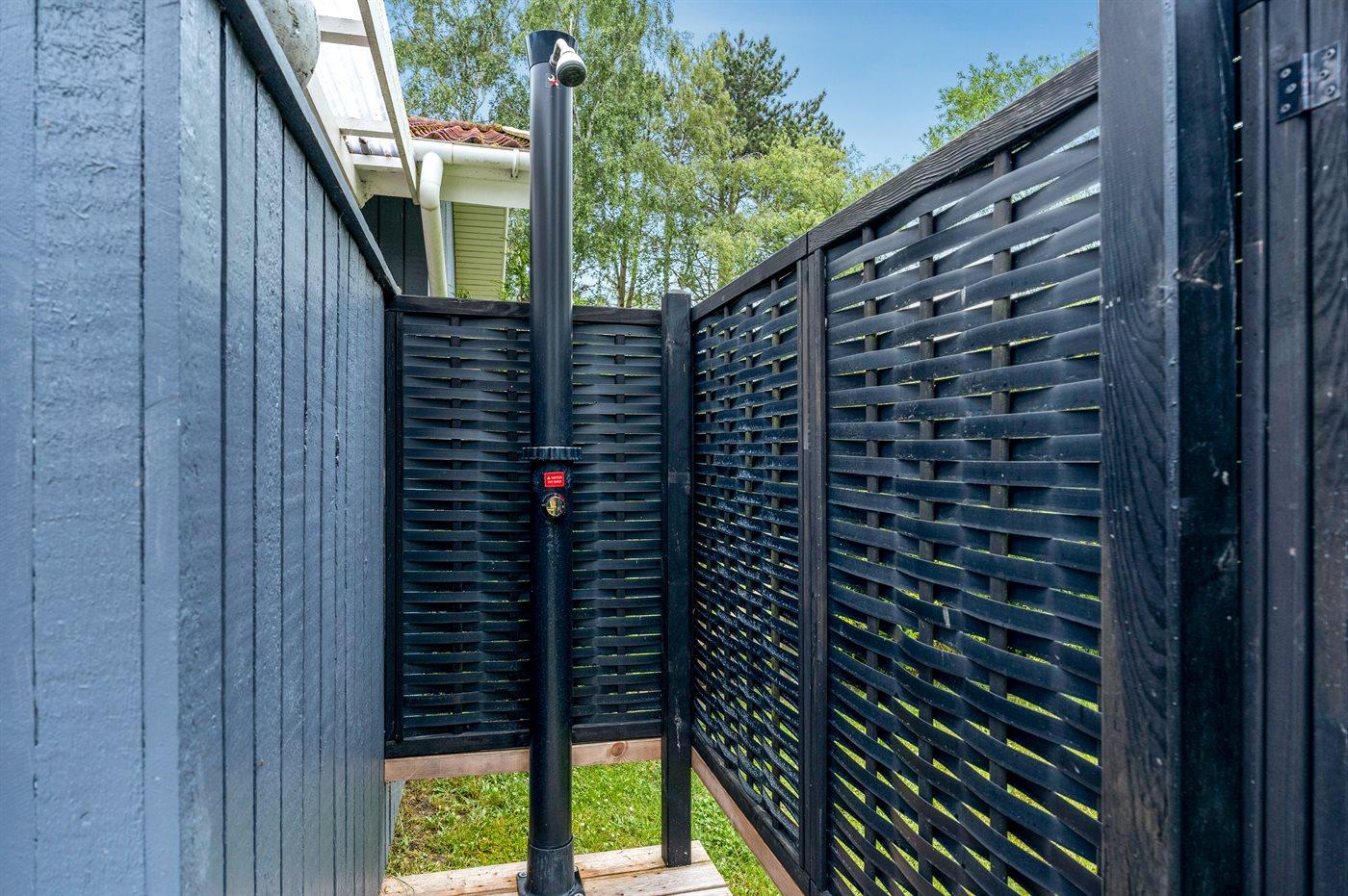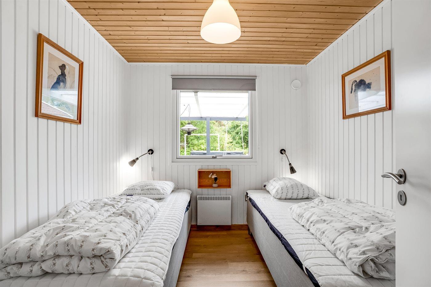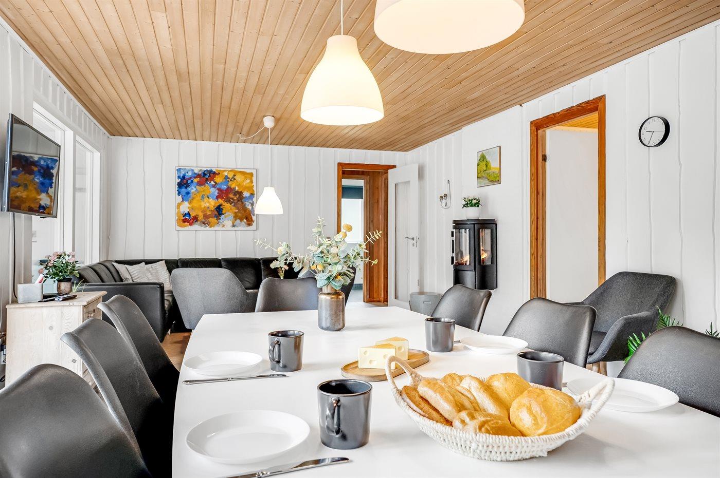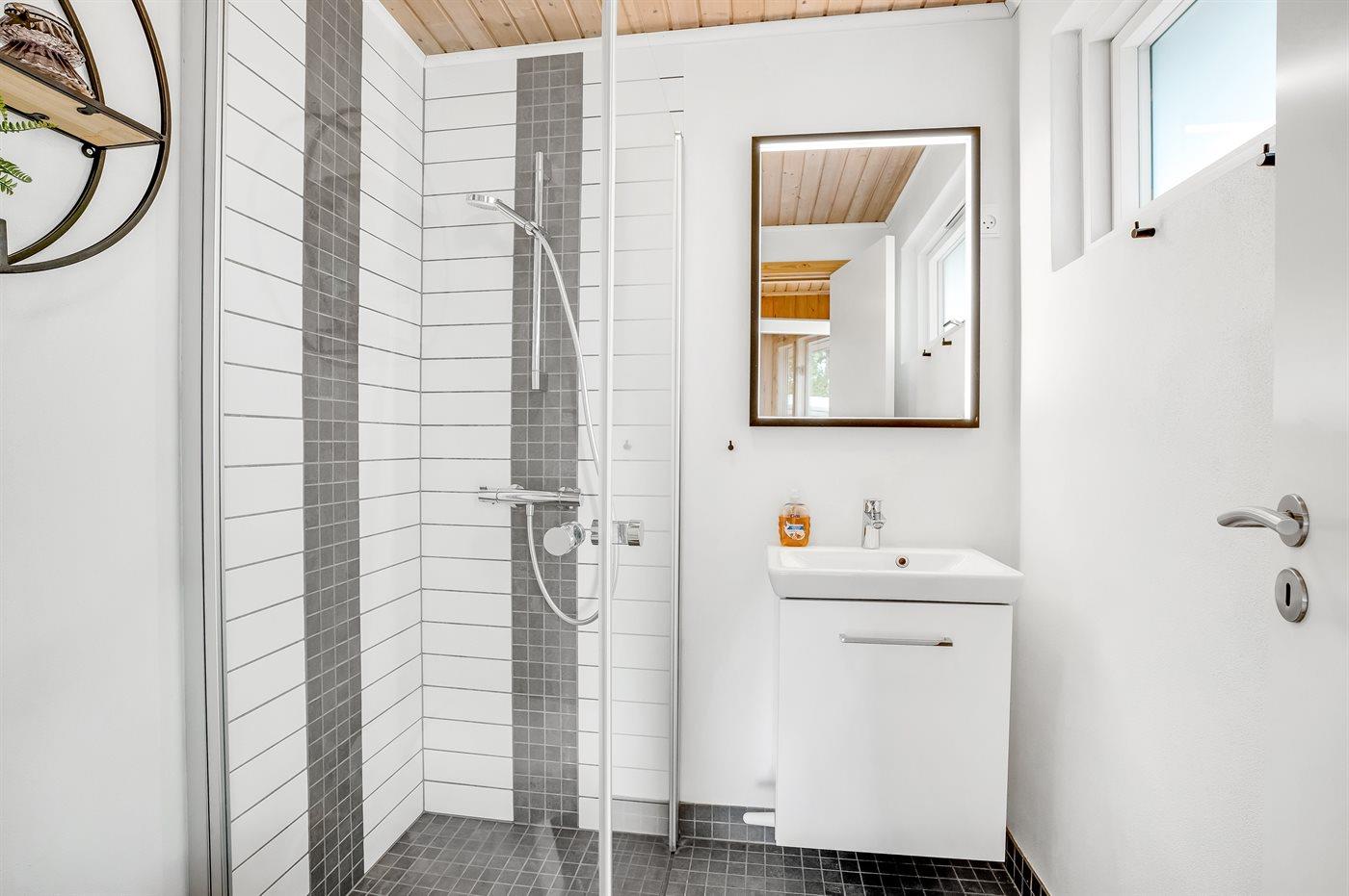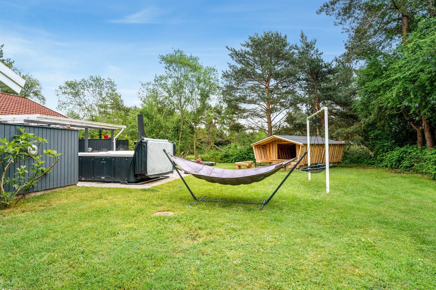 Det er tilladt at medbringe husdyr. Grunden er indhegnet. Man fornemmer straks den ro der hviler over sommerhuset, og med en tur i poolen/spaen ude/ inde eller en gåtur på de hyggelige stisystemer til vandet, så er der rig mulighed for afslapning. Huset er smagfuldt indrettet i 2021 med nye møbler. I den indendørs swimmingpool er der mulighed for leg og hyggeligt samvær. Swimmingpoolen måler 3,5 x 4,5 meter og er 1,3 m dyb. Til de små er der børnepool. Vandet er 24 til 28 grader varmt. I pool rum findes der 2 personers spa. Der er stor 6 personers standvandsspa udenfor med mulighed for afslapning året rundt. Spaen er ikke fyldt med vand ved ankomst, så ønskes spa ikke benyttet, er der ingen udgift til opvarmning. Ved benyttelse, er vandet i spaen 38 grader varmt på 3 timer. Der er i alt 5 soveværelser. Sovepladserne fordeler sig på: 4 sovepladser i dobbeltsenge. 6 sovepladser i enkeltsenge. Derudover er der 1 stk. barneseng. Køkkenet er udstyret med et køle/fryseskab med 60 liter fryser. Der er 4 induktionsplader, varmluftsovn, mikrobølgeovn samt opvaskemaskine alt af nyere dato. Der er 2 moderne badeværelser med bruseniche og 2 toiletter. I sauna og indendørs spa er der mulighed for afslapning. I begge badeværelser, køkken og stue er der gulvvarme. Til opvarmning er der såvel varmepumpe og brændeovn i stue udover gulvvarme samt el radiatorer i soveværelser. I ferieboligen er der er 1 TV, DVD-afspiller og radio. Der er danske, tyske, svenske og norske tv-kanaler. Der er trådløst internet til rådighed. Fra stuen er der adgang til en 70 m2 stor delvis afskærmet sydvendt terrasse med 20 m2 overdækning. Havemøbler til 10 personer, 2 solvogne samt 2 grille. I den store have findes der: Legehus, gynger, 2 fodboldmål samt stor nedgravet trampolin. Shelter. Der er carport samt parkering ved boligen.