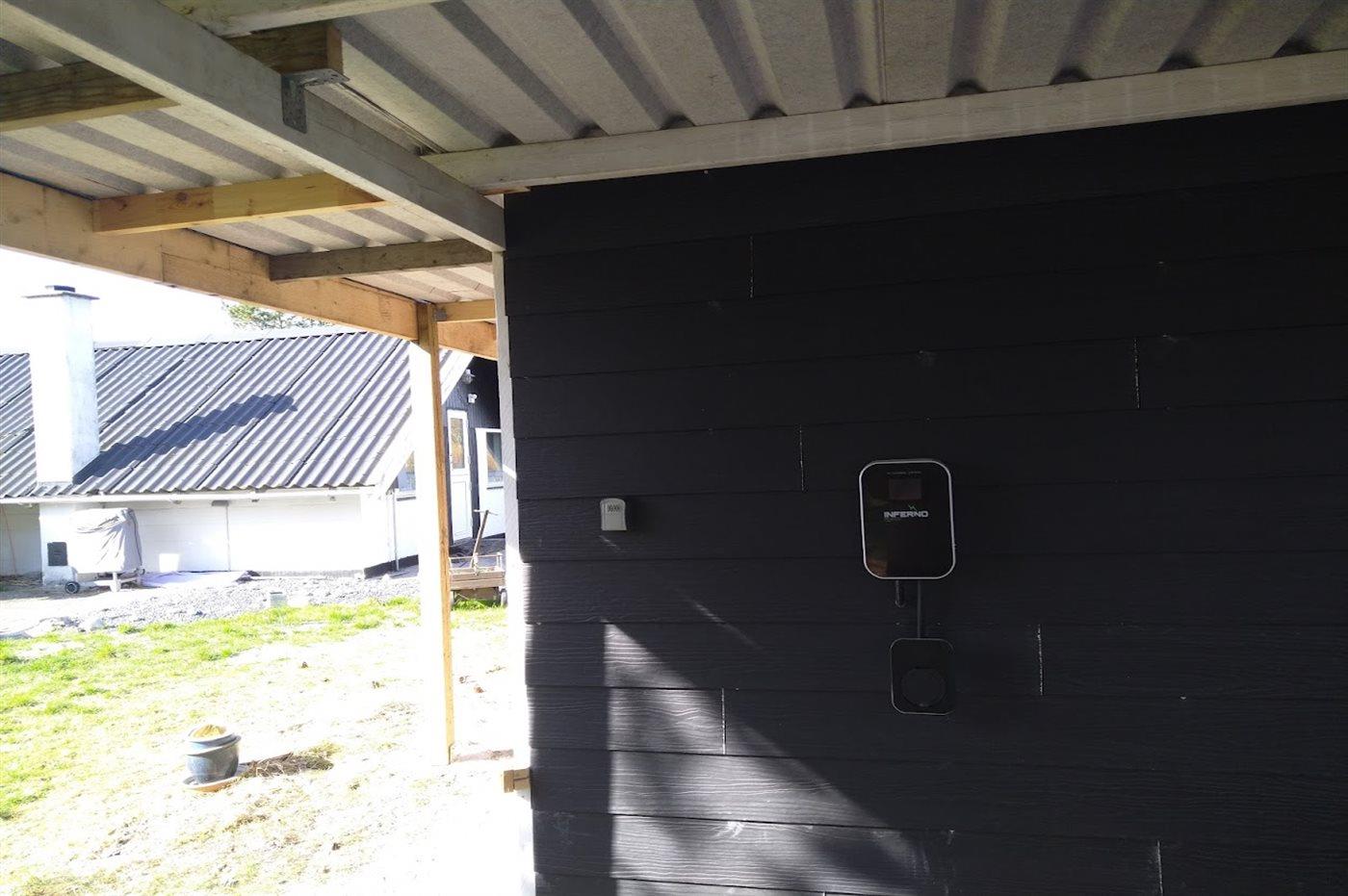 Hyggeligt sommerhus tæt på vandet med terrasse, brændeovn og elbiloplader i roligt område.
