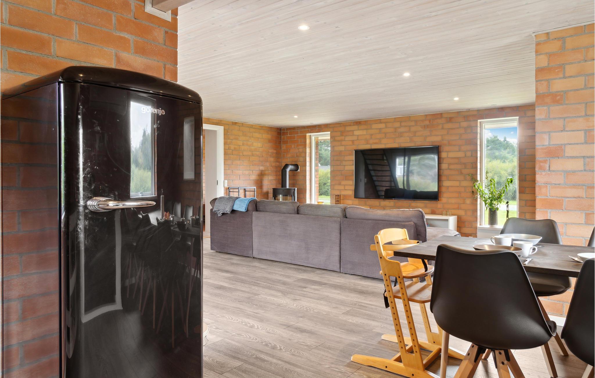 Velkommen til dette indbydende murstenshus med åbent opholdsrum. Her vil I uden tvivl føle jer hjemme. Nyd tiltrængt kvalitetstid, når I laver en madlavningsdyst, bager sammen med børnene, slapper af i sofaen om aftenen til en underholdende film eller spiller ved spisebordet. På kølige aftener sørger brændeovnen for ekstra hygge. I den store have er der lagt op til timevis af leg! Der er legeredskaber til rådighed, som kan bruges af både store og små. Lad børnene springe til nye højder på trampolinen eller spille fodbold, mens I griller maden færdig på terrassen.