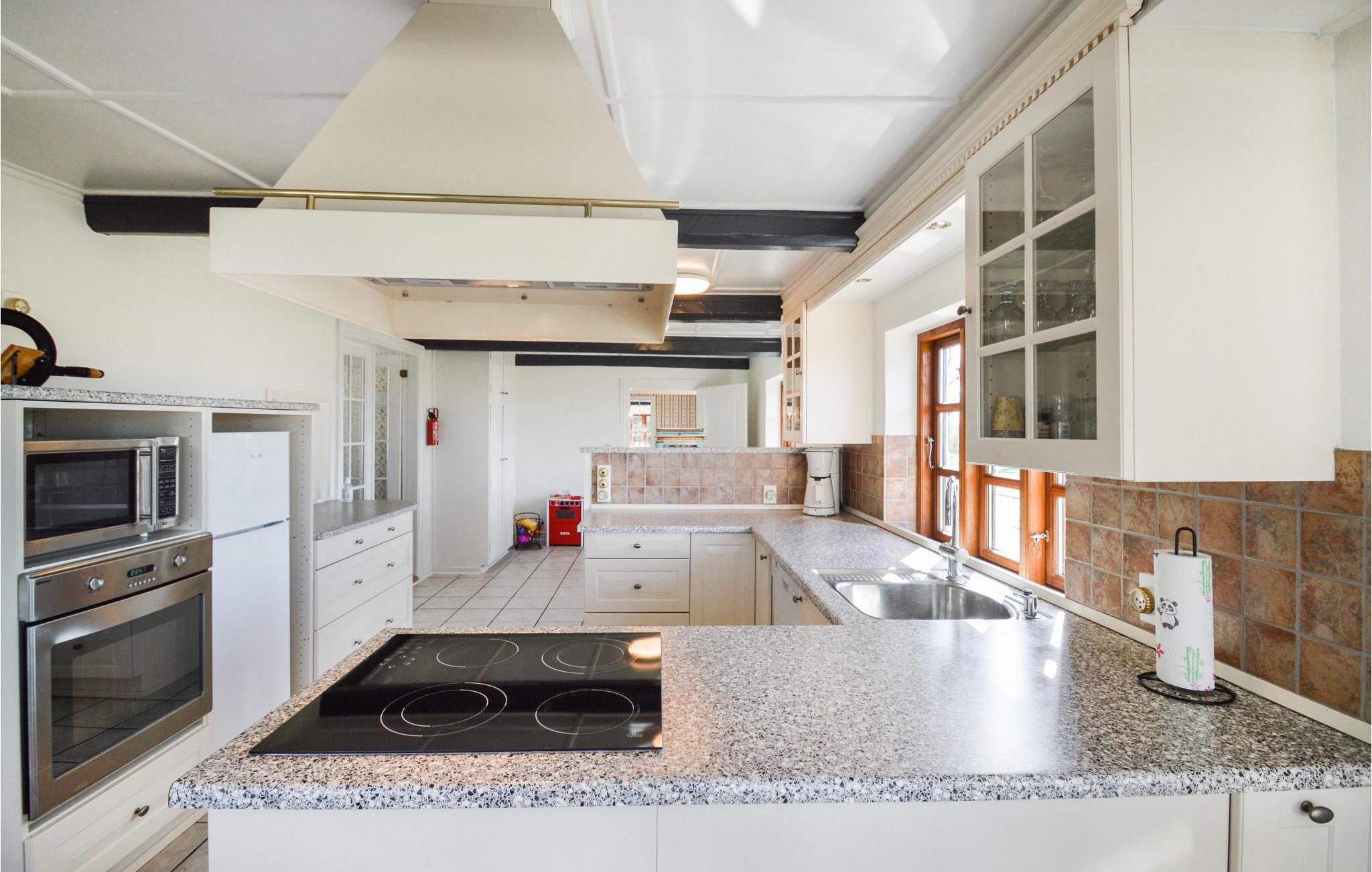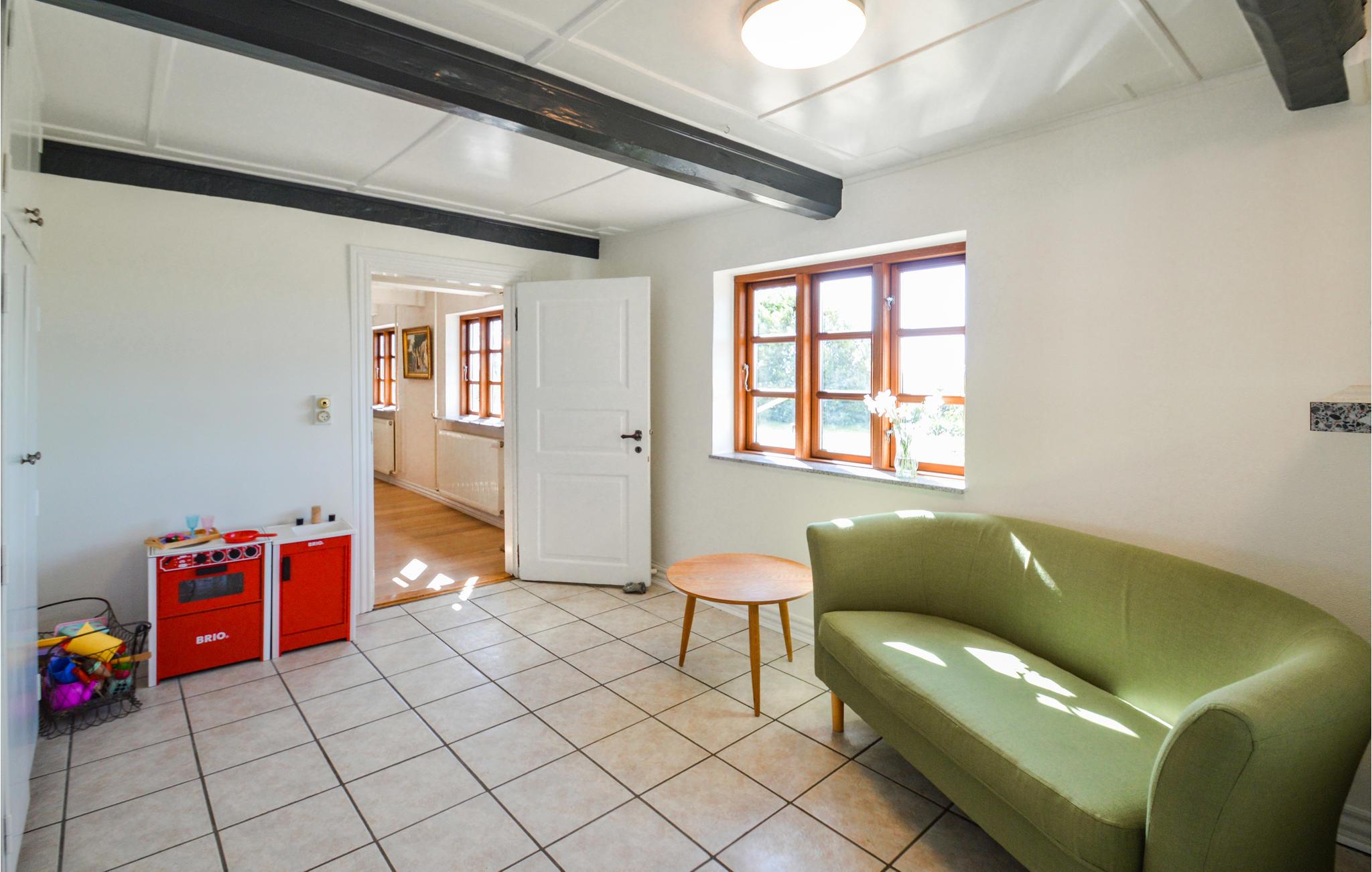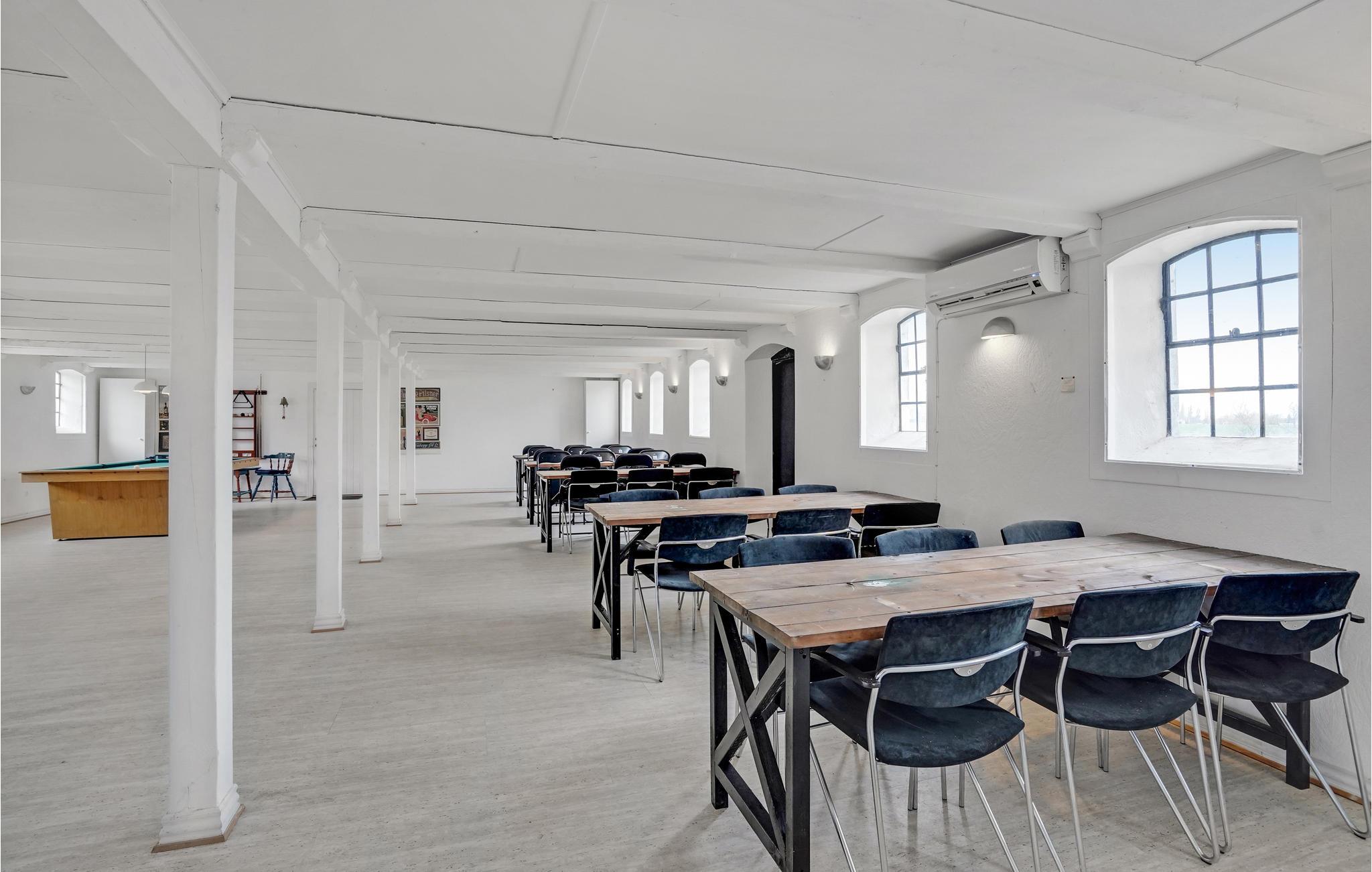 Her er den landlige charme bevaret i små detaljer rundt om i huset, som de smukke, originale bjælker der går gennem hele huset. I kan blandt andet glæde jer til store lyse rum med masser af plads til hygge og afslapning. I den store sofa i opholdsstuen kan I komme helt ned i gear foran fjernsynet, og I kan glæde jer til festlige middage i den hyggelige spisestue. Her kommer I bestemt ikke til at kede jer, der er nemlig et aktivitetsrum med billardbord og masser af plads til leg og spil for hele familien. Dette rum er også oplagt til festlige begivenheder.