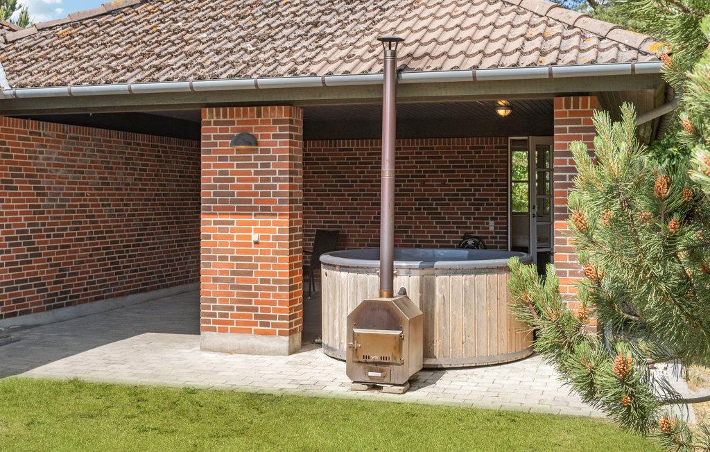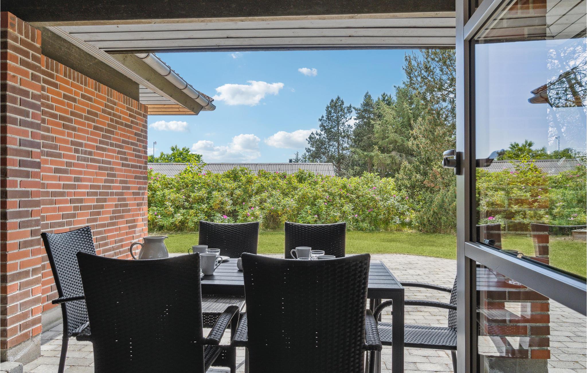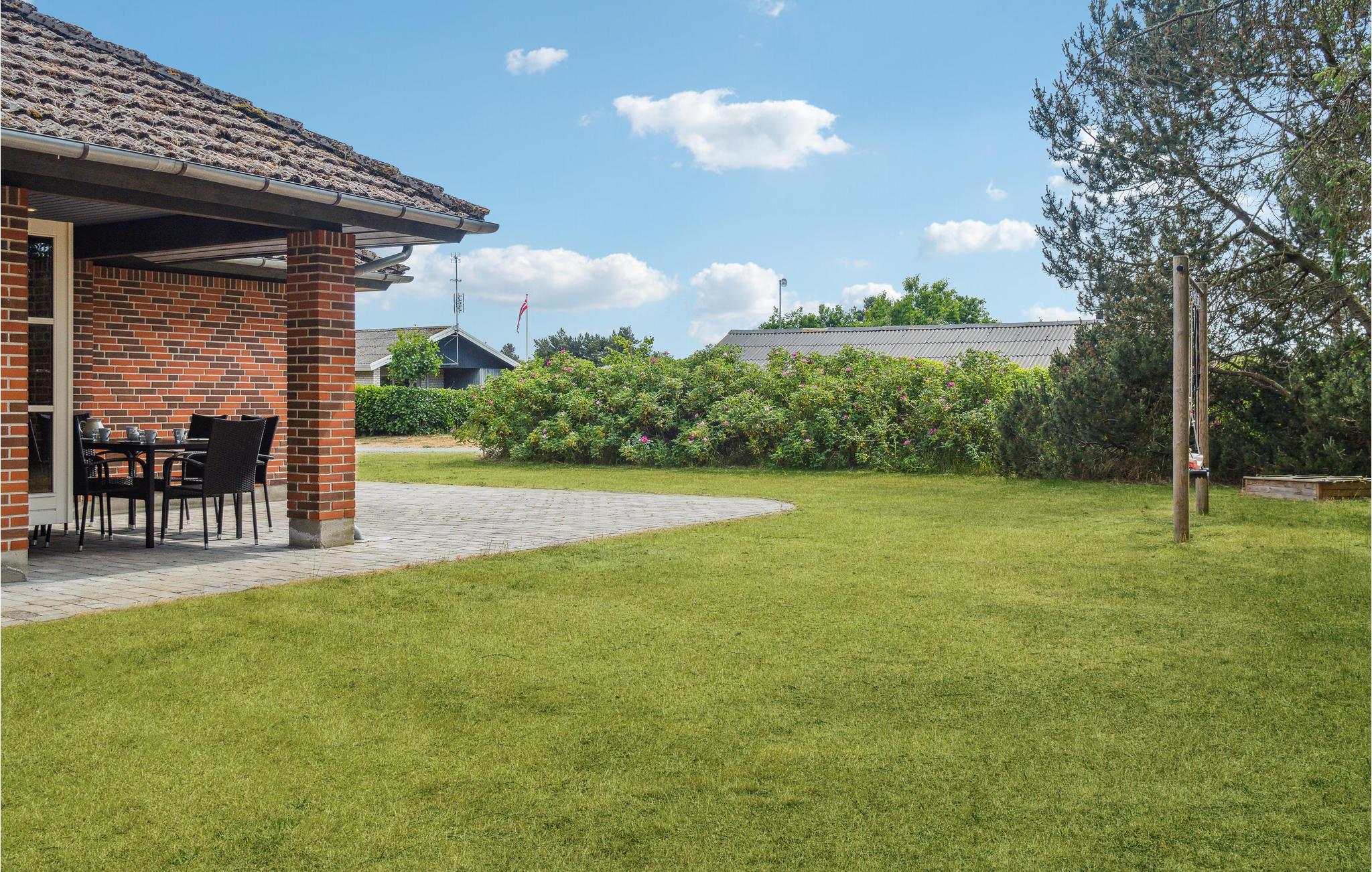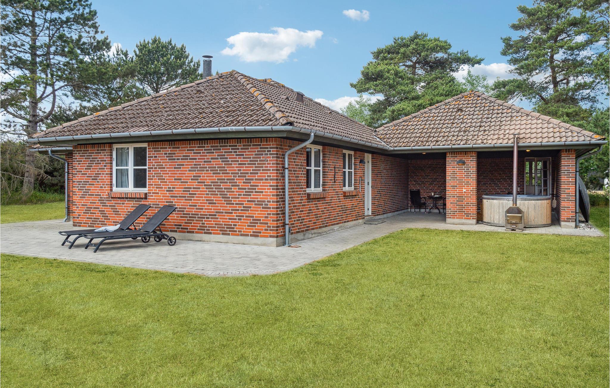 Velkommen til dette komfortable og indbydende feriehus, der ligger på en naturgrund i smukke og rolige omgivelser. Træd ind, og nyd den lyse og behagelige atmosfære og de flotte trægulve. Det pæne og velfungerende køkken forbinder spise- og opholdsstuen, som begge fremstår rummelige og åbne. Spisestuen byder på et spisebord med plads til hele familien, mens opholdsstuen er indrettet med en stor hjørnesofa og et kaffebord. Nyd feriedagene sammen som familie med madlavning, gode middage, spil og film. Og find roen foran brændeovnen, der bidrager med varme og hygge. Badeværelset byder på en niveaufri bruser og gulvvarme, og takket være vildmarksbadet, der befinder sig i carporten, har I her jeres helt egen wellnessafdeling. Slap også af på det åbne og det overdækkede terrasseareal, og nyd solen i havemøblerne, mens børnene gynger og leger i sandkassen.