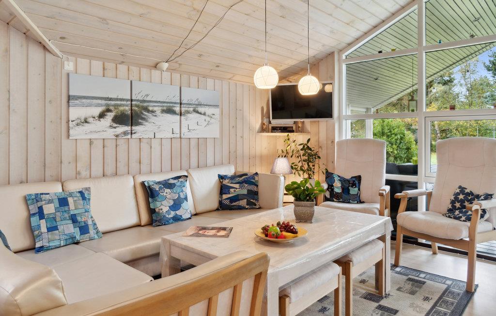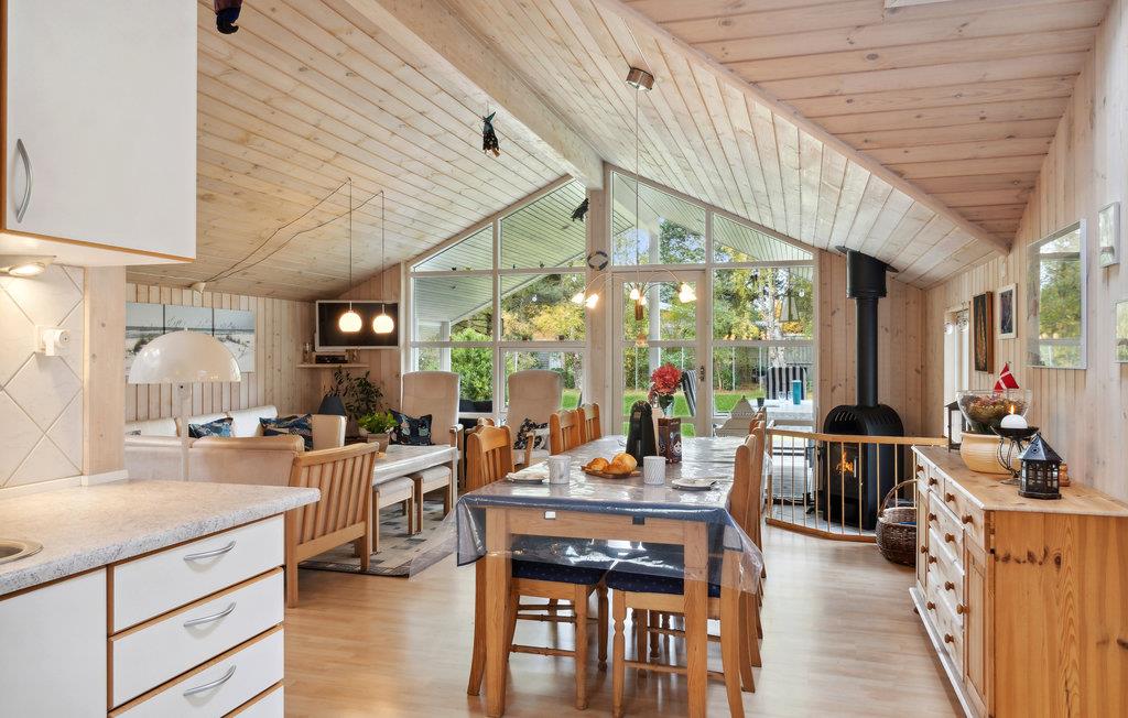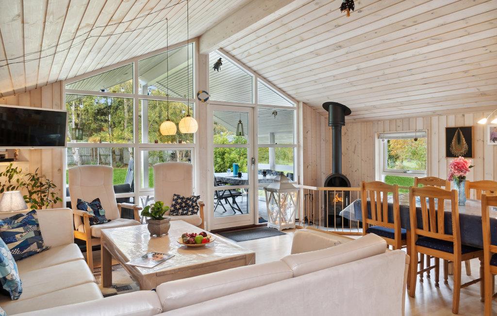 Velkommen til Kramnitse og dette familievenlige hus med kort afstand til havet og en ideel beliggenhed til en ferie med både vidunderlige stranddage og spændende aktiviteter. Det lyse træhus med klassisk sommerhuscharme og indretning i lyse, venlige farver samt ikke mindst det store vinduesparti gør det til et behageligt sted at slappe af med familien. Uanset om I laver mad og spiser sammen eller sludrer i den hyggelige sofa, kan I nyde tiden sammen i fulde drag. Skab en ekstra hyggelig stemning om aftenen med ild i brændeovnen og lad blikket vandre ud i haven gennem de store vinduer. Den store naturgrund byder på masser af plads til leg og afslapning. Se børnene grave, mens I nyder solen på terrassen, og glæd senere hele familien med lækre retter fra grillen. Fra feriehuset kan I spadsere til stranden, som er perfekt til badesjov og lange gåture.