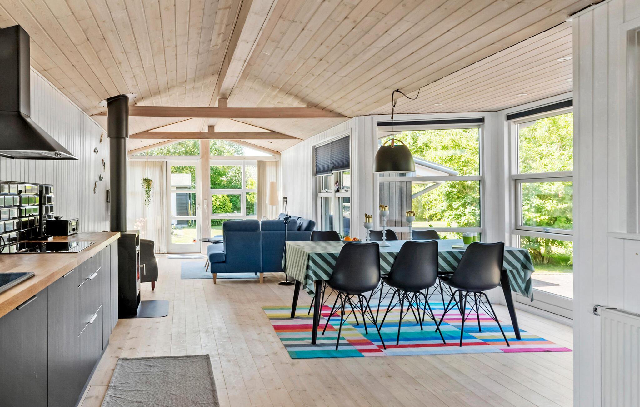 Leder I efter et dejligt, stort sommerhus, hvor I får hyggelige rammer til jeres næste familieferie? Så rammer I plet med dette sommerhus ved Kramnitse Strand. Her sænker skuldrene sig automatisk, fra det øjeblik hvor I træder ind i huset. De store vinduesfronter inviterer haven ind i stuen og giver jer et dejligt lokale at samles i. Den store terrasse og den velholdte have har noget til alle familiemedlemmer. Mens børnene spiller fodbold på plænen, kan de voksne læne sig tilbage på terrassen med en god bog eller en kop kaffe.