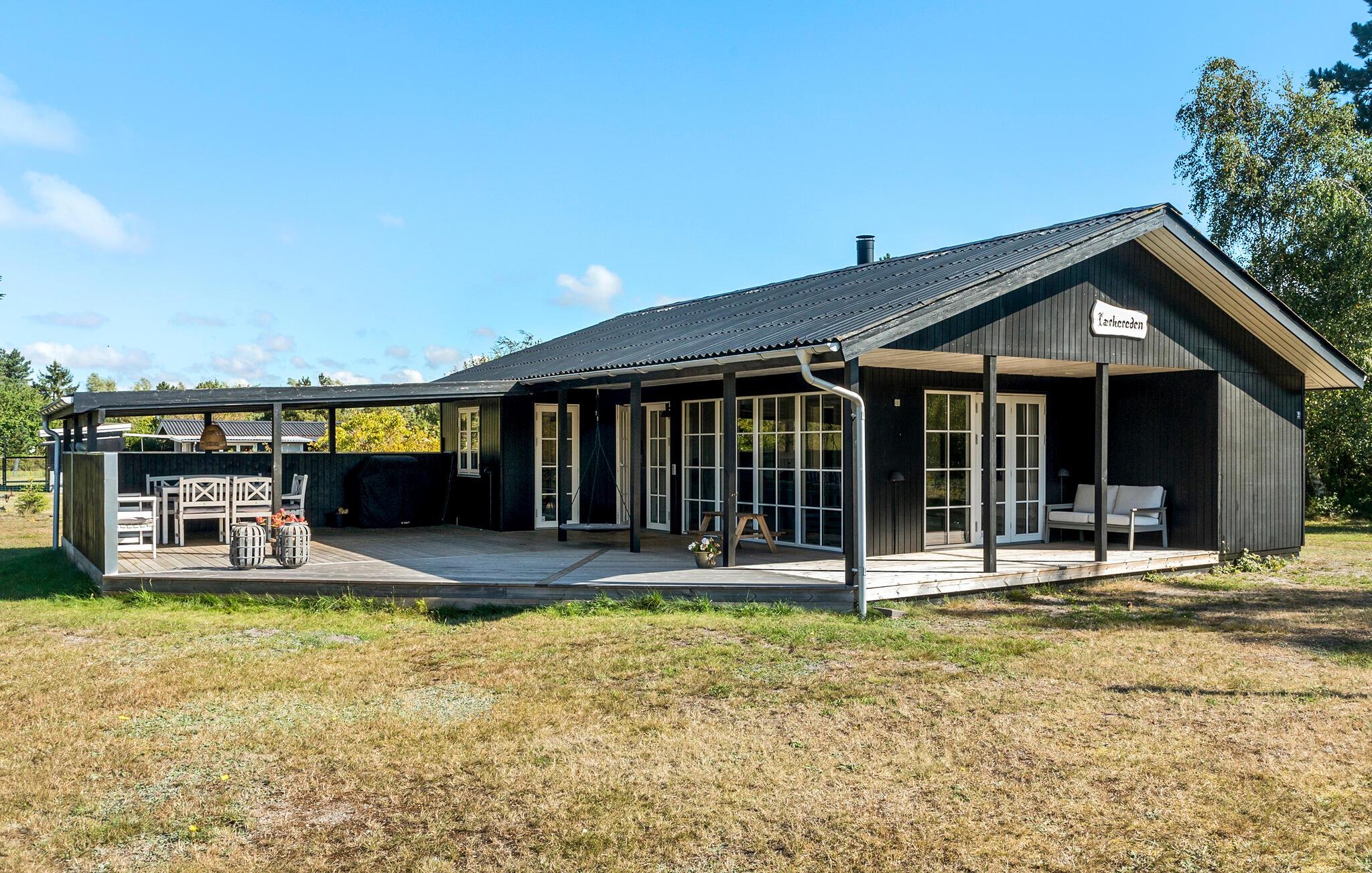 Udenfor byder huset på en stor terrasse med havemøbler. Dæk op til en herlig sommermiddag med retter fra grillen eller sæt jer med en kop kaffe og nyd morgenstunden, inden dagens aktiviteter går i gang. Der er god plads til at boltre sig i den store have, så børnene får helt sikkert nogle gode stunder udendørs.