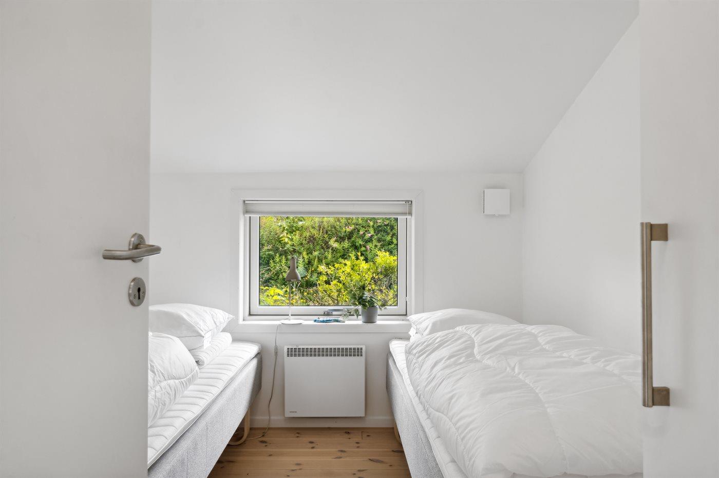 Der er i alt 2 soveværelser. Sovepladserne fordeler sig på: 2 sovepladser i dobbeltseng. 2 sovepladser i enkeltsenge.