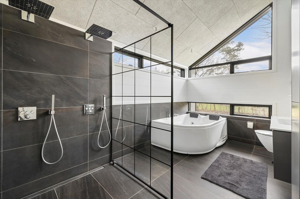 Huset rummer tre store og indbydende soveværelser, der indbyder til afslapning efter en lang dag med oplevelser. Med to luksuriøse badeværelser er der plads til alle. Det ene badeværelse byder på dobbeltbruser og spa – ideelt til at forkæle dig selv og dine nærmeste.