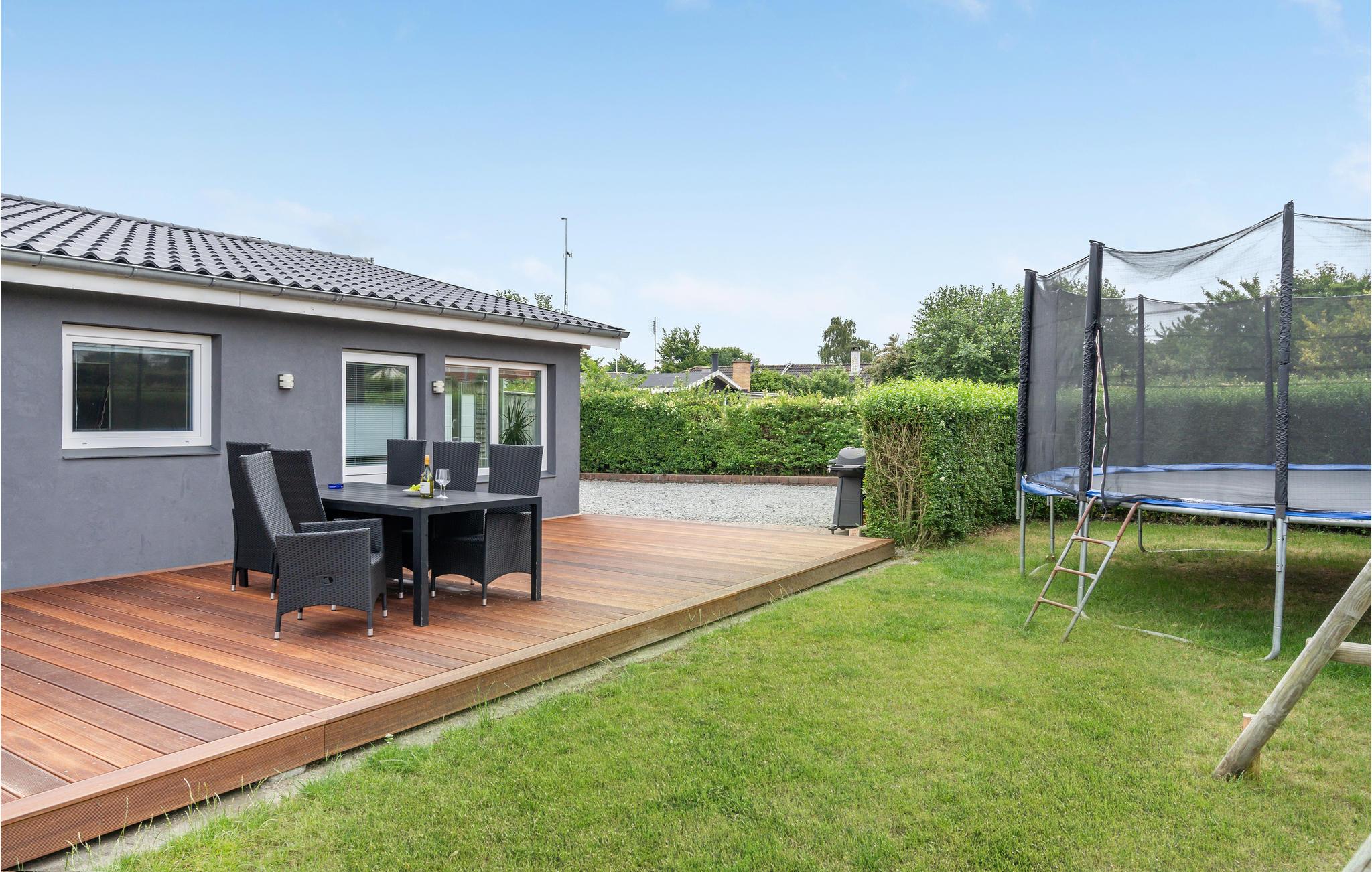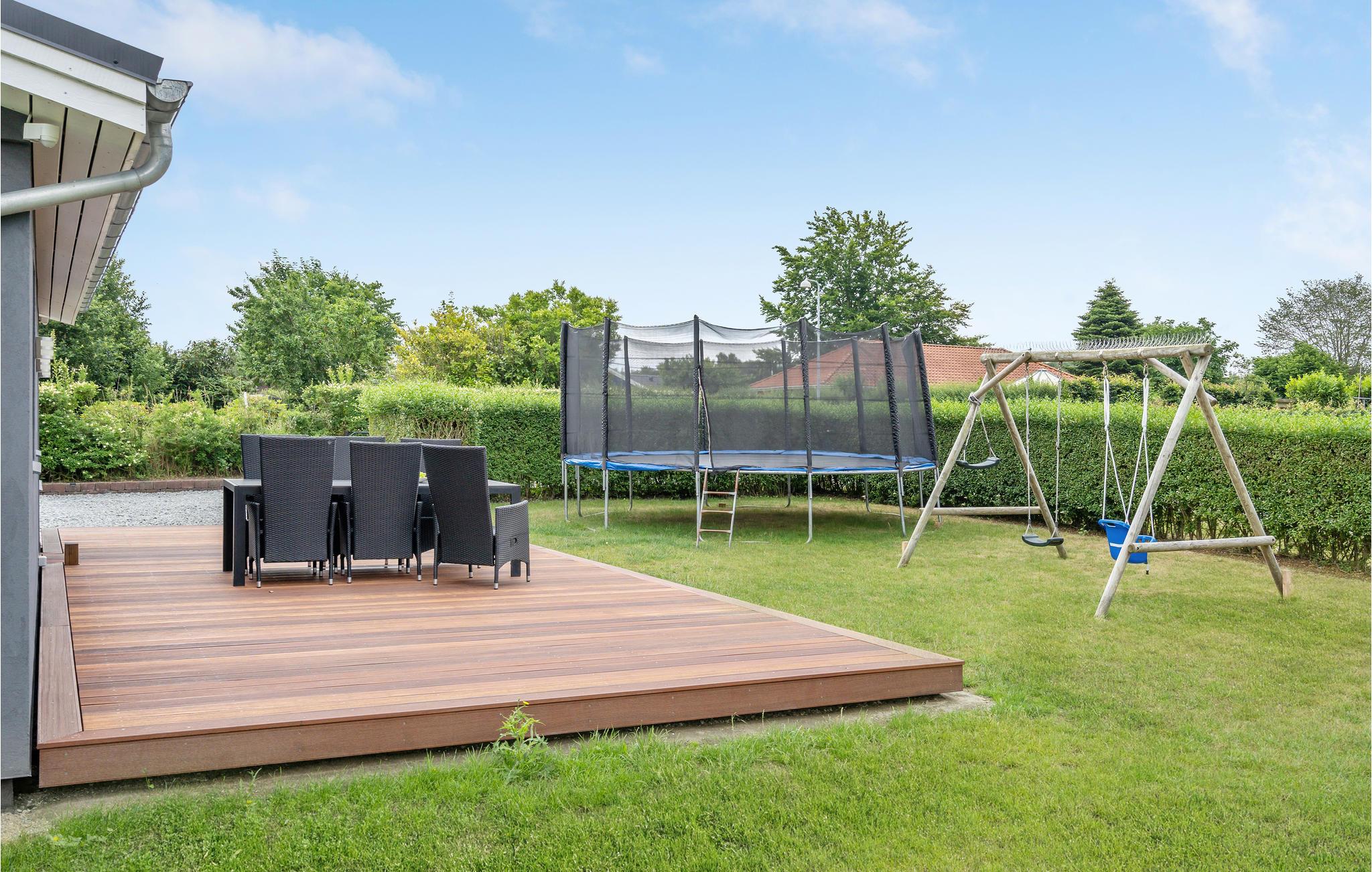 På den indhegnede ejendom vil børnene have meget sjov med gyngen og trampolinen. I kan sidde sammen i komfortable havemøbler ved grillen og tilbringe afslappende timer udendørs.