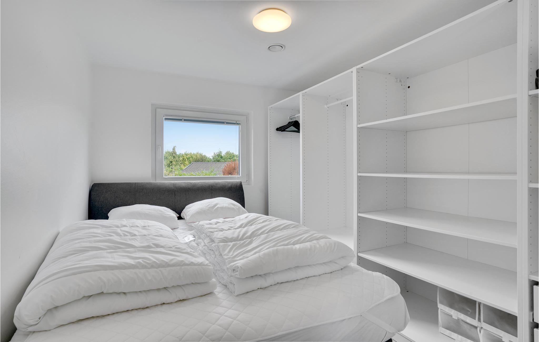 Moderne sommerhus nær fjorden med pejs, indhegnet have og plads til kæledyr.