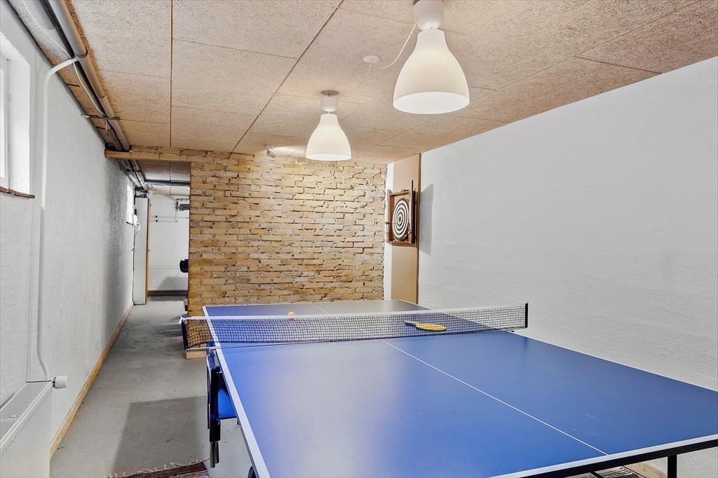 Træd ind i dette rummelige og indbydende sommerhus, hvor den unikke beliggenhed sikrer nem adgang til stranden for aktiviteter som surfing, badning eller fiskeri. Indenfor kan I nyde den betagende udsigt over vandet direkte fra den sydvestvendte udestue. På førstesalen finder I en stue med panoramaudsigt over vigen, fladskærms-tv og adgang til en overdækket altan. Huset har også et dejligt køkken-alrum, et bryggers og to badeværelser. Fordelt på stueplan og førstesal er der fire soveværelser og et mindre kammer, alle med komfortable dobbeltsenge. I kælderen finder I et aktivitetsrum med bordtennis og bordfodbold, perfekt til underholdning for hele familien.