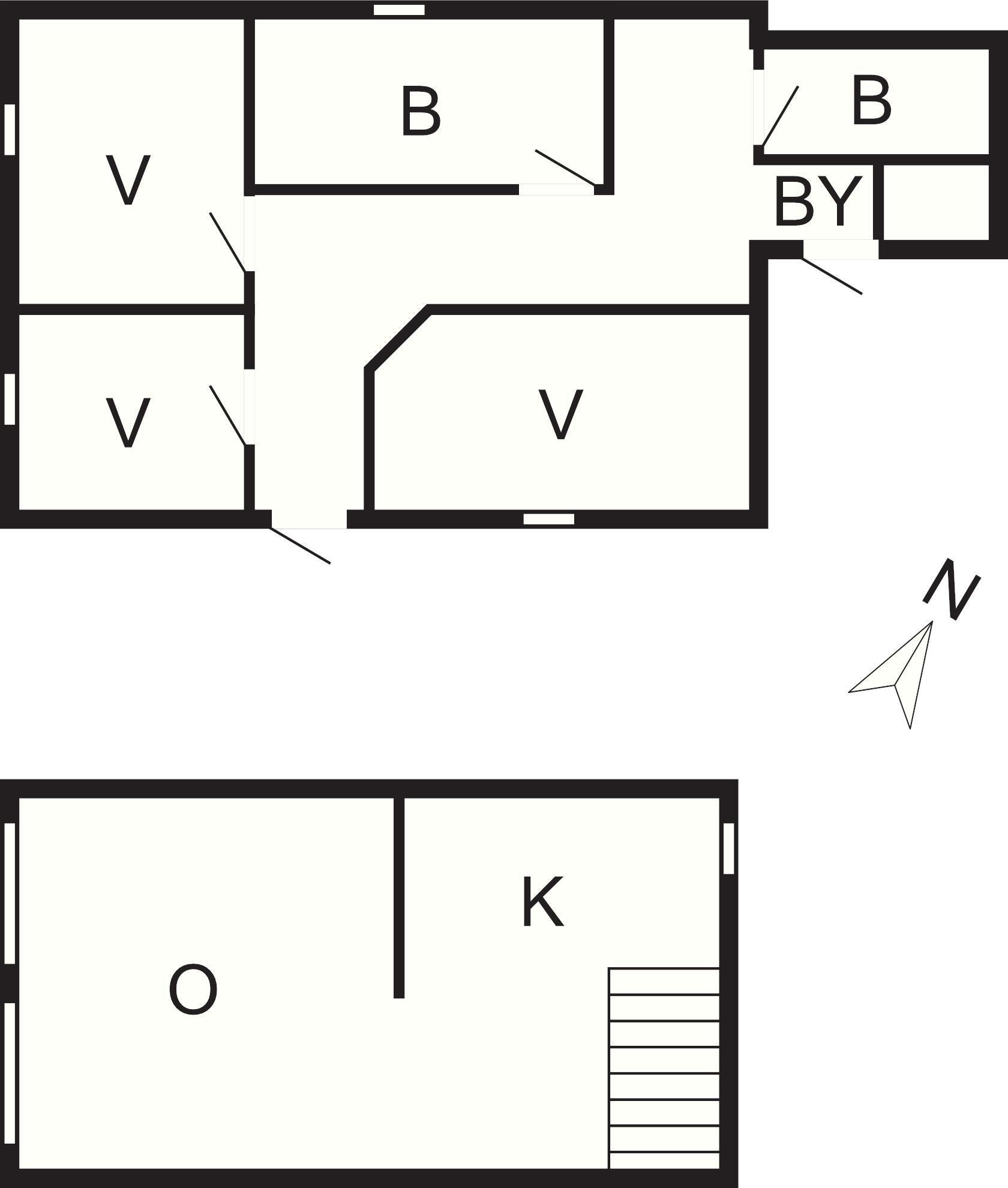 1 Opholdsstue: Brændeovn, stereoanlæg med cd, tv, høj stol