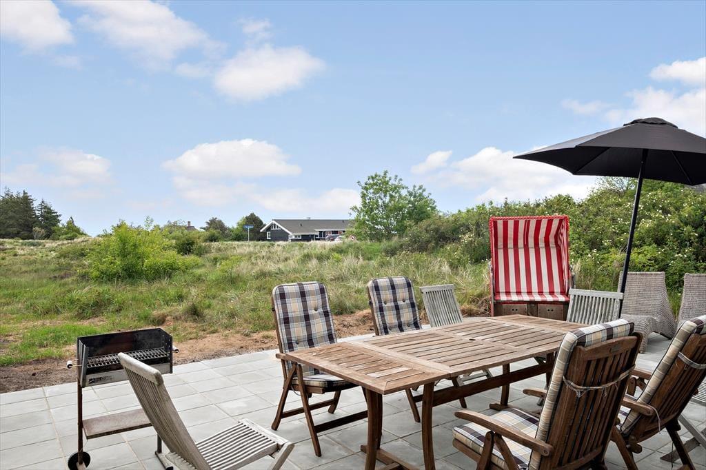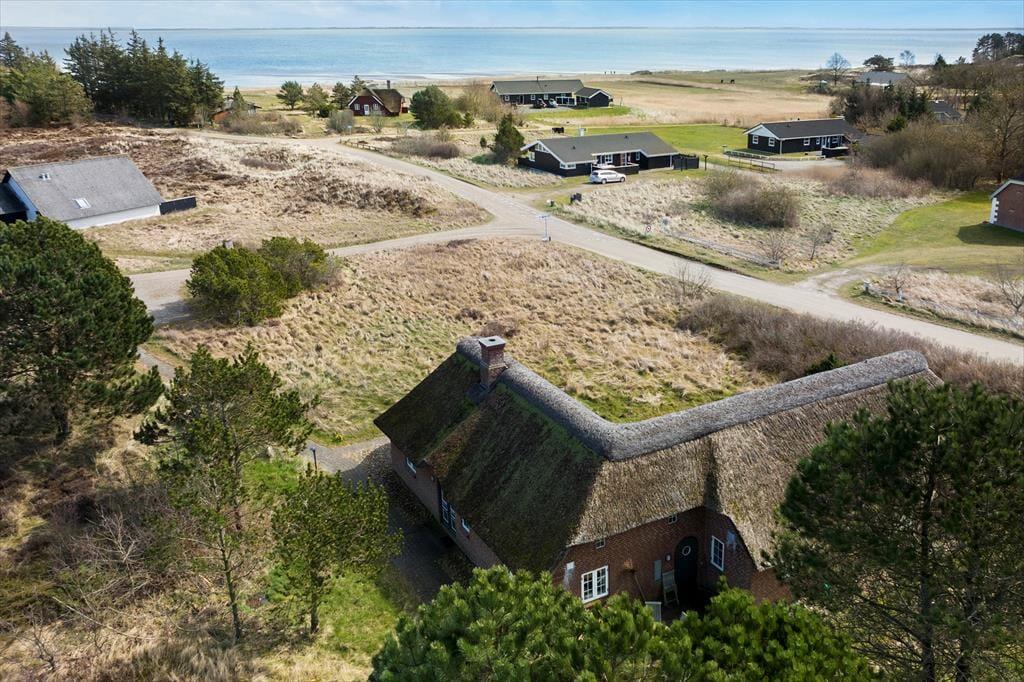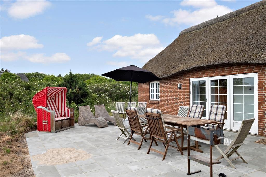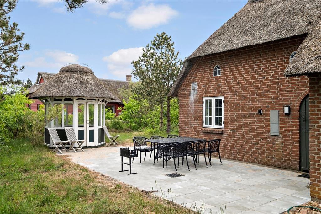Fra både stuen og køkkenet har du direkte adgang til en stor, sydvendt terrasse, hvorfra du kan sidde og kigge ud over kystlandskabet mod Vadehavet. Det er et skønt sted at nyde sol og sommerliv, og hvis du trænger til luftforandring, kan du rykke over på den vestvendte terrasse. På en solrig forårsdag eller en fredelig sommeraften er det også hyggeligt at sidde i den stråtækte havepavillon, der står på den store naturgrund.