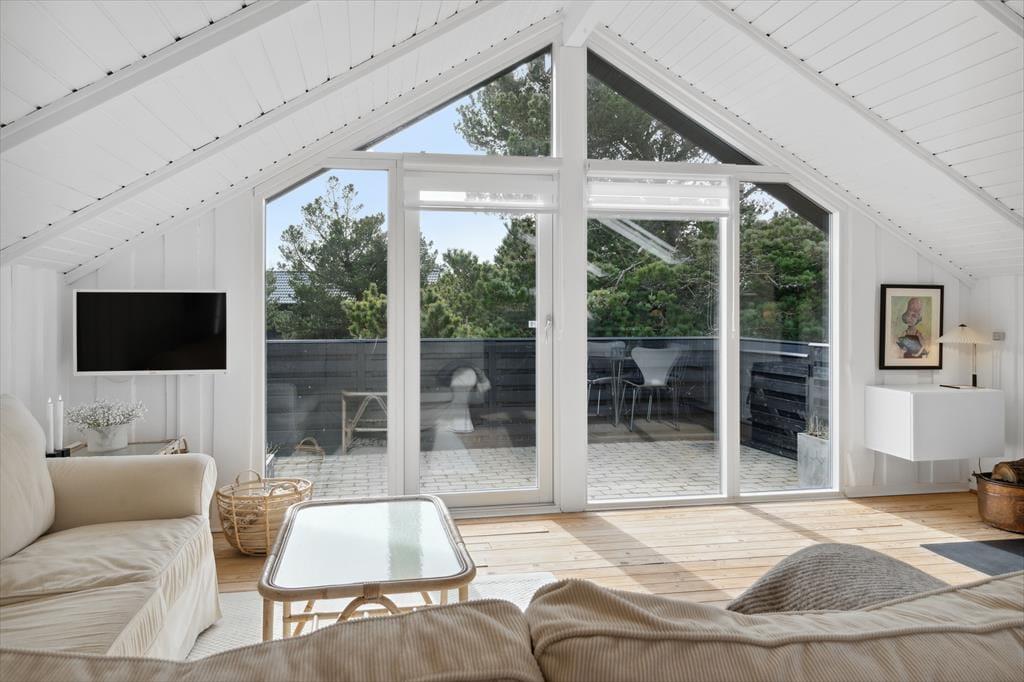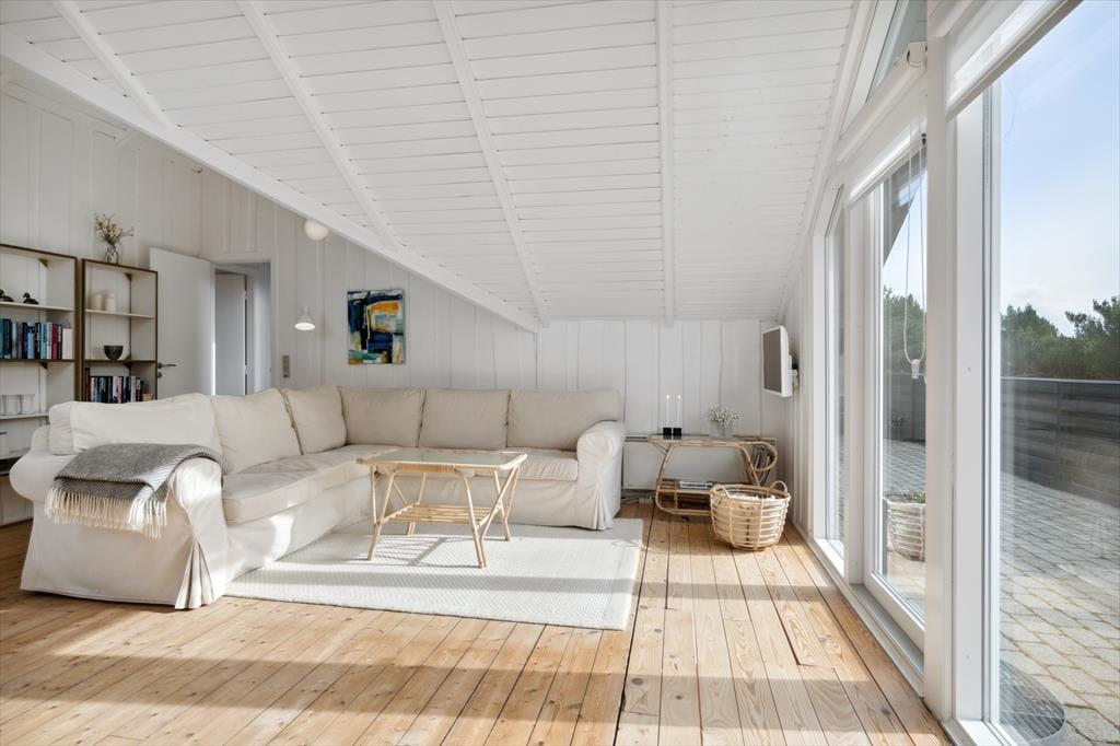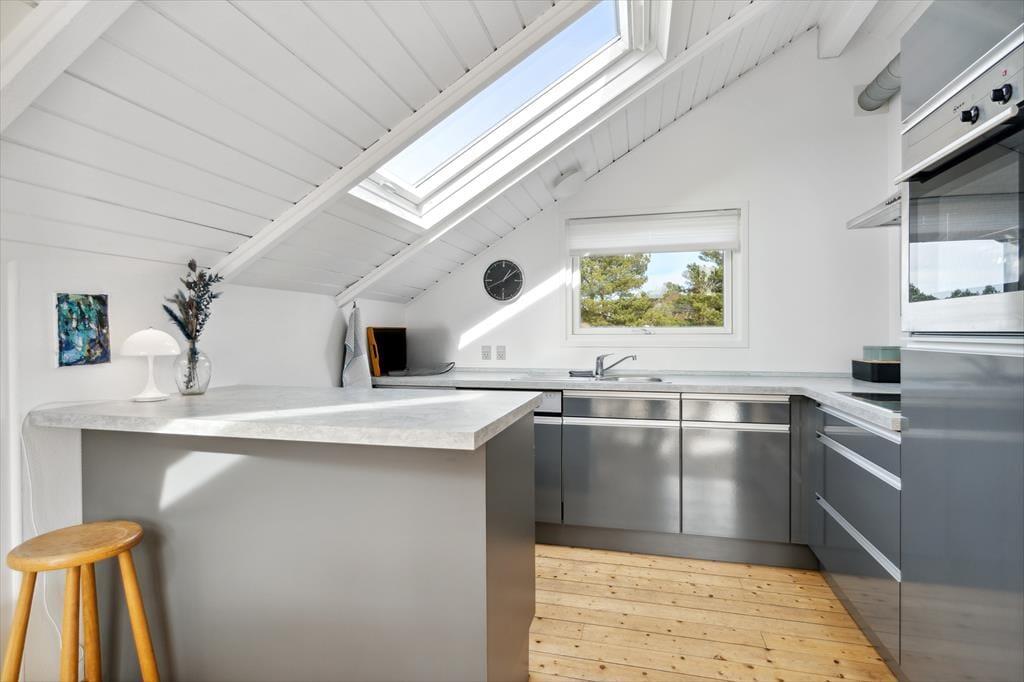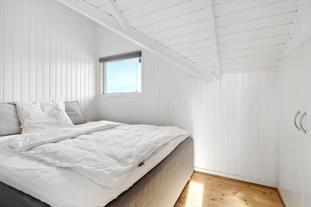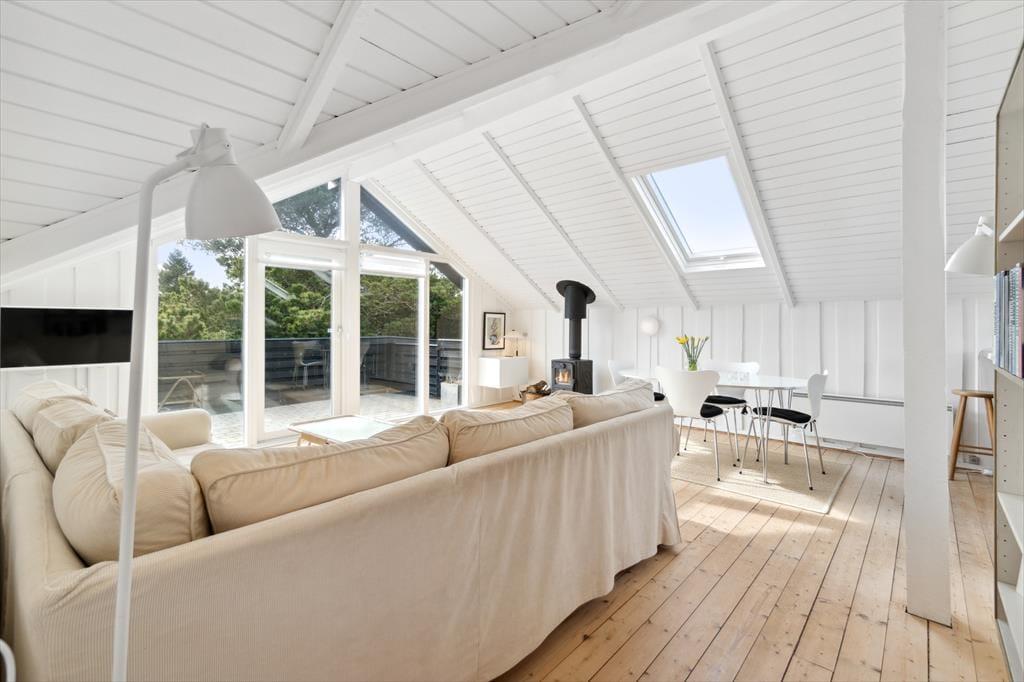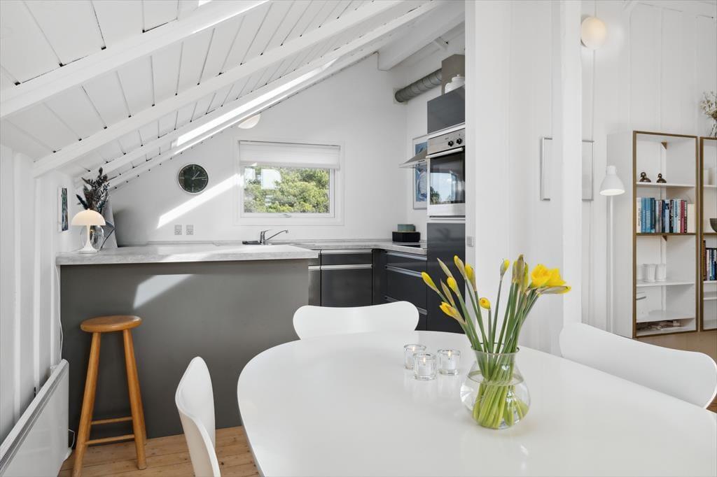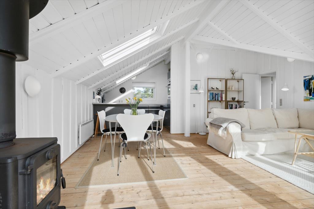 Efter en grundig renovering i 2018 har sommerhuset et lyst og indbydende indre. Fra entréen har du adgang til tre gode soveværelser, der alle er udstyret med dobbeltseng, foruden et badeværelse med bruser og vaskemaskine. I det åbne og veludstyrede køkken har du glimrende arbejdsforhold, når du vil lave brunch eller andre feriemåltider, og når maden står klar, kan du bruge lang tid på at nyde lækkerierne ved stuens spisebord. En brændeovn i hjørnet spreder både hygge og varme, hvis det er køligt udenfor – og på sådan en feriedag er der simpelthen ikke noget bedre end at krybe sammen i sofaen med et lunt tæppe og en god film på fladskærmen.