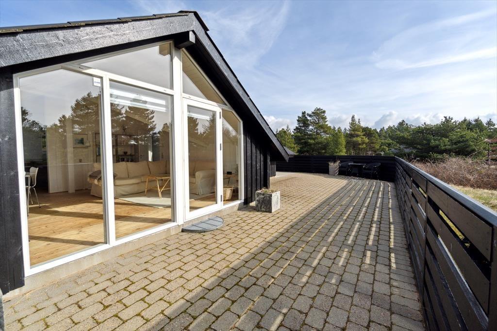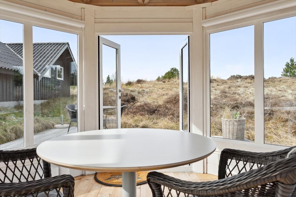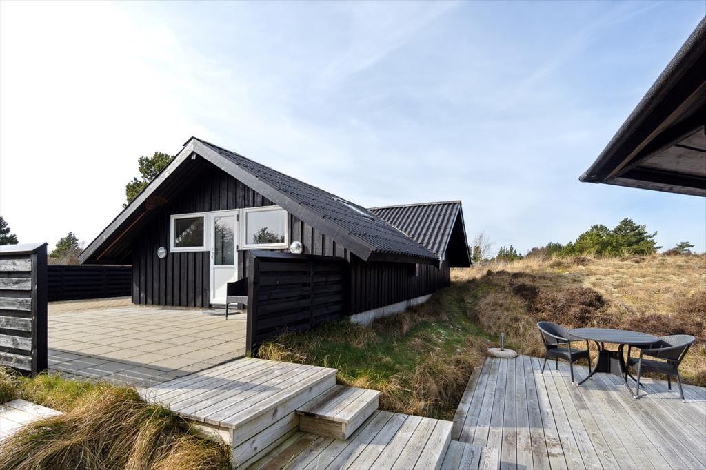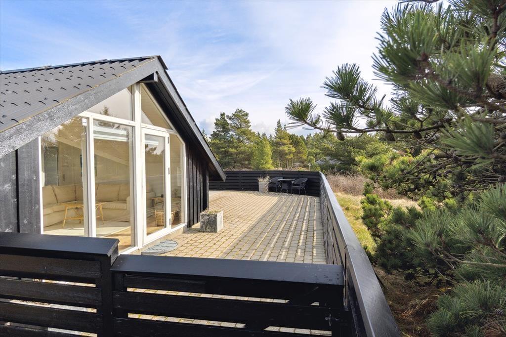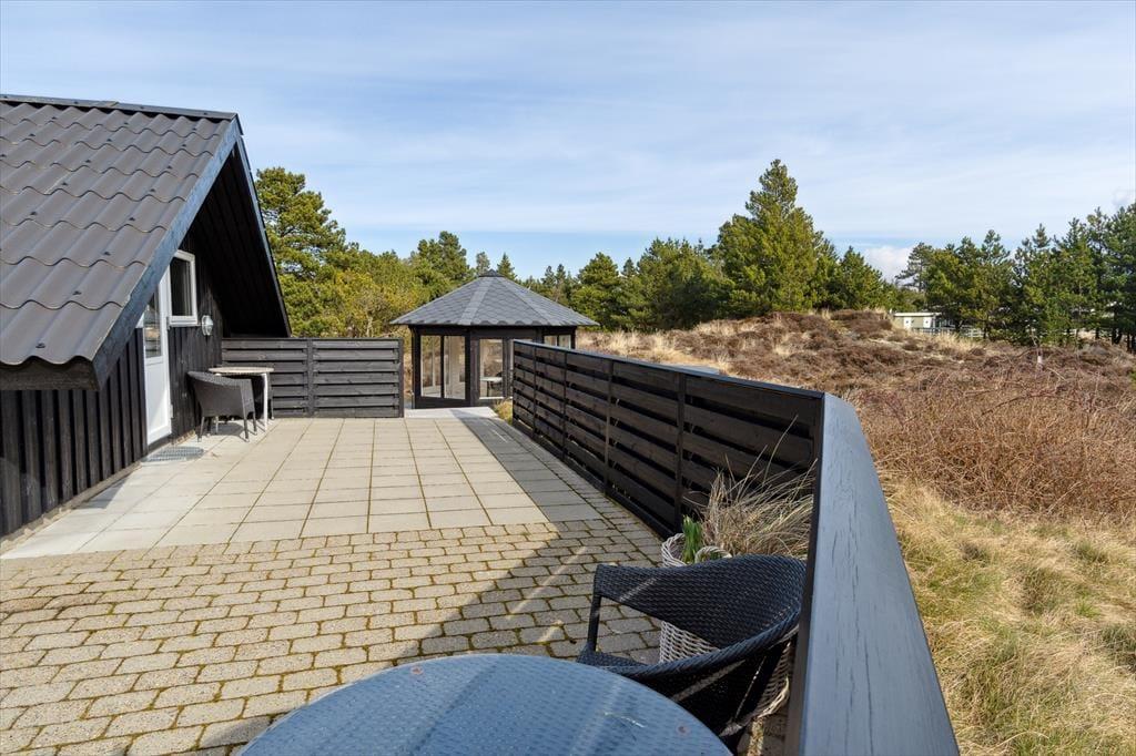 Det er ikke kun på de allervarmeste feriedage, at du kan få stor glæde af sommerhusets udearealer, for udover et lækkert terrassemiljø står der både et vildmarksbad og en opvarmet pavillon på den 3000 m² store grund. De er på hver sin måde med til at forsøde ferielivet: Skinner forårssolen, kan du rykke ud i pavillonen med en god kop kaffe, og hen over sommeren kan du nærmest leve herude med fri udsigt til den lyngklædte naturgrund. Og om aftenen, når stjernerne begynder at titte frem på himlen, føles det helt magisk at sidde i det varme vildmarksbad.