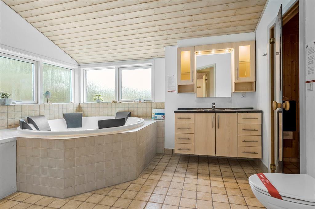 I huset, der måler 134 m² og er opført i 2006, kommer du til at bo godt og komfortabelt. Tre soveværelser er udstyret med dobbeltseng, og på det fjerde står der to enkeltsenge. To badeværelser ligger side om side, og her skal især det største bemærkes, for det byder nemlig på en sauna og et lækkert spabad. I det åbne køkken har du alt, hvad du skal bruge for at lave god mad, mens stuen er perfekt udformet til hyggestunderne omkring spisebordet eller i sofaafdelingen. En brændeovn står midt i rummet, og de store vinduespartier sørger for et dejligt lysindfald og udsigt til naturgrunden.