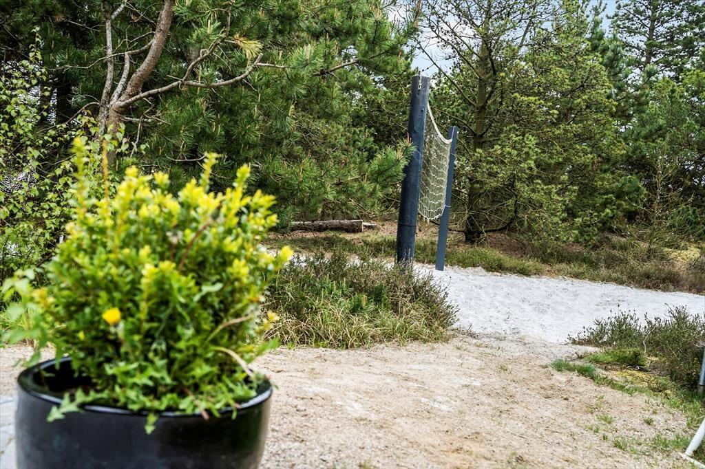 Sommerhuset ligger pænt indrammet af træer og anden bevoksning på den 2510 m² store naturgrund. Det giver dig ikke bare noget kønt at kigge på, men sørger også for, at du kan opholde dig på ugeneret vis, når du soler dig på terrassen og griller om aftenen. Til børnene er der sandkasse og trampolin, og beachvolleybanen kan tages i brug af både store og små.