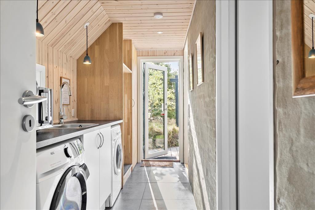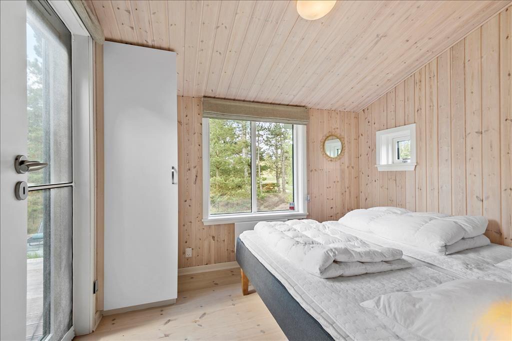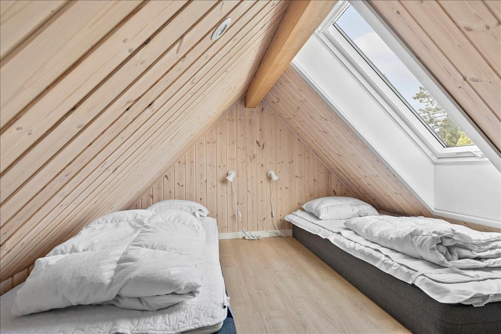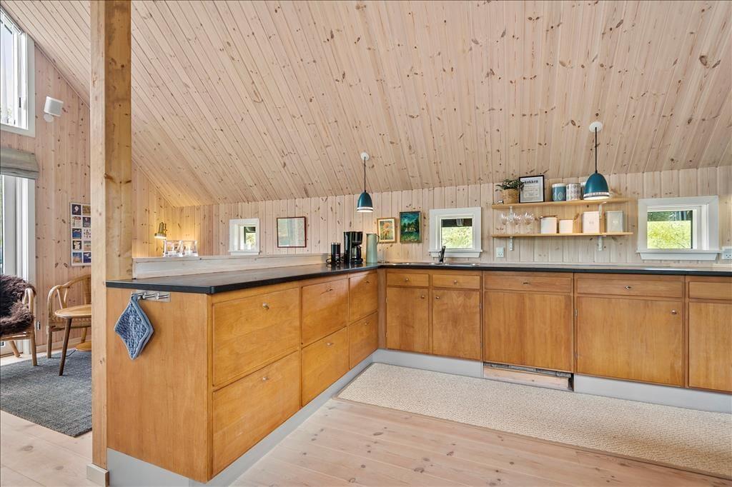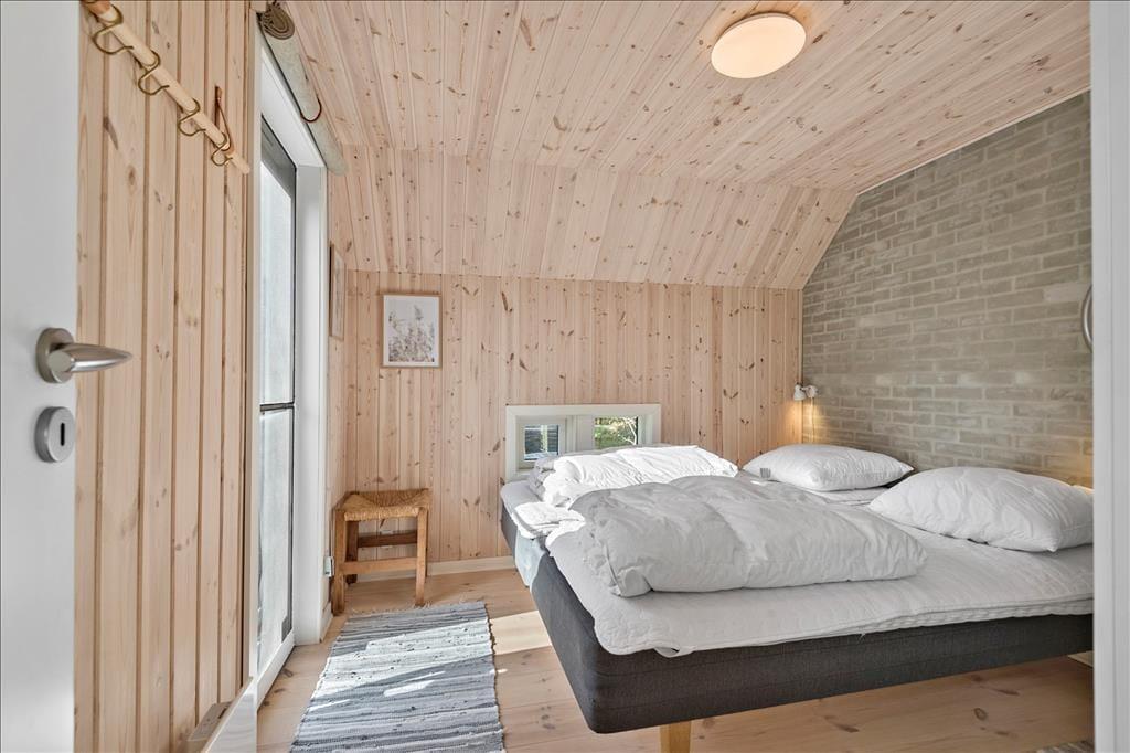 Det 59 m² store sommerhus er blevet renoveret i 2020 efter alle kunstens regler. Rummene er hyggeligt indrettede og fulde af atmosfære, og samtidig fremstår indretningen lys og moderne, så huset kan passende beskrives som en nyfortolkning af et klassisk sommerhus. Stue og køkken er forenet i et dejligt opholdsrum, der blandt andet byder på varmepumpe og TV med Chromecast, og de store vinduer sørger for et godt lysindfald og udsigt til naturgrunden. Er det ved at være sengetid, kan du se frem til en god nats søvn på de to soveværelser, som i 2025 er blevet opgraderet med nye dobbelt kontinentalsenge samt mørklægningsgardiner. Derudover er der en hems med to madrasser. Planløsningen byder desuden på et flot badeværelse og en velindrettet entré med vaskemaskine og tørretumbler.