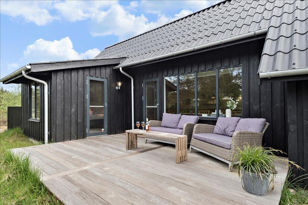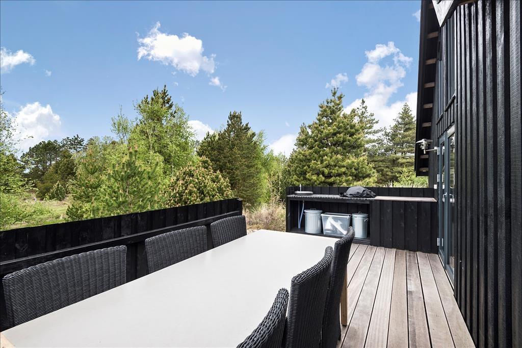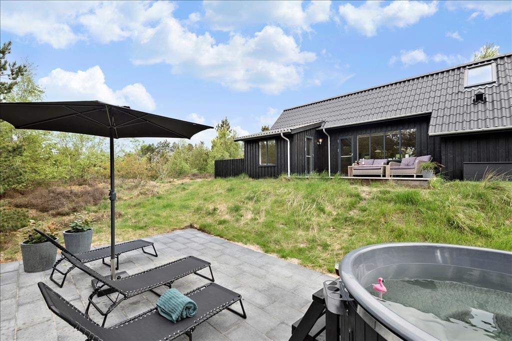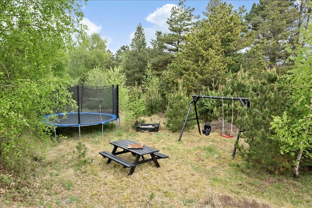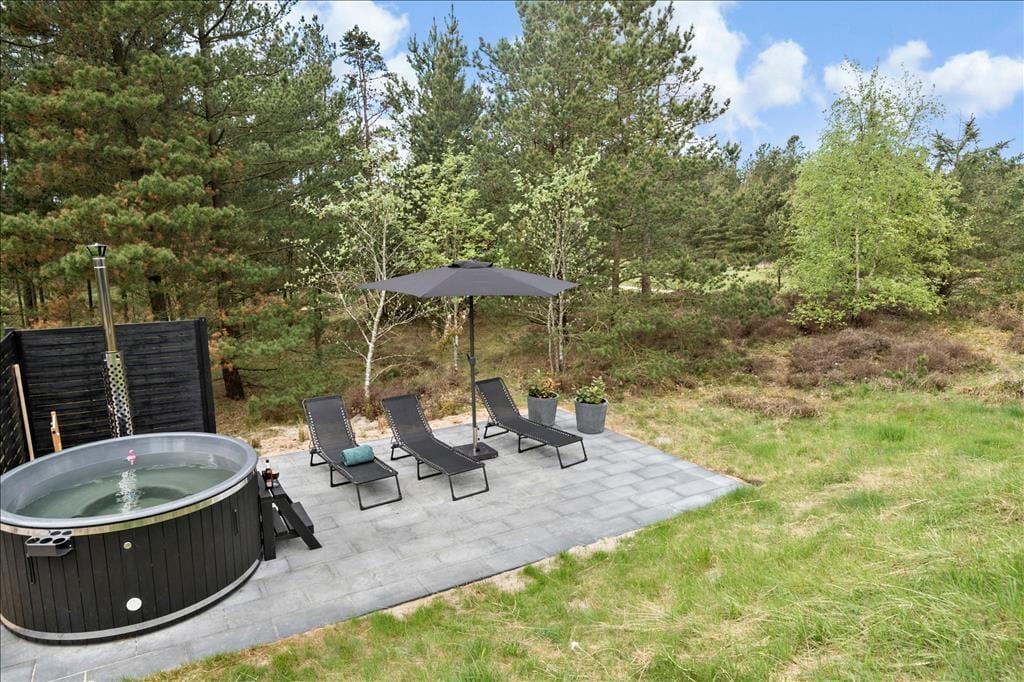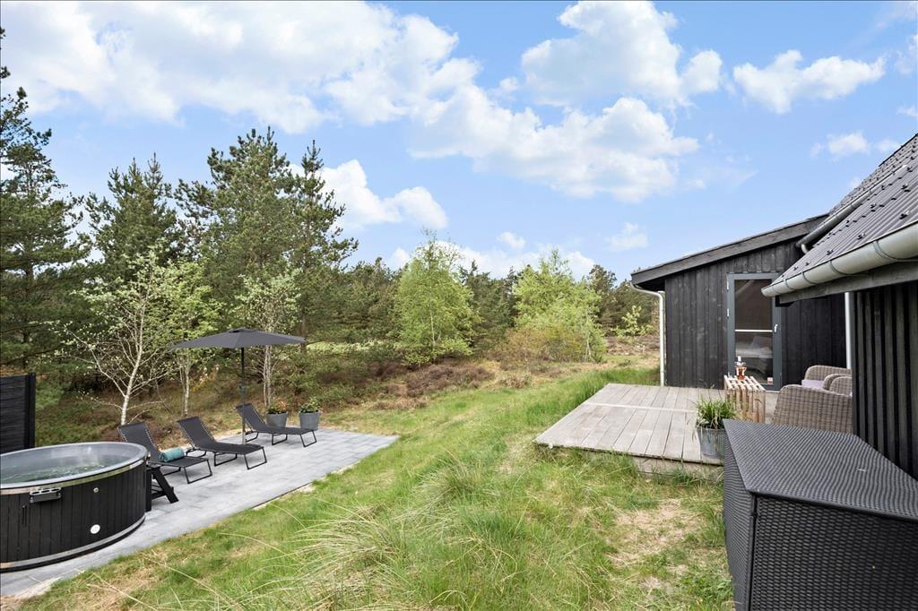 Selvom det er skønt at opholde sig inden døre i sommerhuset, kan du godt glæde dig til, at solen står højt over Rømø. For så er det nemlig tid til at slappe af på sommerhusets flotte terrasser – eller at boltre sig på den 2.549 m² store naturgrund, hvor du blandt andet finder en trampolin og et gyngestativ mellem træerne. Og som afslutning på en dejlig feriedag er det intet mindre end herligt at sætte sig godt til rette i vildmarksbadet under stjernehimlen i de skønne og fredelige naturomgivelser.