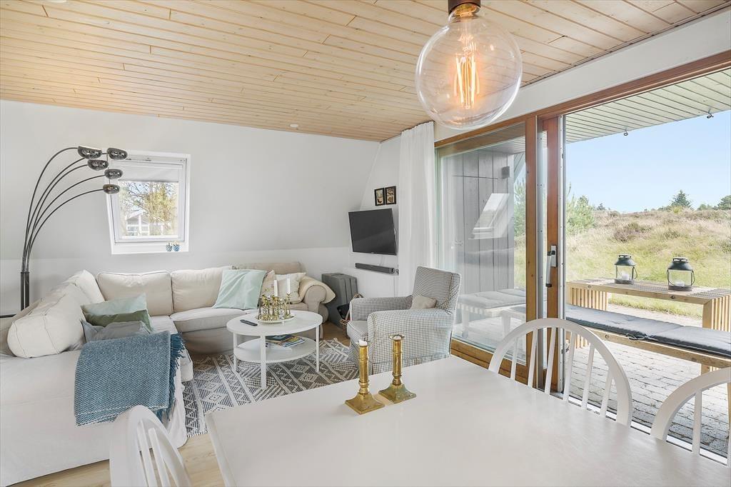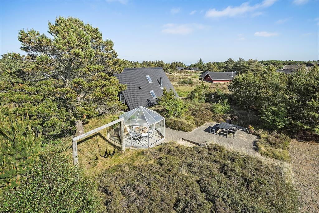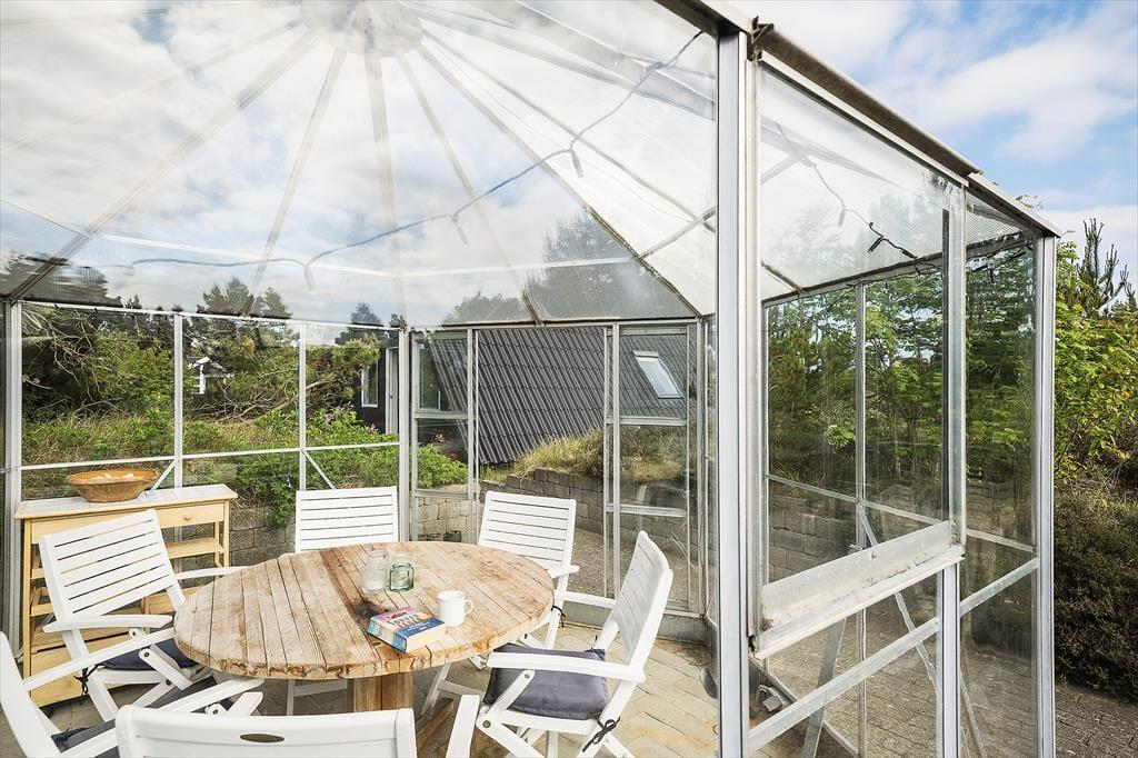 Når sommersolen lokker jer udenfor, kan I slå jer ned på den delvist overdækkede, sydvendte terrasse, der ligger i forlængelse af sommerhuset. Vest for huset er der også anlagt et dejligt terrasseområde, og der er desuden en pavillon, som er en skøn opholdsplads på solbeskinnede forårsdage og lyse sommeraftner. Uanset hvor I sidder, kan I nyde de skønne naturomgivelser, for fra naturgrunden kan I skue langt ud over det smukke marklandskab. På grunden er der både sandkasse og gynger til rådighed.