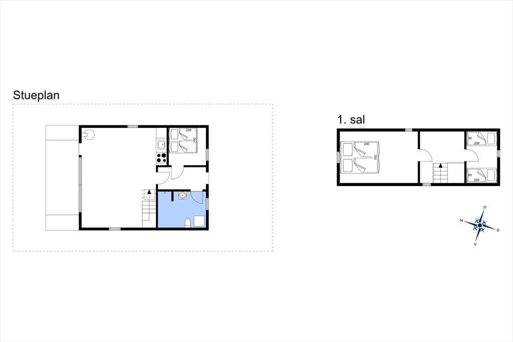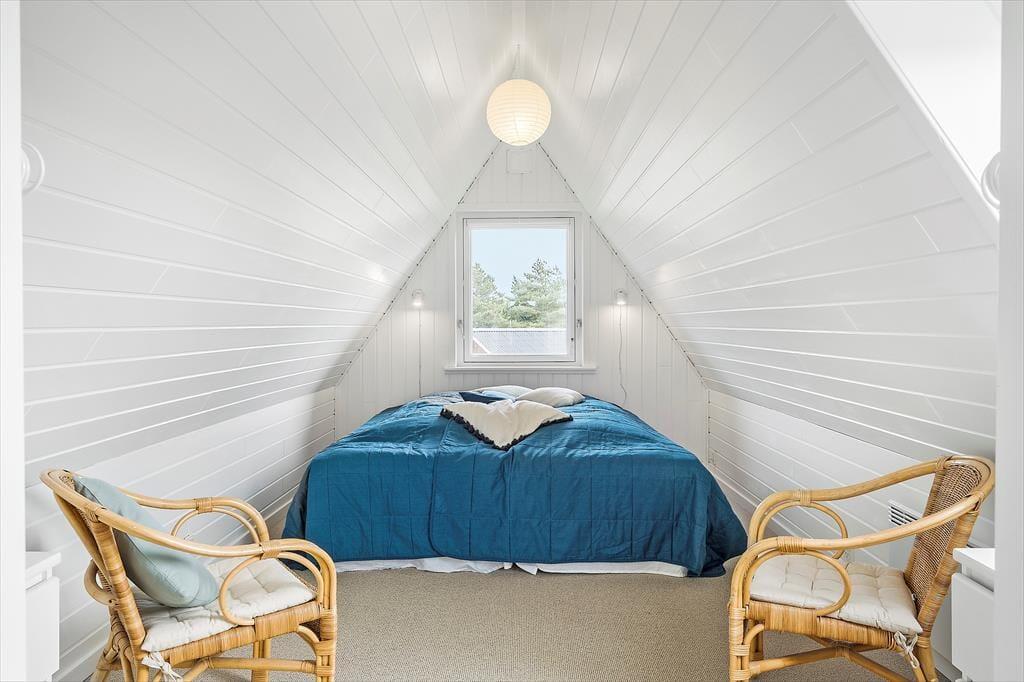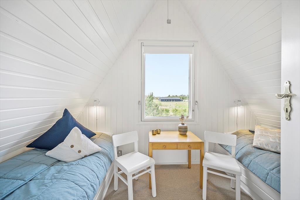 2 værelser med to enkeltsenge på 1. sal. Venligst bemærk, at enkeltsengen i det ene soveværelse kun er 1,85 meter lang.