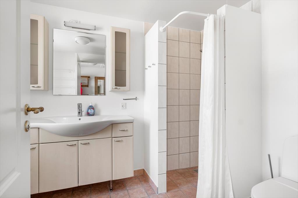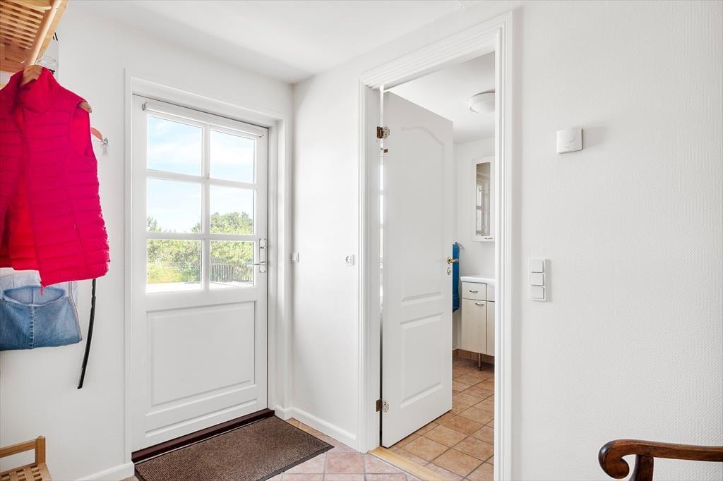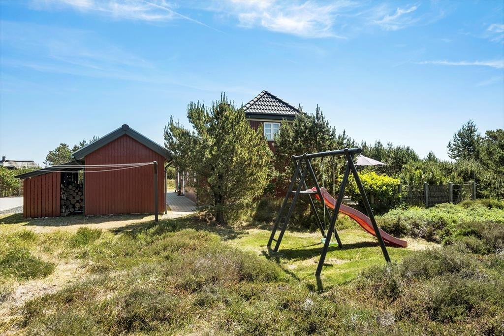 Der er direkte udgang fra stuen og køkkenet, så på lune dage kan du invitere den friske sommerluft indenfor – eller selv smutte ud under åben himmel. På det flisebelagte terrasseareal kan du vælge imellem flere gode opholdspladser, hvis du vil slappe af eller grille, og på den grønne naturgrund finder du desuden et legestativ med gynge, en sandkasse og sågar en petanquebane.