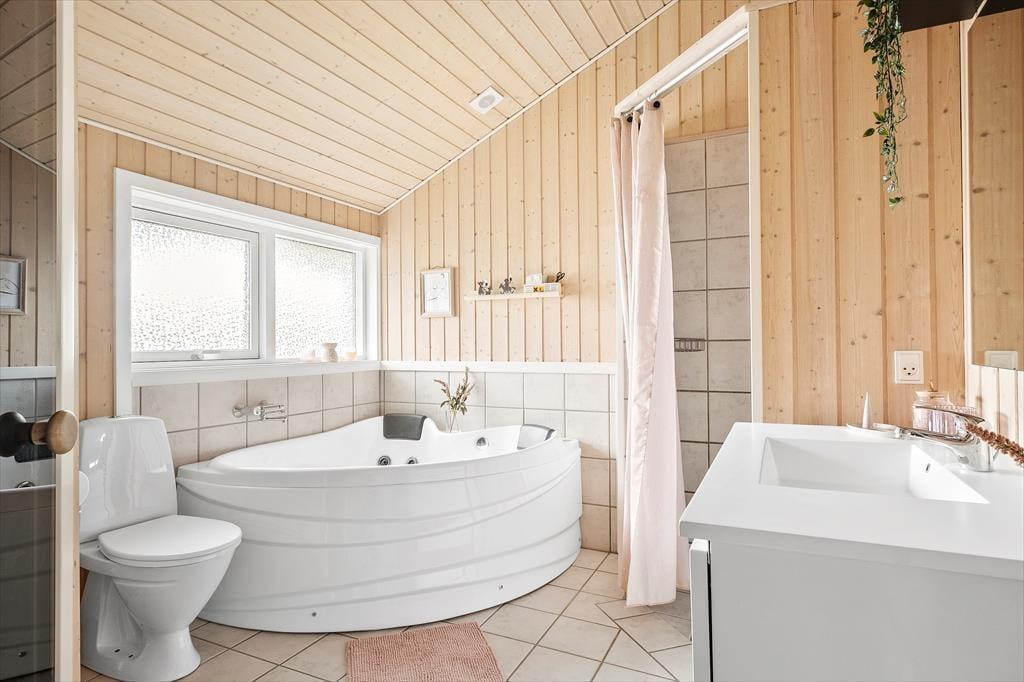 I kan brede jer på hele 96 lyse og indbydende kvadratmeter, når I tilbringer feriedagene i dette moderne indrettede sommerhus. Inden døre hører spabadet, saunaen og brændeovnen med til de hyggeskabende elementer, og ude er der god plads til at slappe af og nyde livet på den store, solrige terrasse.