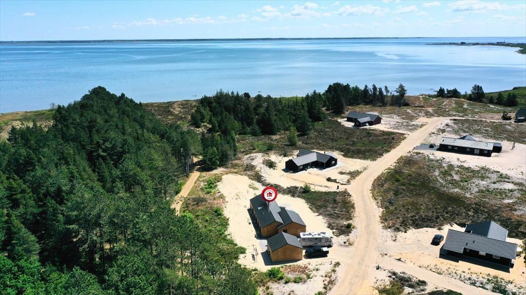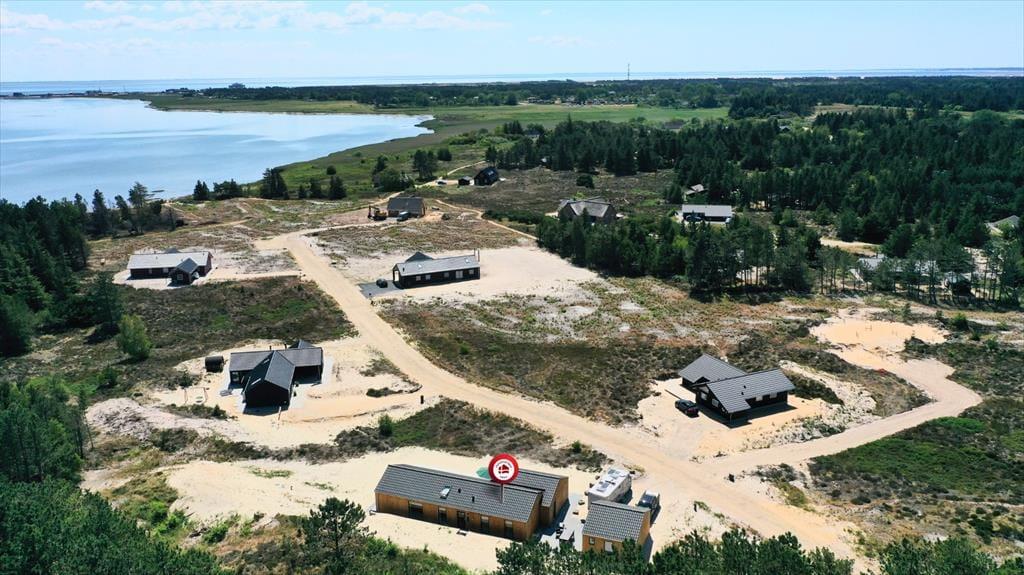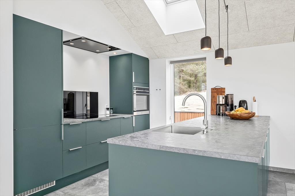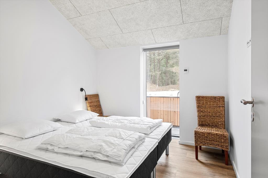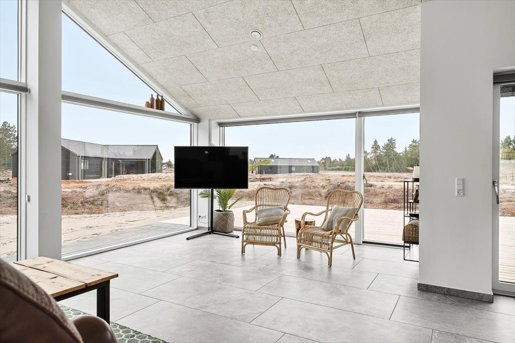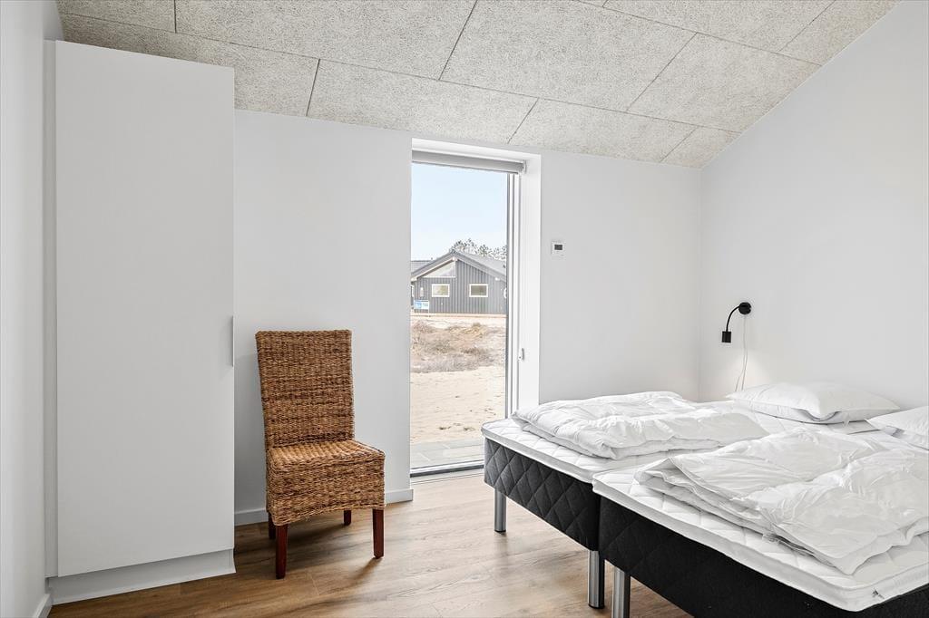 Sidste hånd blev lagt på indretningen i foråret 2023, og her blev der gjort brug af lækre materialer og moderne design, der passer smukt ind i de lyse og luftige rum. Akustiklofterne går helt til kip, og flotte, brede fliser pryder gulvene, mens store vinduespartier byder sollyset velkommen og giver udsigt til grundens fyrretræer. I stuen kan I streame film og serier på fladskærms-tv’et, hvis I trænger til at slappe af, og spisepladsen er et skønt samlingspunkt, når maden står klar i det åbne køkken. Efter måltidet kan I eventuelt rykke over i annekset, der er udstyret med blandt andet bordfodbold og airhockey. Annekset er også indrettet med en sovesofa og et gæstetoilet, så det fungerer som et godt supplement til sommerhusets stilfulde badeværelse og de tre dobbeltværelser.