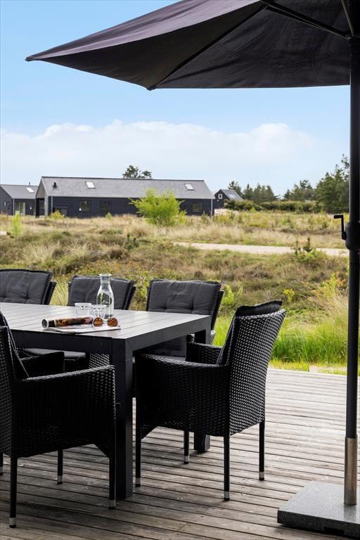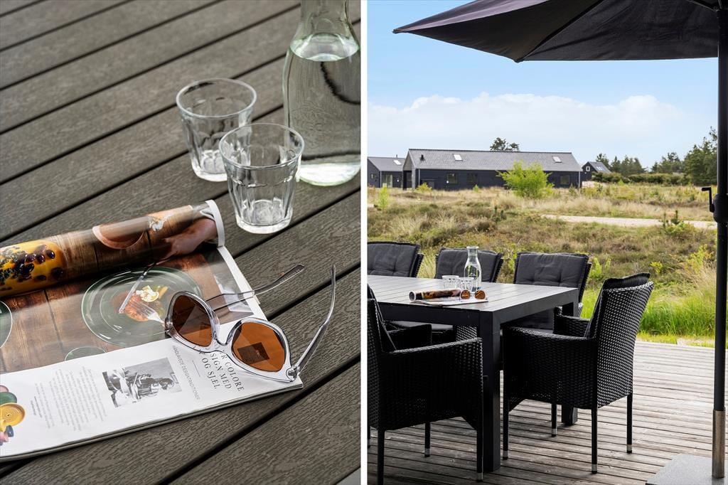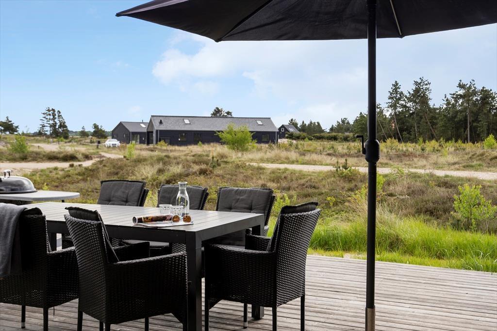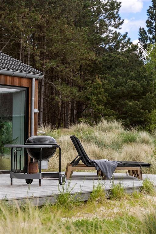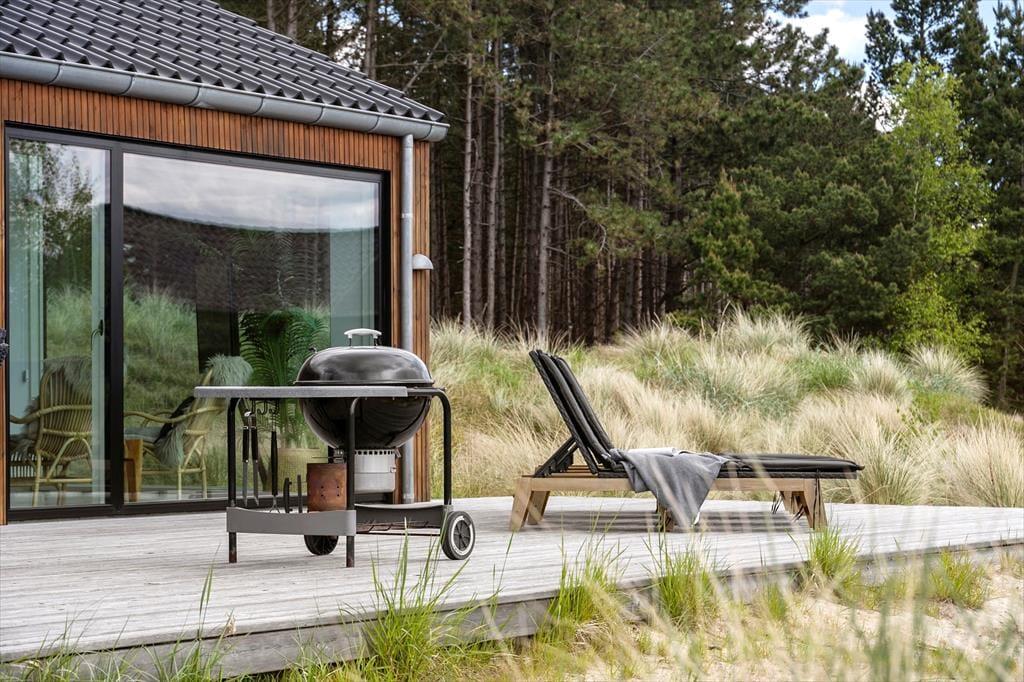 Sommerhusets helårsisolering er ikke den eneste grund til, at det egner sig til ferie udenfor højsæsonen, for på terrassen står der et sekspersoners spabad, der gør det muligt at nyde udelivet selv på en kølig dag. Om sommeren føles det som ren velvære at slænge sig i havemøblerne på de store terrasseområder, og når solen går ned, kan I rykke ind under overdækningen for at tilbringe aftenen der. Opladning af elbil er tilladt, og foran huset er der god plads til at parkere.