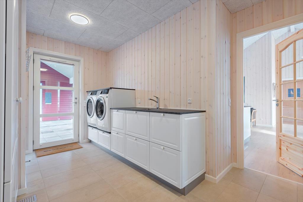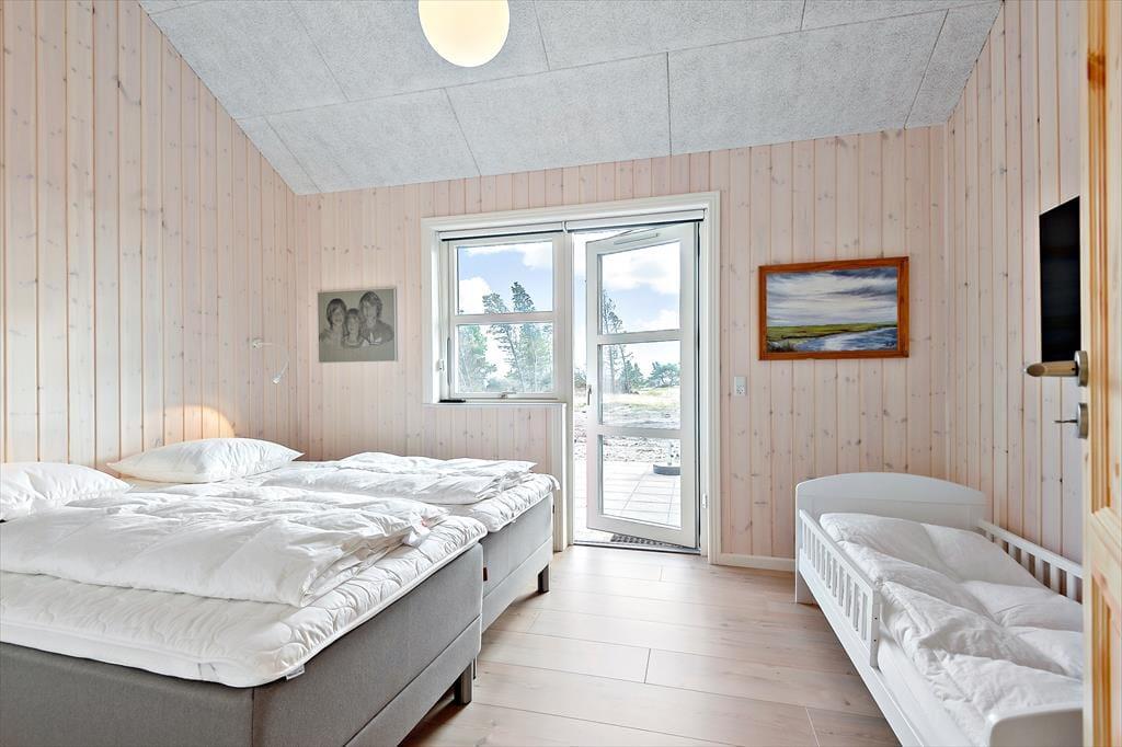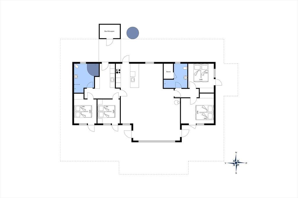 Fra stuen og alle soveværelserne har I direkte adgang til det 220 m2 store terrassemiljø, der breder sig rundt om sommerhuset. En del er overdækket, mens andre terrasseområder er åbne, så der er stor chance for, at I finder den helt perfekte opholdsplads uanset tidspunktet på dagen. Er I lige kommet hjem fra en stranddag på Lakolk Strand, kan I skylle jer under udendørsbruseren – og den kan naturligvis også bruges lige fra morgenstunden, hvis I foretrækker at tage dagens brusebad med udsigt til lyng og fuglesang fra trætoppene.