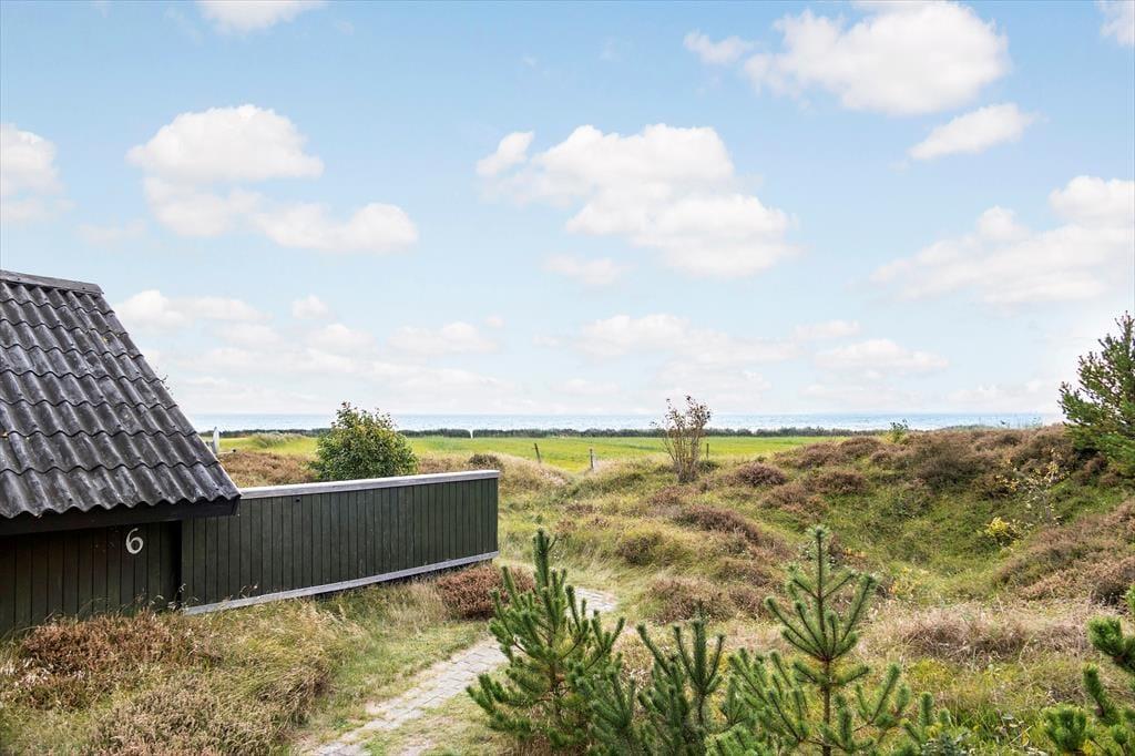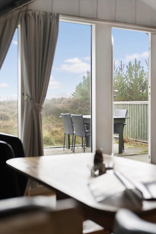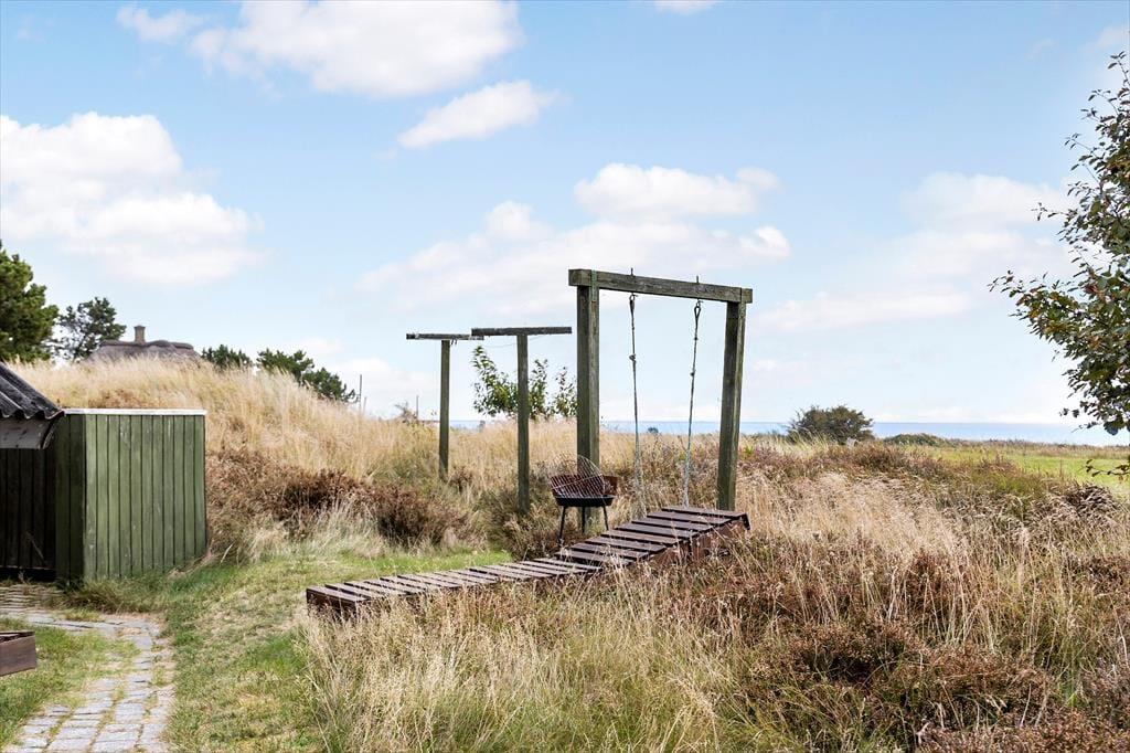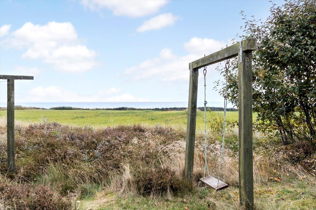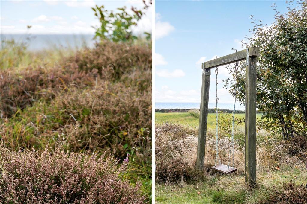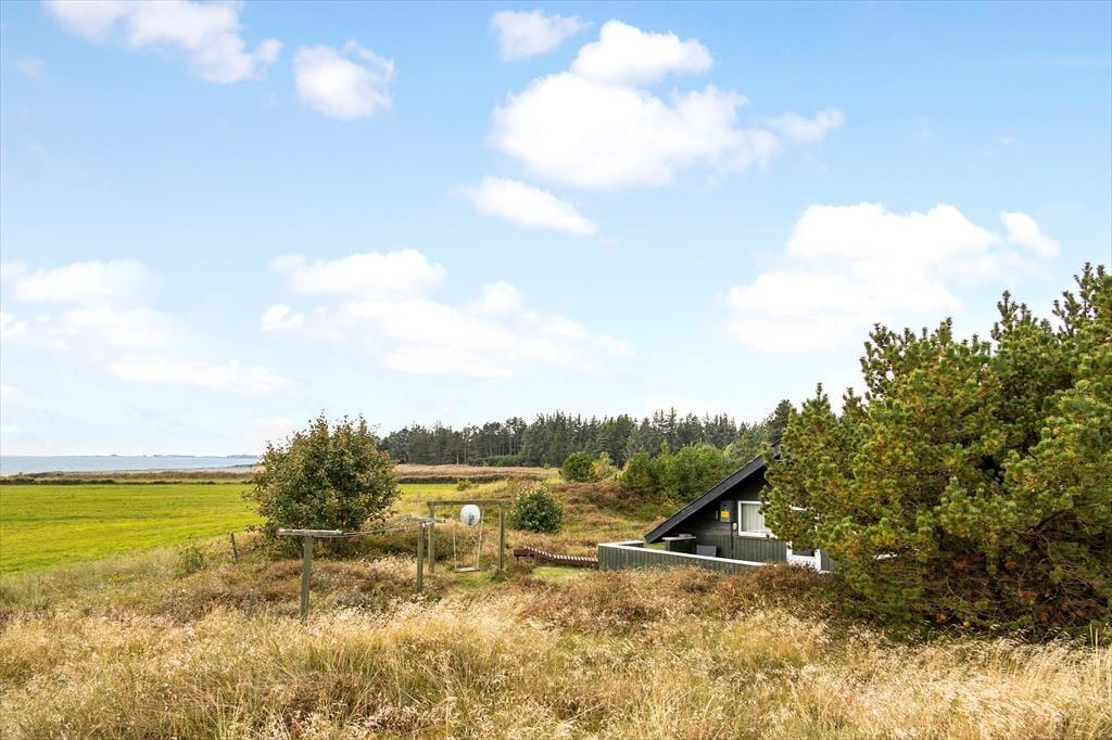 Sommerhuset ligger på en åben naturgrund, hvor du kan mærke vinden lege i håret, høre fuglene kvidre, og lade børnene løbe frit omkring. Den store terrasse indbyder til både solbadning og afslappede stunder i skyggen, mens panoramaudsigten over Vadehavet gør hver eneste dag til et lille eventyr. Her kan du sidde med en bog, mærke græssets og lyngens duft eller bare lytte til naturens lyde, mens solen langsomt vandrer over horisonten. Uanset om det er morgenens første lys, middagssolen eller aftenens stille skumring, giver udearealerne en følelse af frihed og nærvær med naturen.