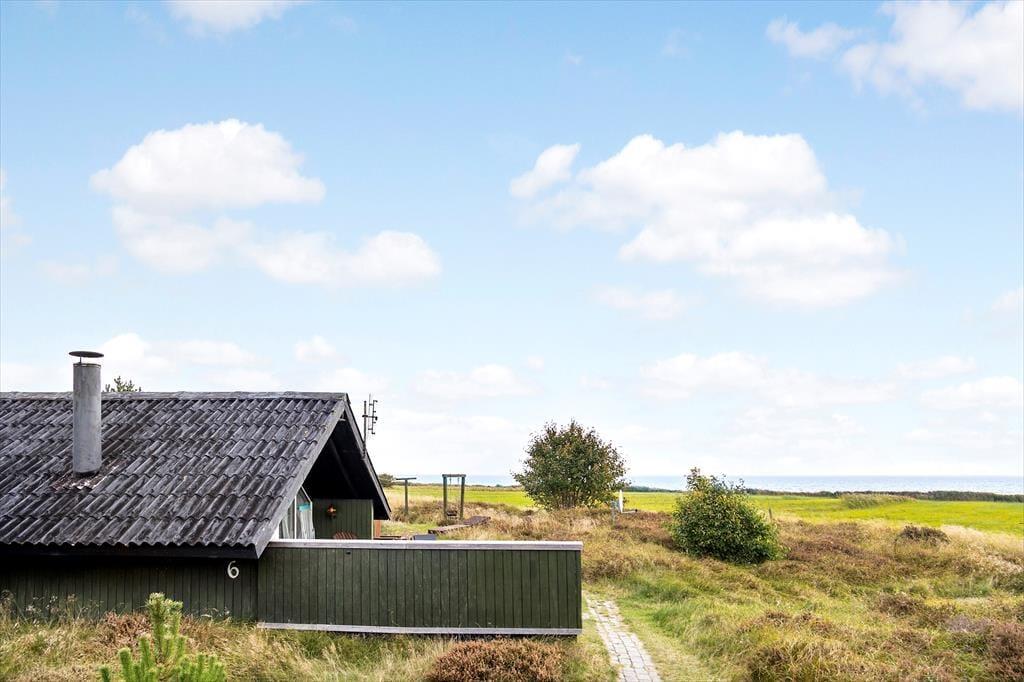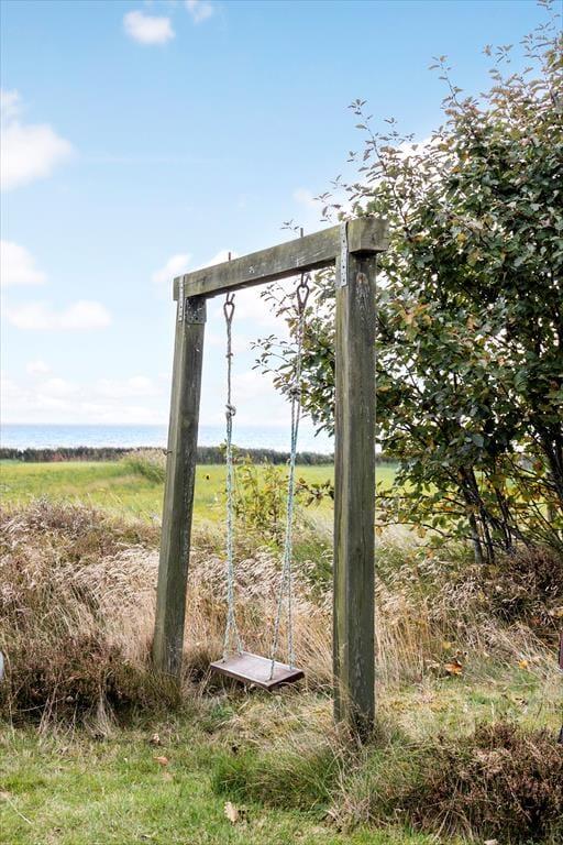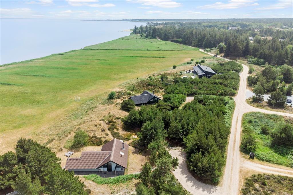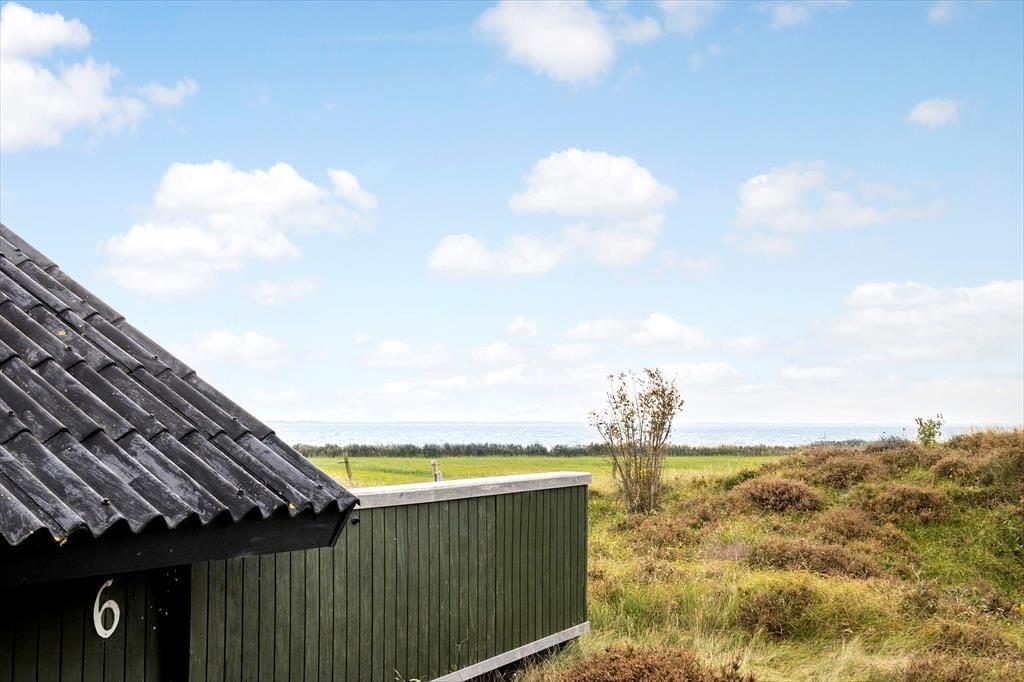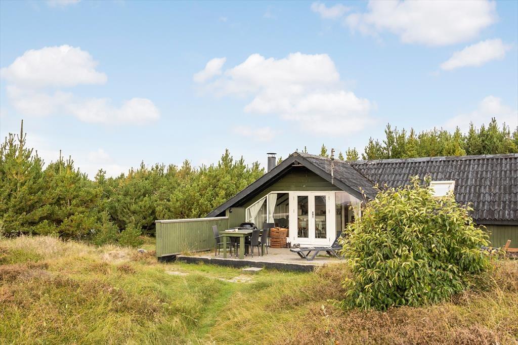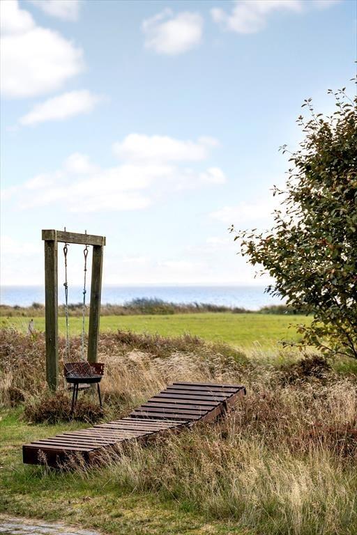 Sommerhuset ligger på en åben naturgrund, hvor du kan mærke vinden lege i håret, høre fuglene kvidre, og lade børnene løbe frit omkring. Den store terrasse indbyder til både solbadning og afslappede stunder i skyggen, mens panoramaudsigten over Vadehavet gør hver eneste dag til et lille eventyr. Her kan du sidde med en bog, mærke græssets og lyngens duft eller bare lytte til naturens lyde, mens solen langsomt vandrer over horisonten. Uanset om det er morgenens første lys, middagssolen eller aftenens stille skumring, giver udearealerne en følelse af frihed og nærvær med naturen.