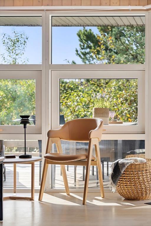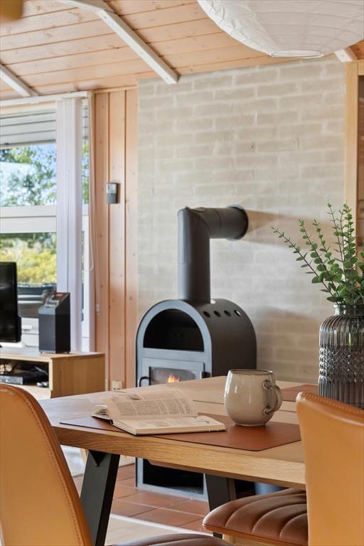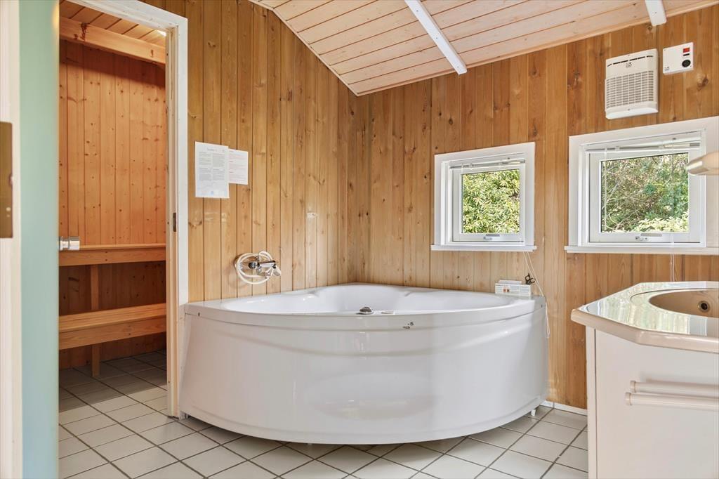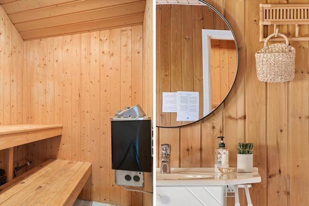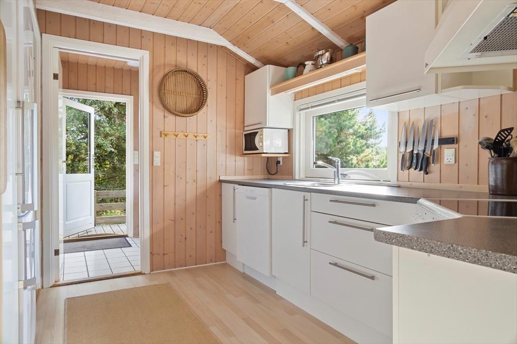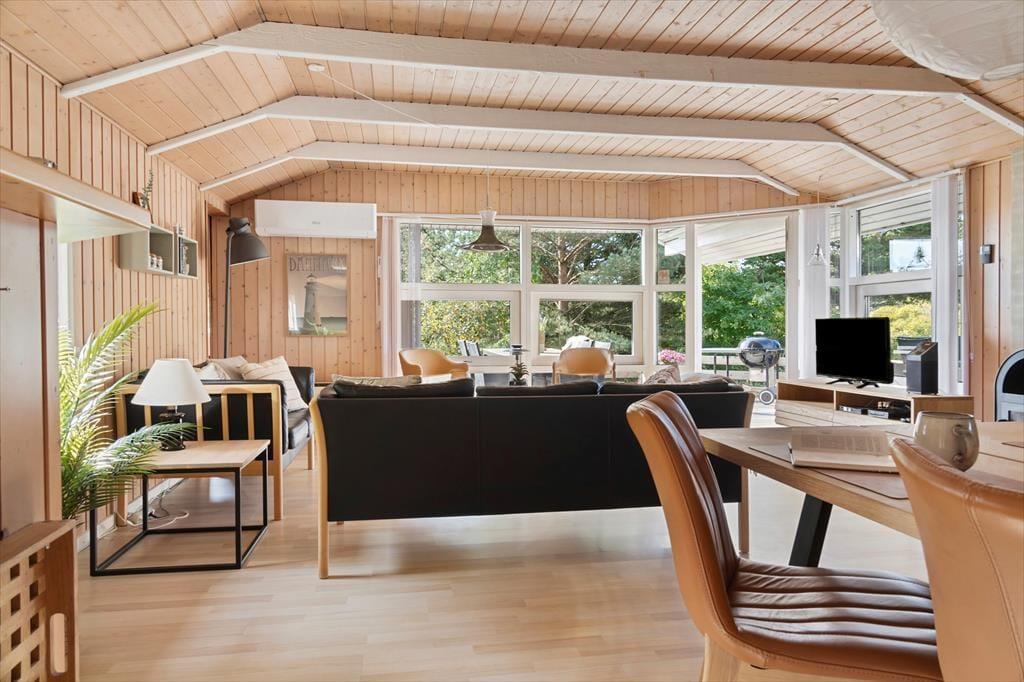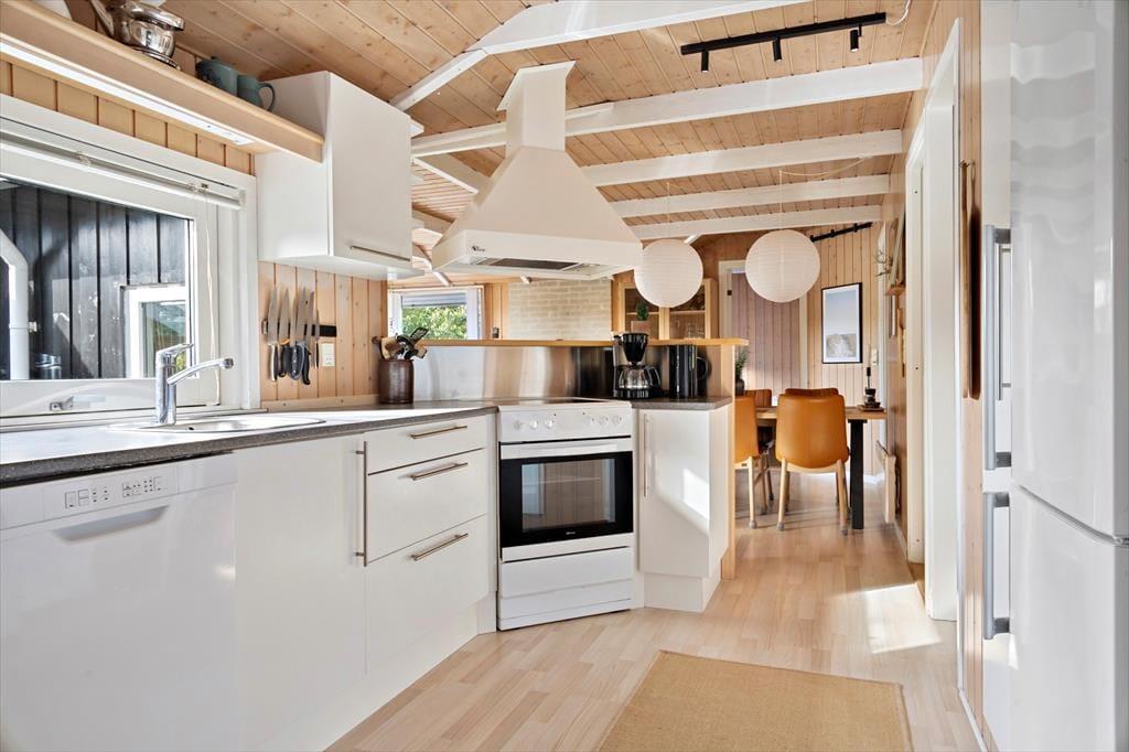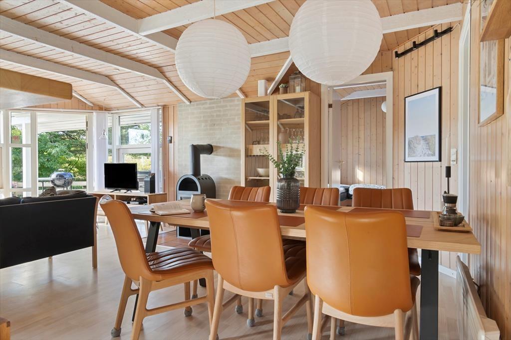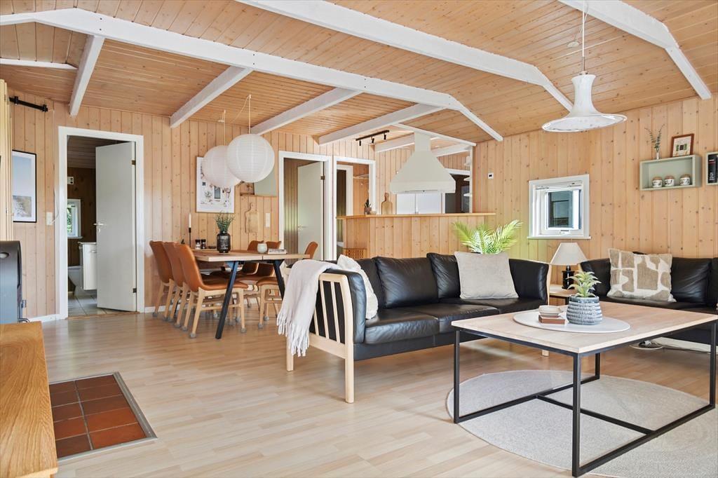 Sommerhuset byder på en lys og indbydende atmosfære, hvor de hvide synlige loftsbjælker giver rummene et særligt udtryk og tilfører en helt unik charme. Indretningen er tiltalende og bærer tydeligt præg af personlighed, hvilket gør, at du hurtigt føler dig hjemme. Stuens indretning formidler en varm og hyggelig stemning, hvor du kan nyde familiens samvær, mens brændeovnen spreder sin knitren på kølige aftener. Planløsningen indeholder også to badeværelser, hvoraf det ene har både spabad og sauna – den perfekte afslapning, når du vil lade op efter en frisk strandtur eller en dag med naturoplevelser på øen.