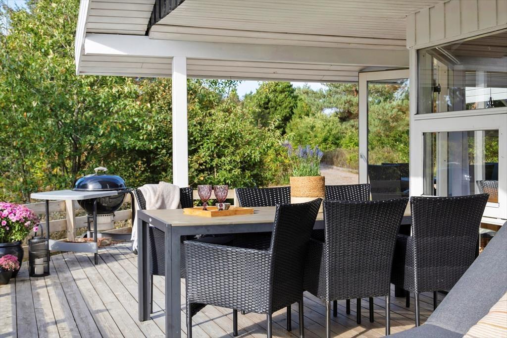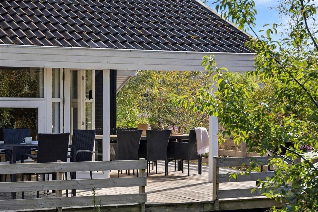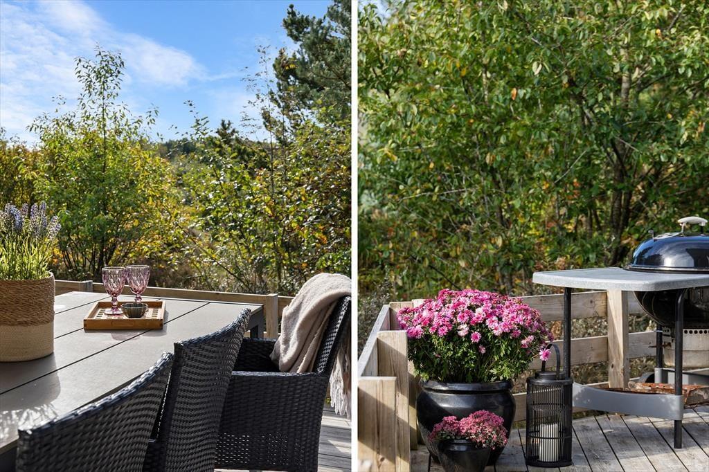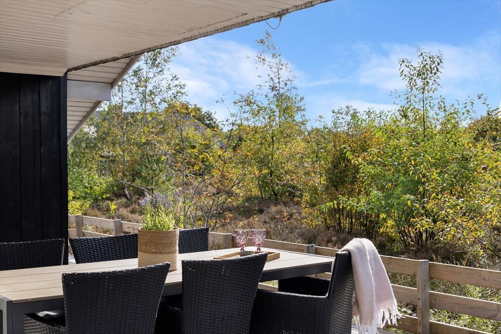 Haven er omgivet af tæt bevoksning, så du kan nyde følelsen af ugenert fred og ro, mens du sidder på terrassen og hører fuglene synge i trætoppene. Terrassen er stor og delvist overdækket, så du altid kan finde en god plads, hvad enten du søger solens varme eller en skyggefuld krog. Rundt om huset er der desuden små hyggelige siddepladser, som inviterer til en stille stund med en kop kaffe, en god bog eller bare lyden af vinden i træerne.