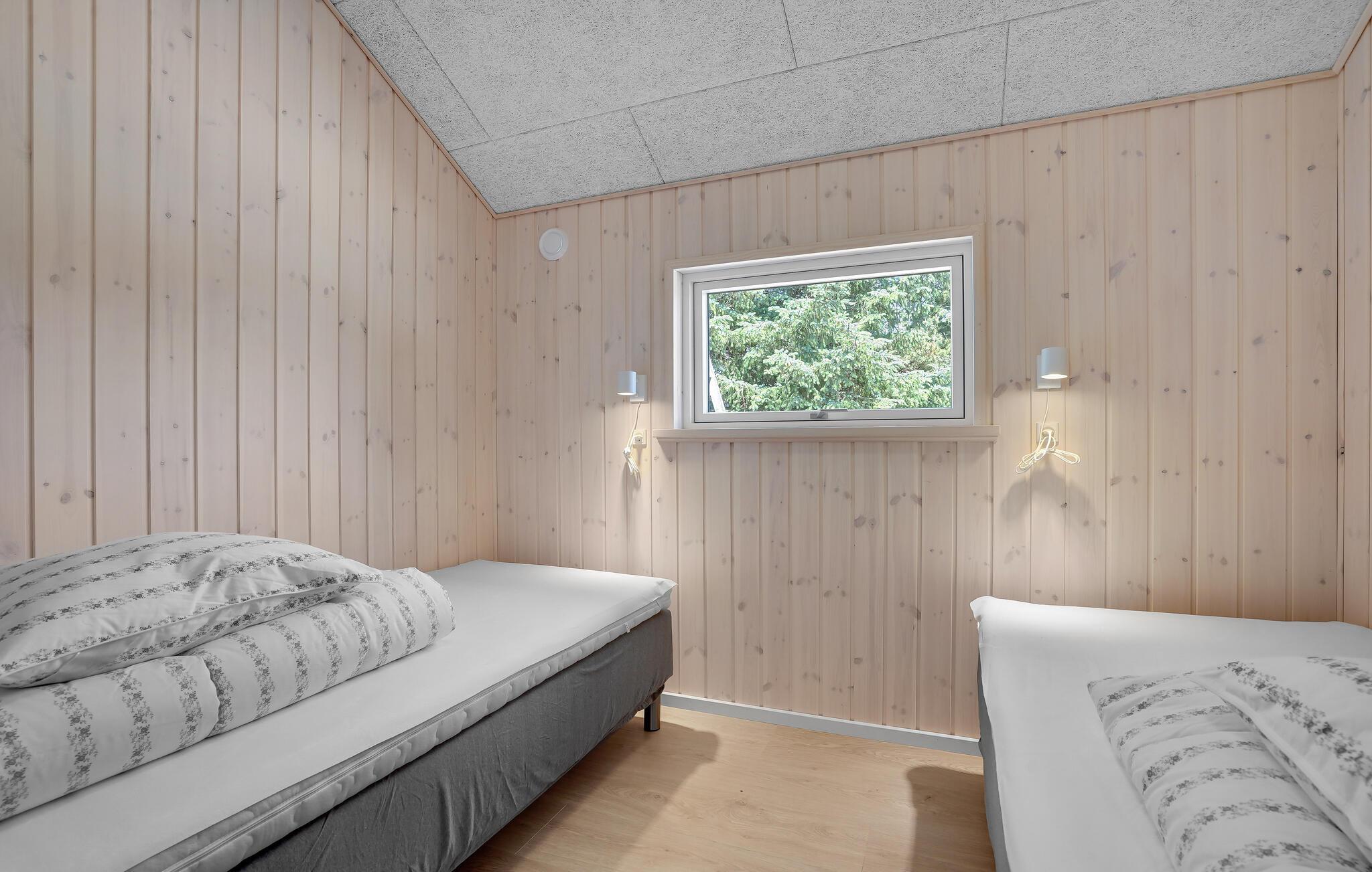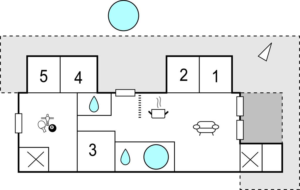 Huset er rummeligt og godt indrettet med 5 gode værelser samt 2 badeværelser, hvorfra det ene er udstyret med et dejligt stort spabad. Fra stuen er der direkte adgang til husets overdækket terrasse samt husets sydvendte terrasse, hvor det hyggelige vildmarksbad er placeret. Husets aktivitetsrum byder på mange timers underholdning. Dette sommerhus vil være rammen om den perfekte ferie året rundt.