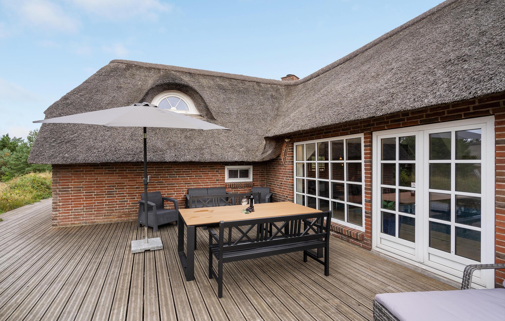 Stort lækkert sommerhus med swimmingpool og skønne ugenerte terrasser med gedigne havemøbler samt en stor parasol. Huset ligger på en stor kuperet grund i Kromose kun 400 m fra Vadehavet. Husets absolutte perle er det store poolområde med god plads, poolen med modstrømsanlæg og det store nedsænkede 5 personers spabad, der står således, at I kan kigge ud på den smukke natur eller mod poolen, hvor den øvrige del af familien boltrer sig. Fra stuen er det ligeledes muligt at følge aktiviteterne i poolområdet. Huset er veludstyret og har mange tv-kanaler, så der skulle være underholdning nok for alle aldre. Husets sovepladser fordeler sig på 4 gode soveværelser med dobbeltsenge, og via trappen til førstesalen kommer I til yderligere to sovepladser, hvor børn og unge kan hygge sig ugeneret. Der er rengøringsvenlige klinkegulve overalt i huset, og der er installeret en energibesparende varmepumpe i forbindelse med en gennemgående renovering af huset.