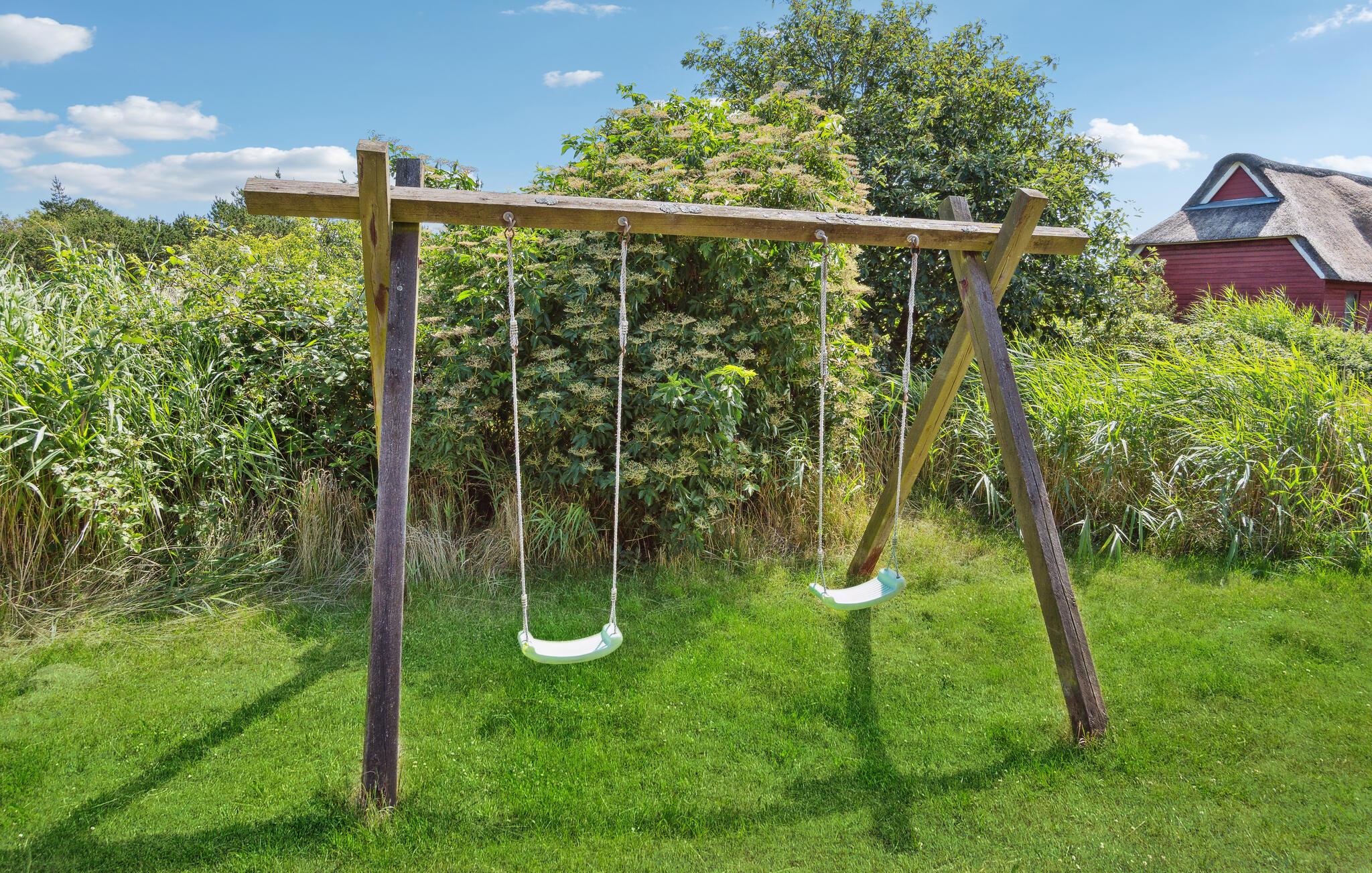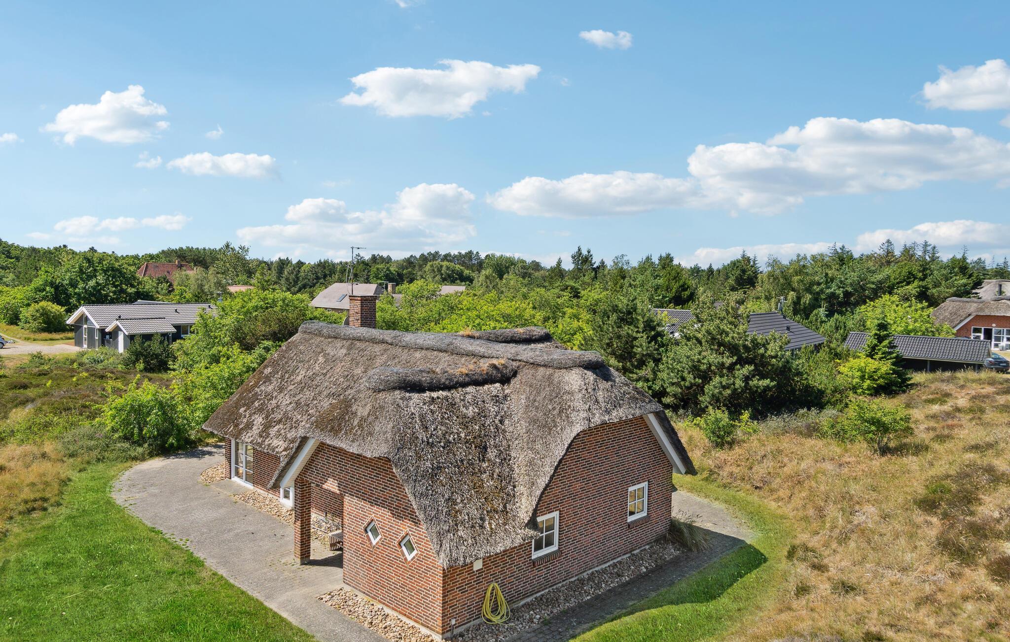 Hyggeligt stråtækt feriehus på Rømø med sauna, boblebad og stor naturgrund tæt på Vadehavet.