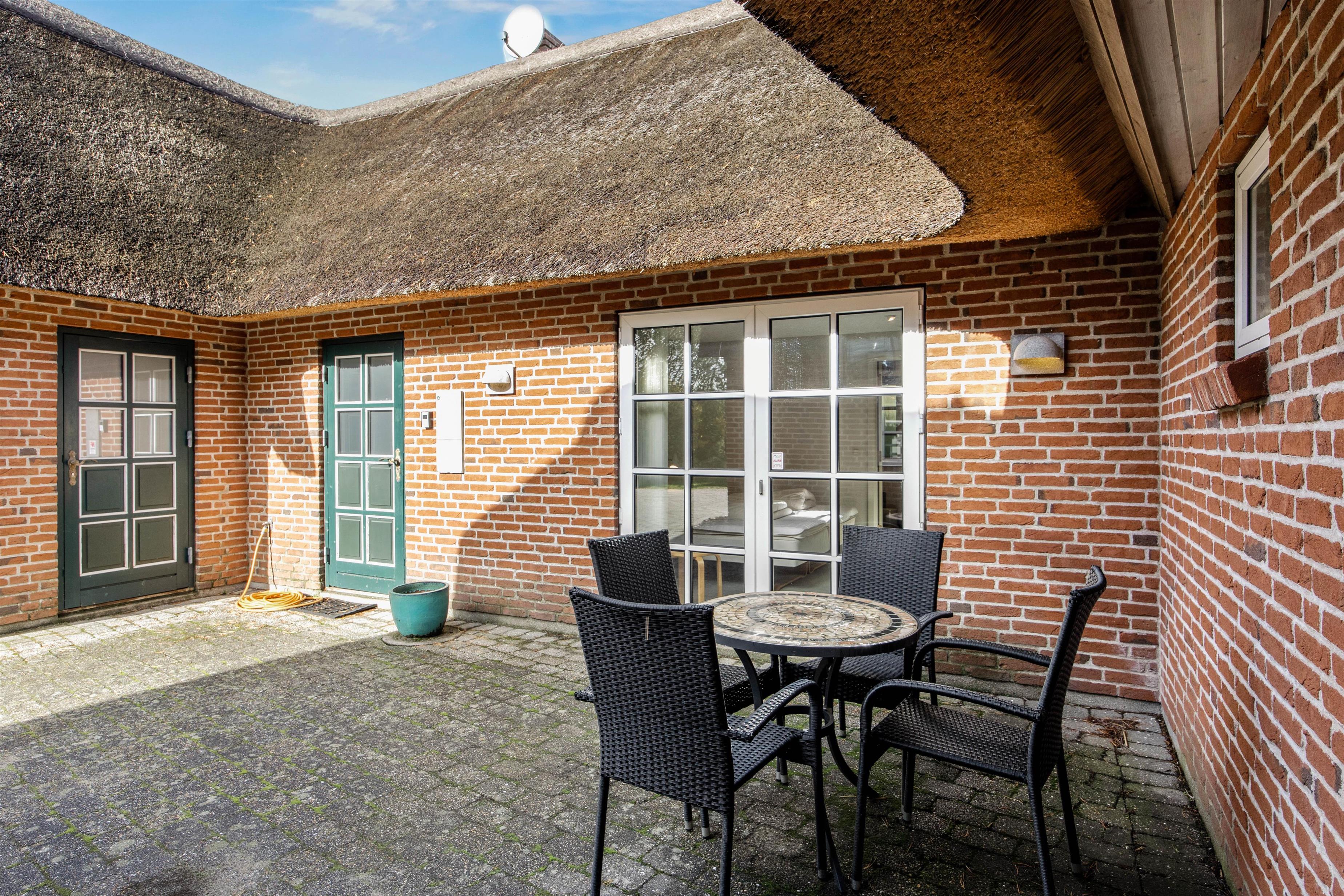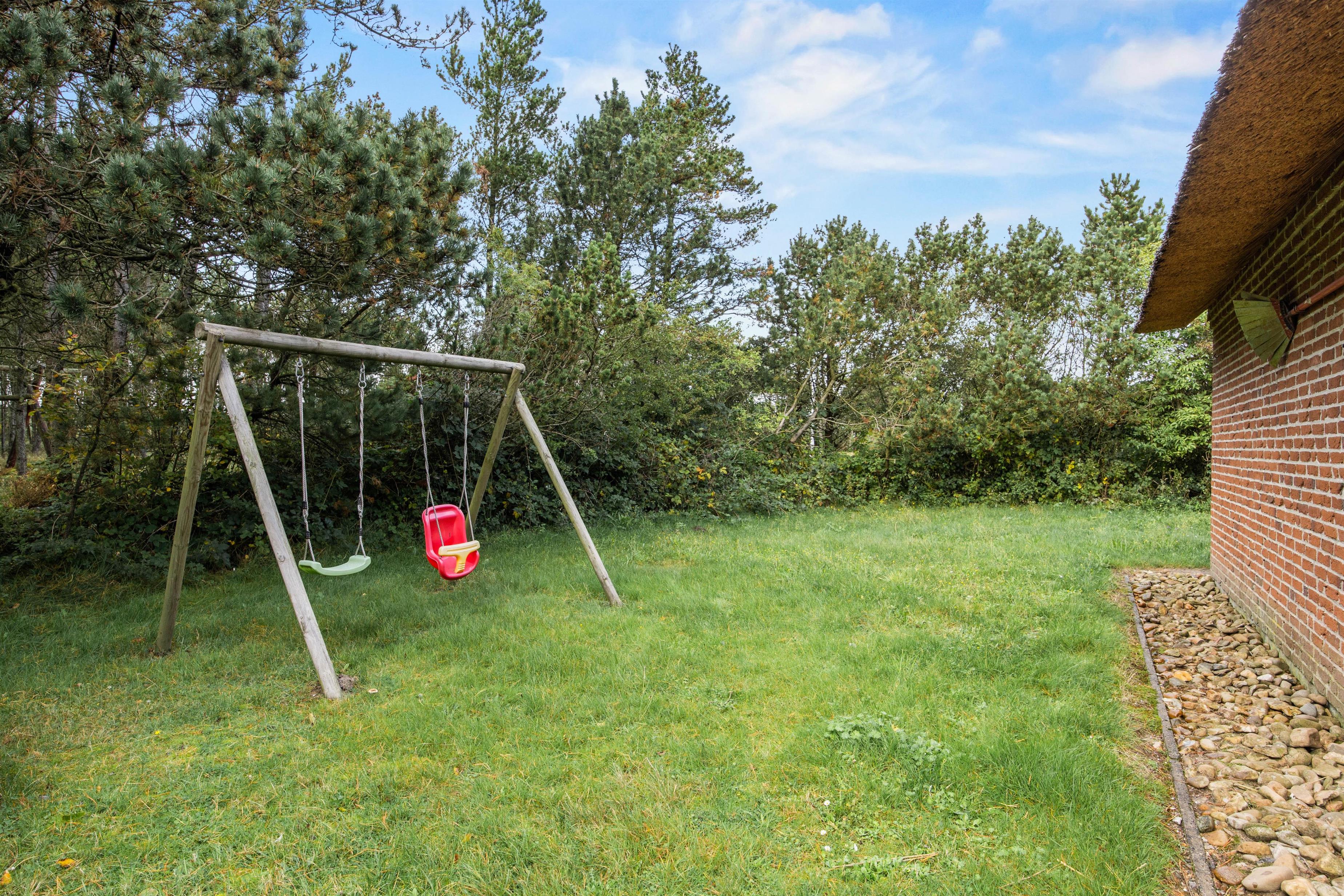 På den åbne terrasse kan I nyde solen og den friske havluft, imens havemøblerne og liggestolene bare venter på at blive brugt. Naturgrunden har sandkasse og gynger til de små gæster. Tænd op i grillen til aften og nyd et lækkert grillmåltid sammen, imens skyggerne bliver lange.