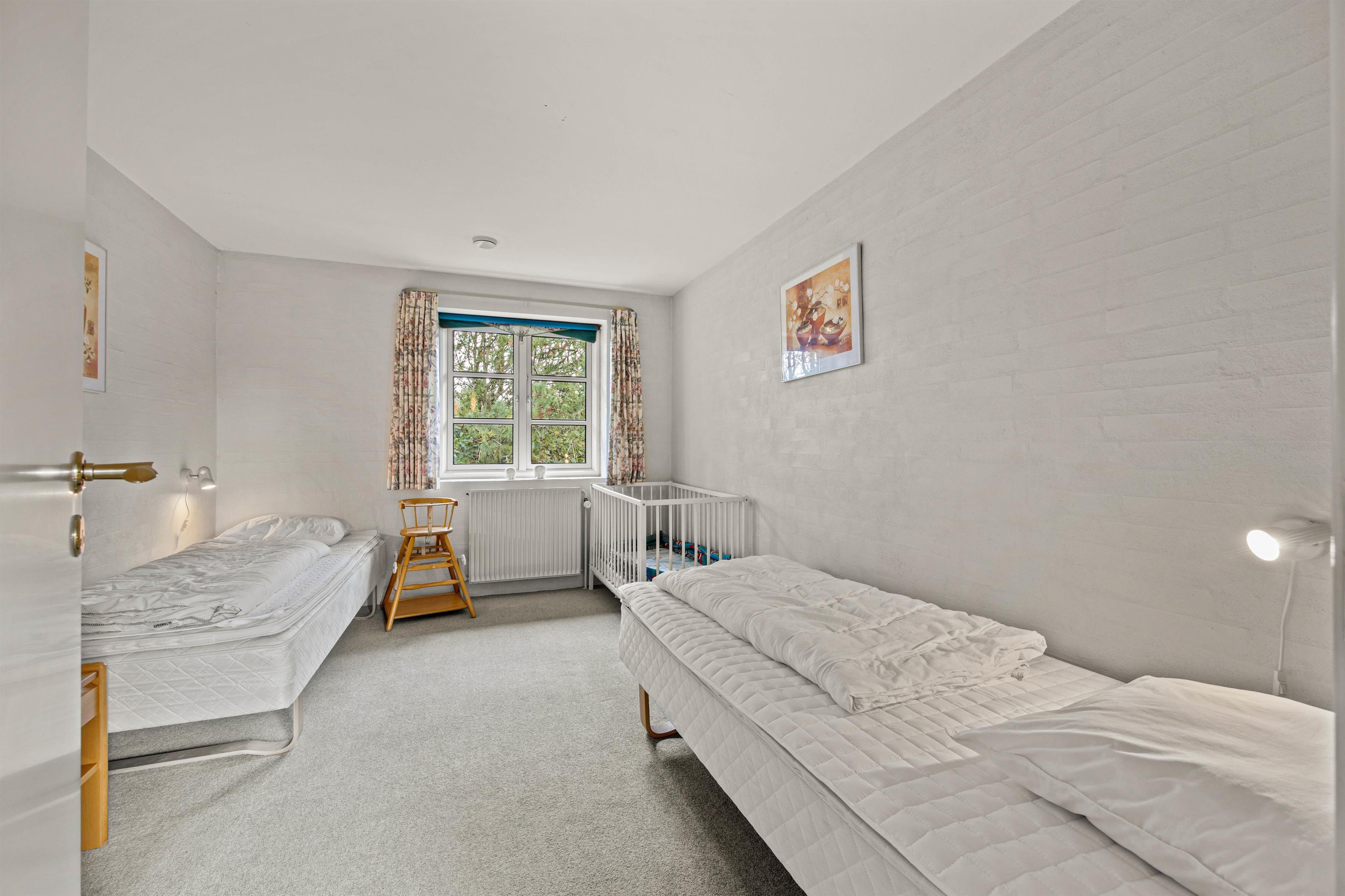 For ekstra komfort er der to velholdte badeværelser, og i forbindelse med det store badeværelse et spabad, hvor I kan nyde lidt wellness, især på kølige dage efter en gåtur på stranden. Et separat vaskerum med vaskemaskine, tørretumbler og masser af opbevaringsplads er til rådighed for jer, så I kan opfriske håndklæderne undervejs. Der er 4 soveværelser, tre med dobbeltsenge og et med 2 enkeltsenge og en barneseng, så I kan arrangere jer, som det passer jer bedst. Alle soveværelserne har gulvtæppe, og de komfortable senge sikrer en god nats søvn. Bemærk, at den friske havluft gør noget godt for nattesøvnen.