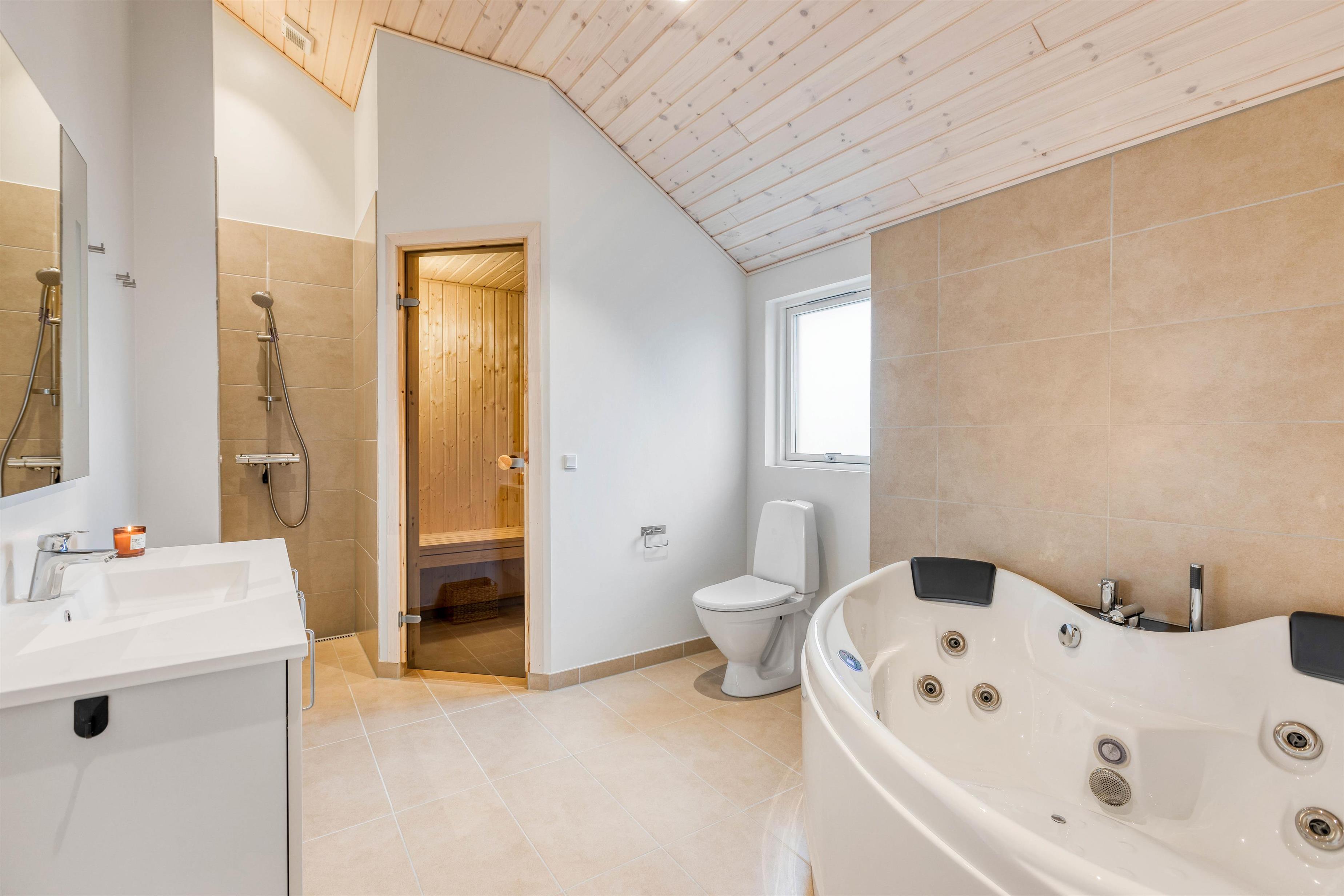 Ingen lang kø om morgenen til badeværelset, for dem er der 2 af i sommerhuset, og trænger I til ekstra afslapning om aftenen, kan I benytte sommerhusets egen sauna.