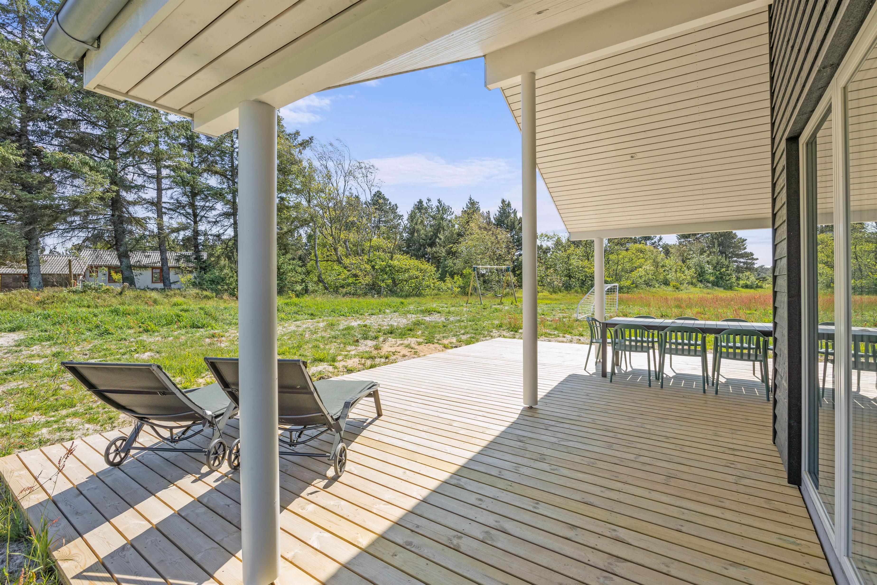 I kan nyde tiden på den ca. 2300m² store naturgrund og læse en god bog, drikke en friskbrygget kop kaffe eller tage en lur på solvognen. Også de lune sommeraftener kan I tilbringe udenfor, hvor I kan indtage aftensmaden udenfor med et koldt glas vin under den overdækkede terrasse.