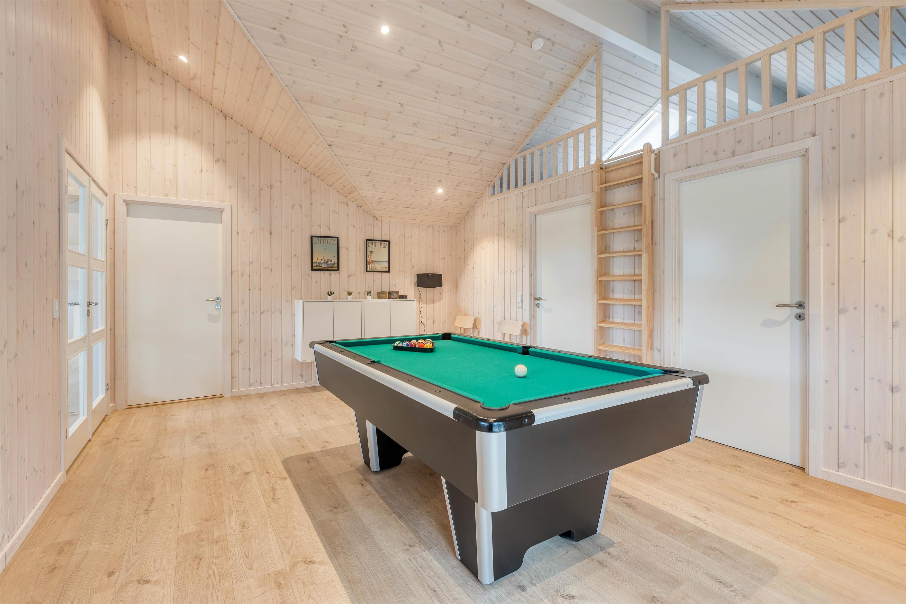 Highlight af dette sommerhus er blandt andet aktivitetsrummet, hvor I kan spille billard. Dette byder mange hyggelige timer for både børn og voksne.