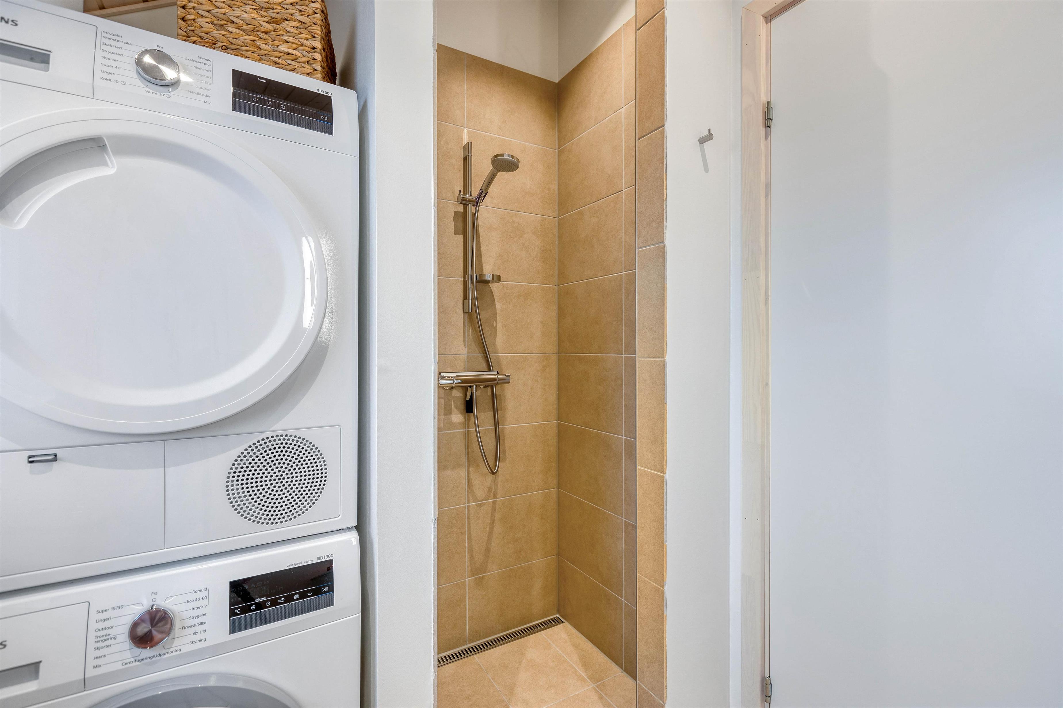 Vaskemaskine og tørretumbler sørger for rene håndklæder.