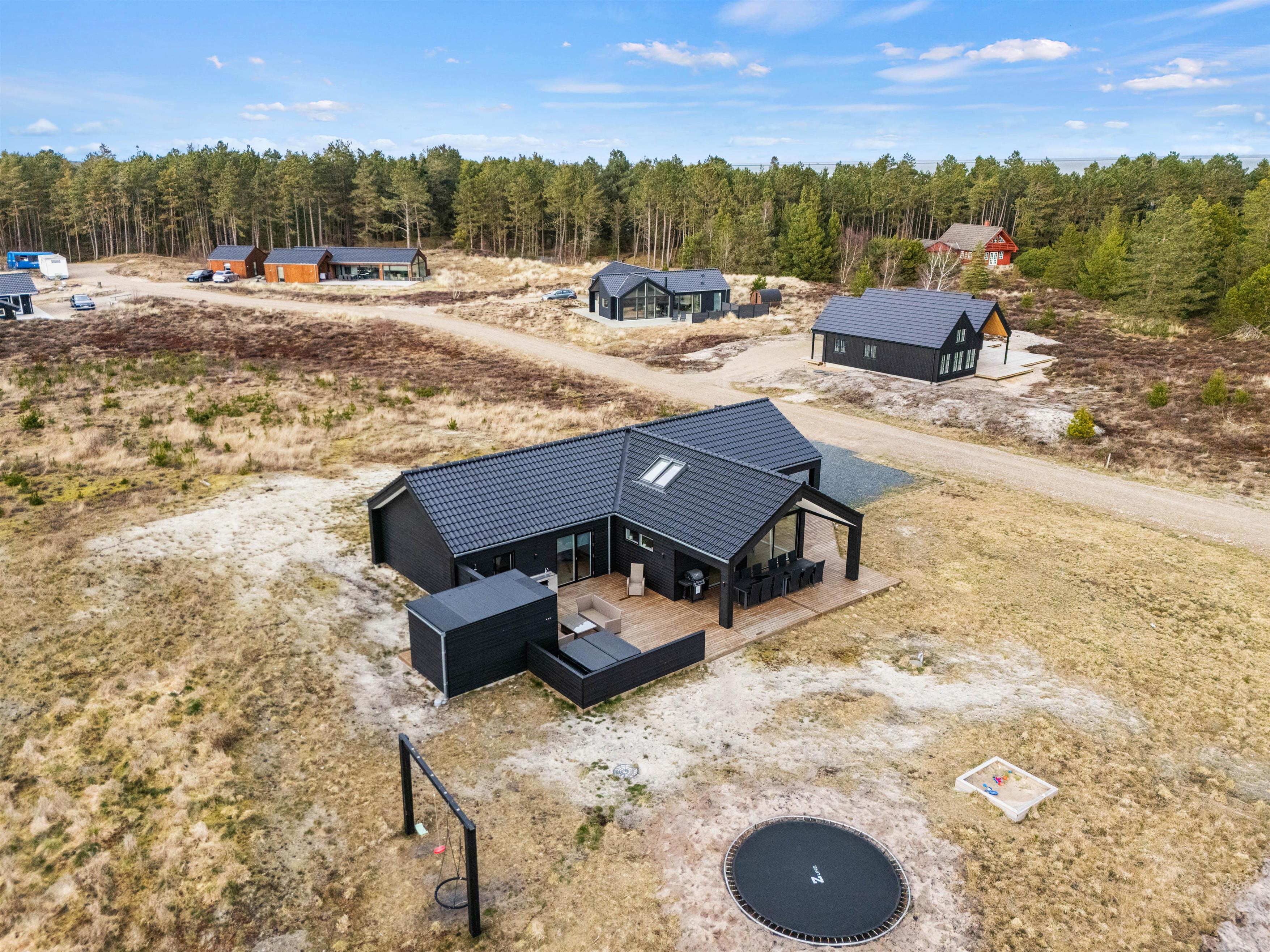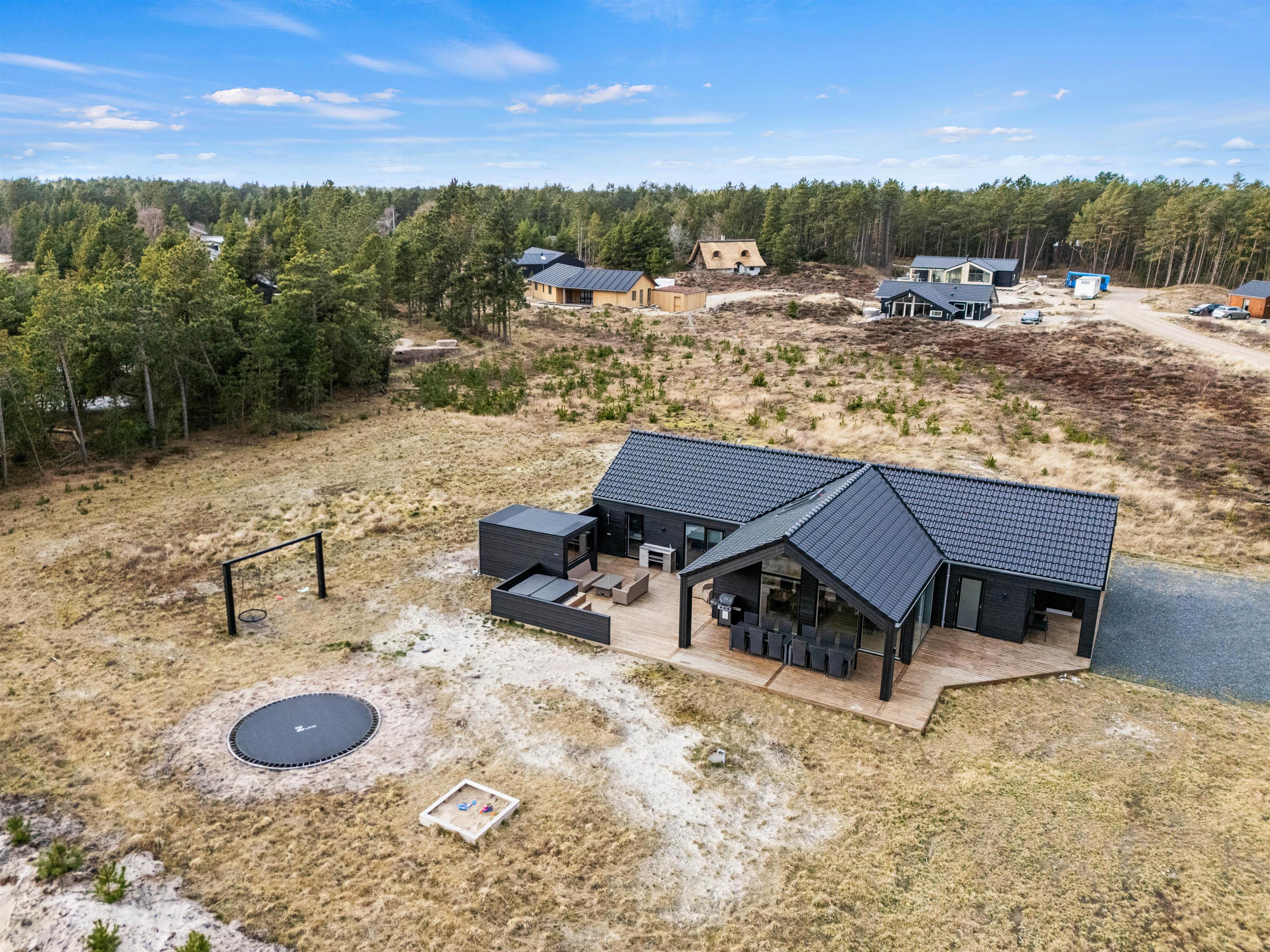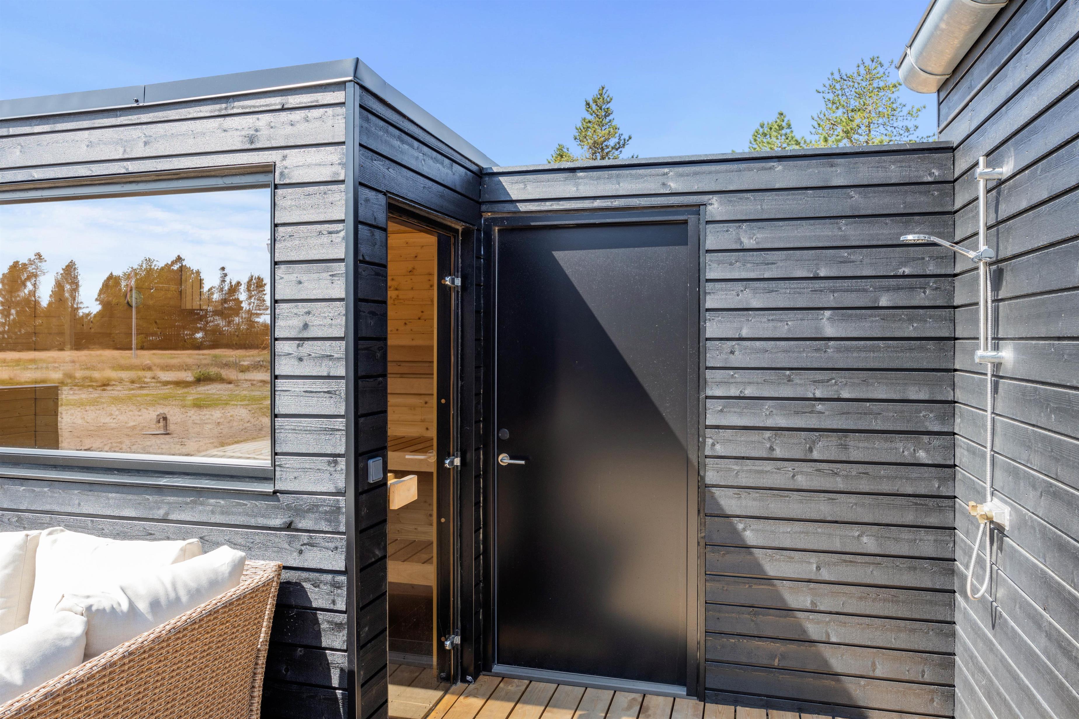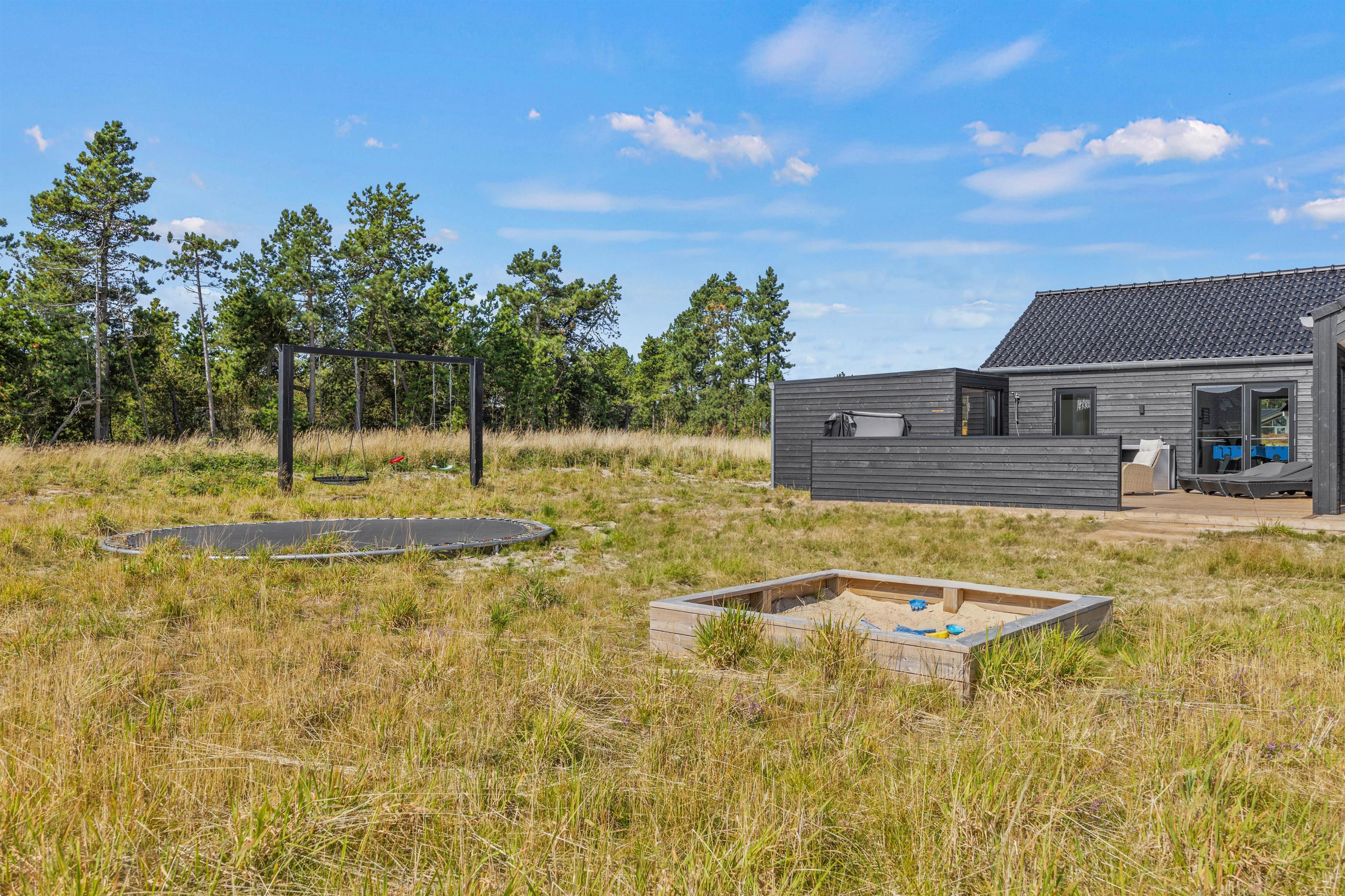For de mindste er der på den 2500m2 store naturgrund etableret både gynge, sandkasse og trampolin, så familiens mindste kan få brændt noget krudt af. En udesauna inviterer til afslapning og velvære. Deslige er der udebruser, så I kan blive opfrisket efter saunagangen eller på en varm sommerdag, hvilken kan benyttes fra april til november.