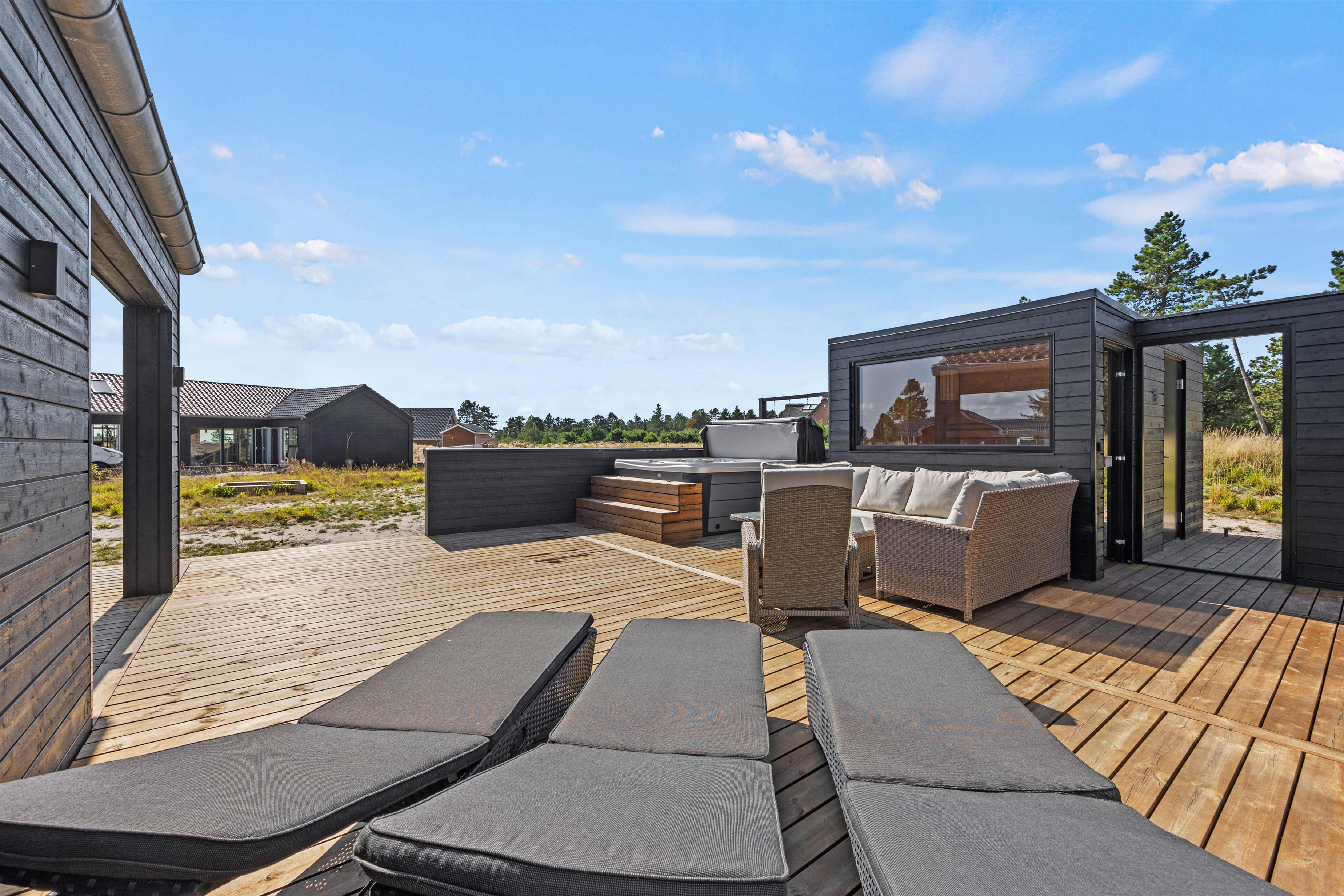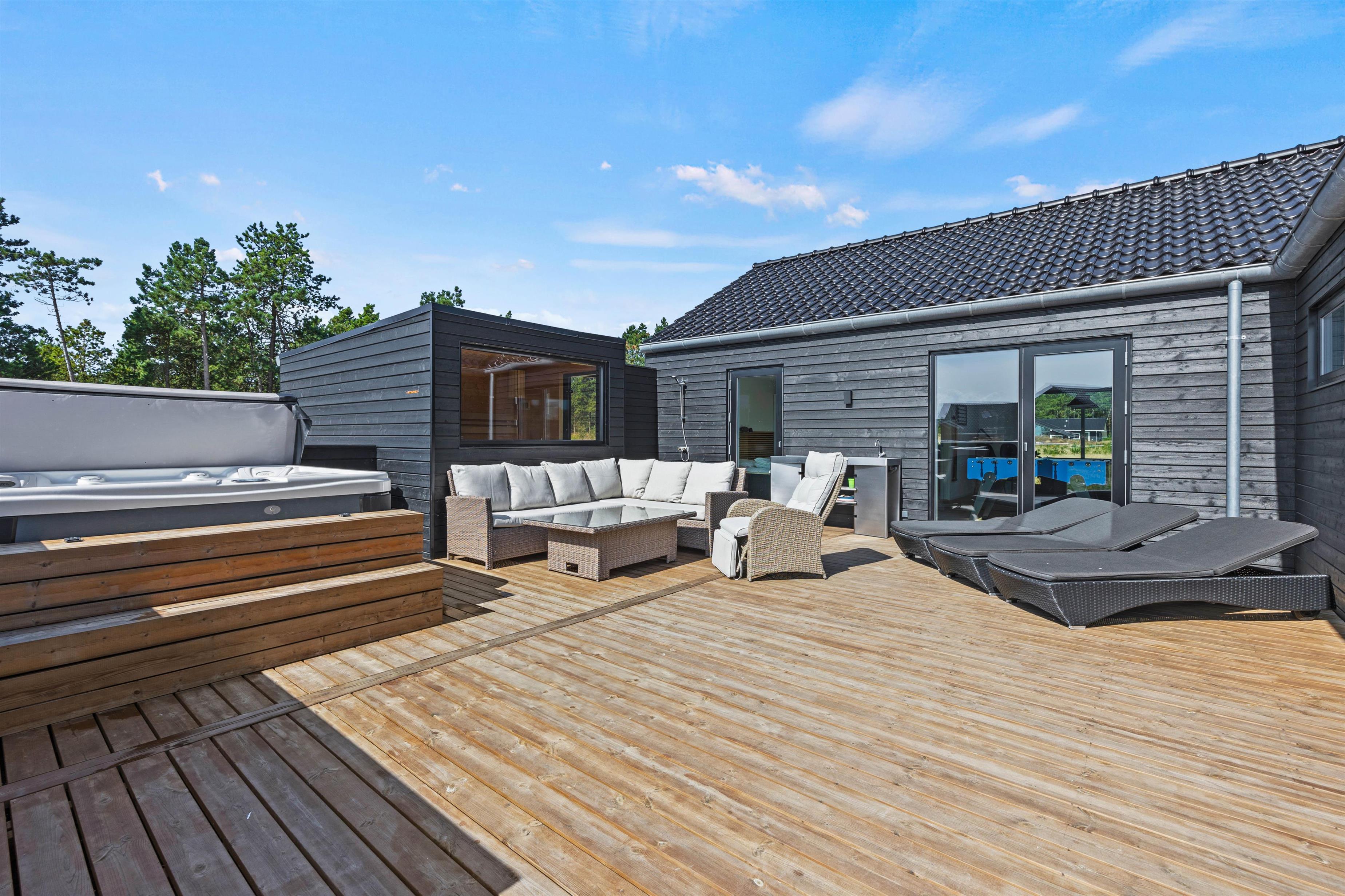 Lækker terrasse med havemøbler, udebruser, udesauna og udespa