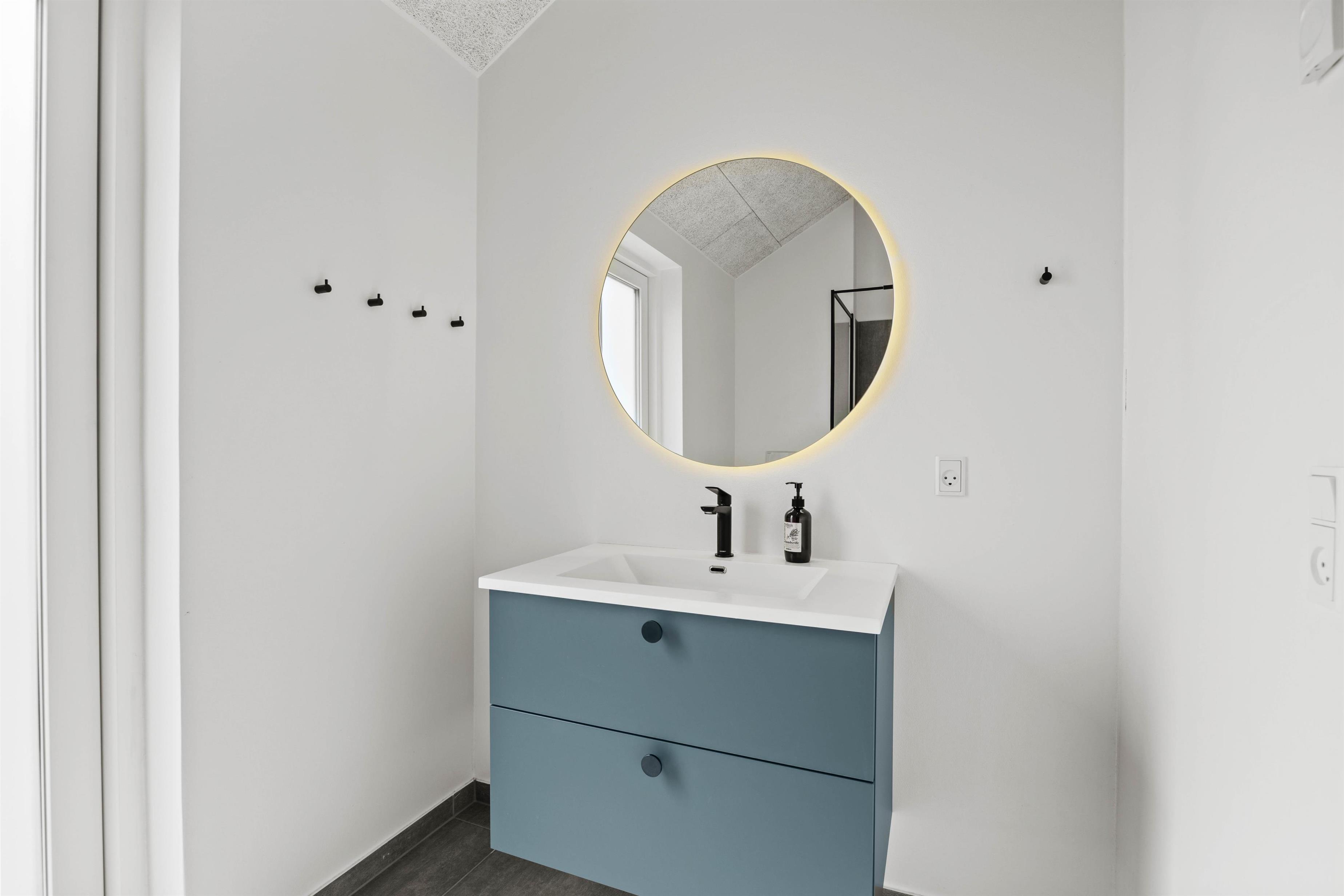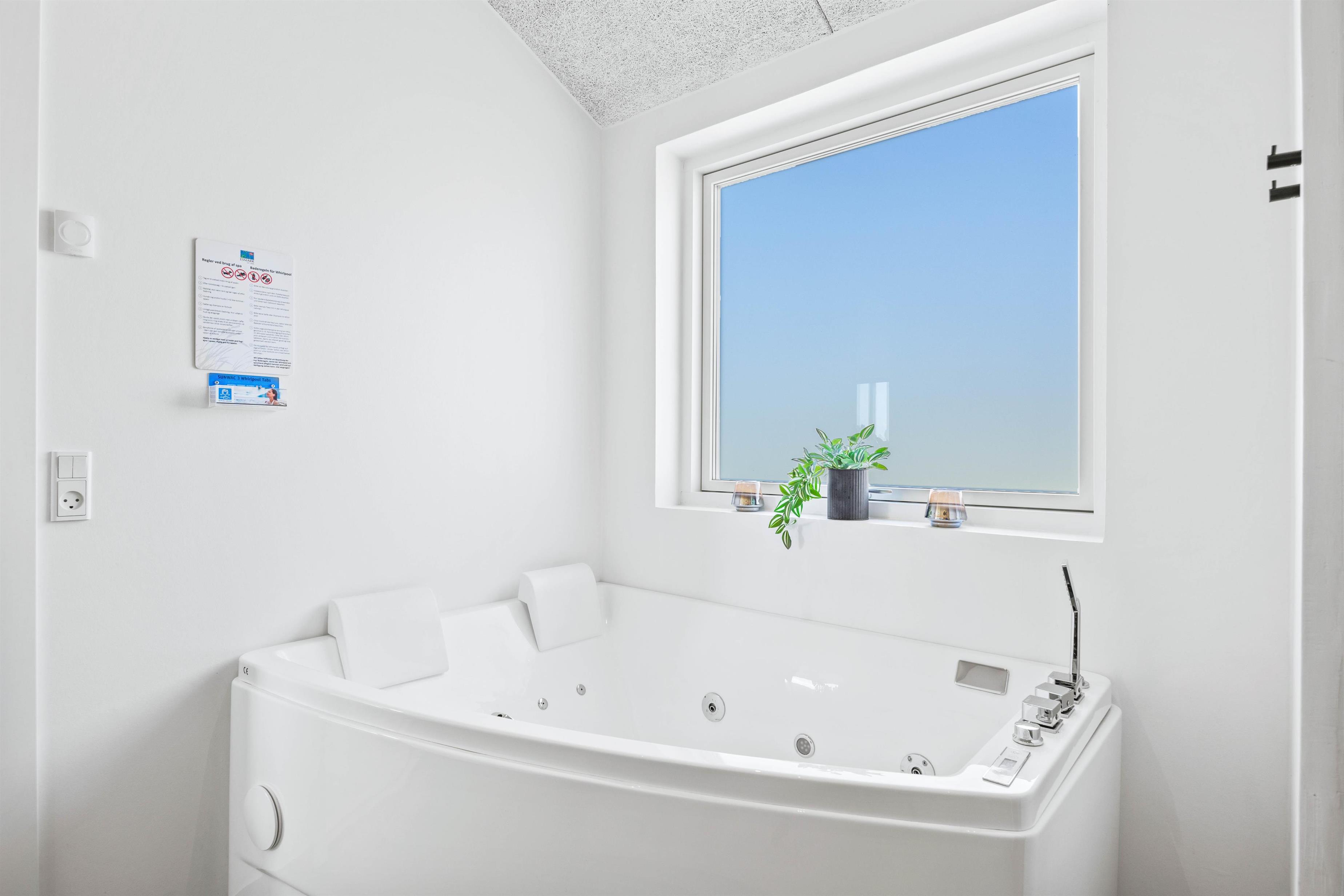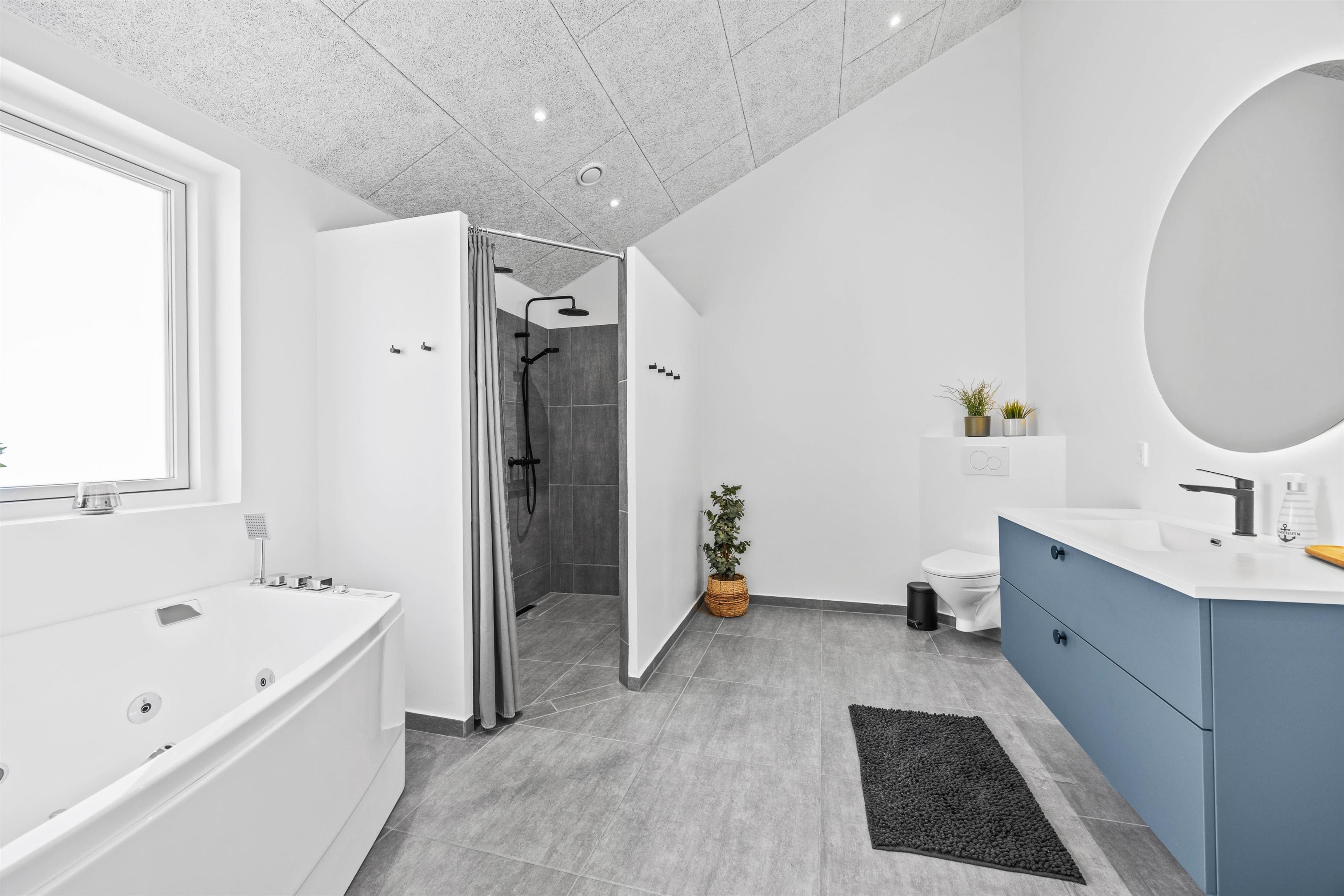 Sommerhuset indeholder ligeledes 2 badeværelser med bruseniche - og det ene med både spabad, vaskemaskine og tørretumbler.